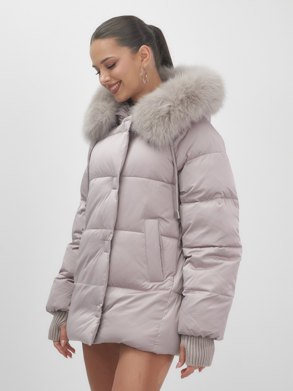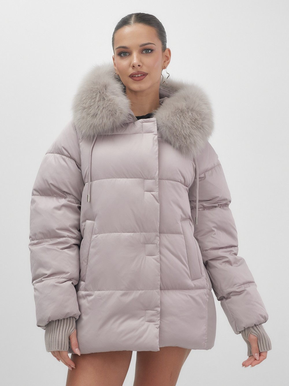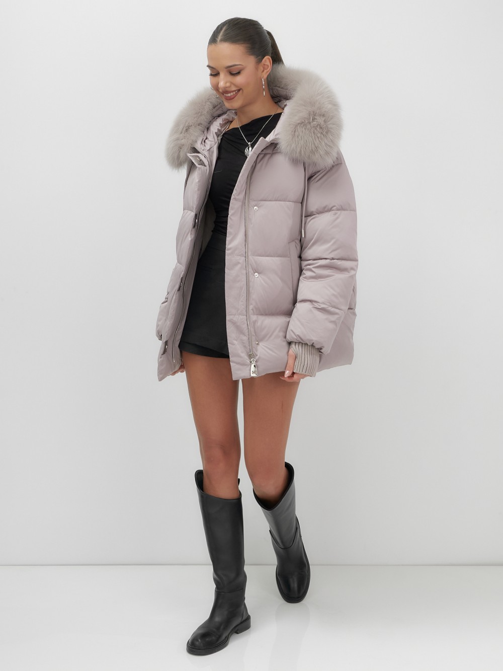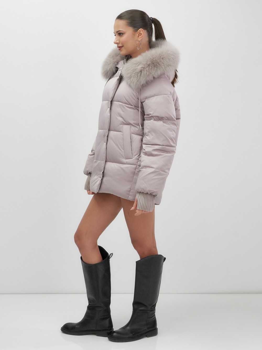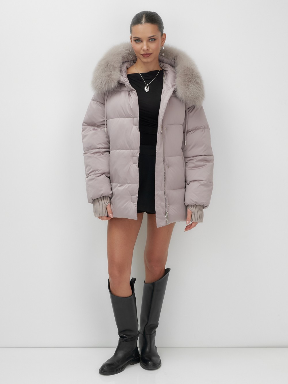 Куртка зимняя женская с мехом и капюшоном тренд светло-коричневого цвета 7658SK — Visdeer