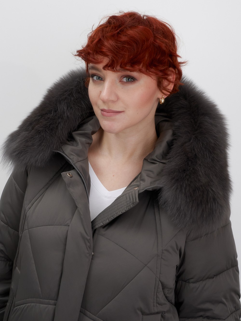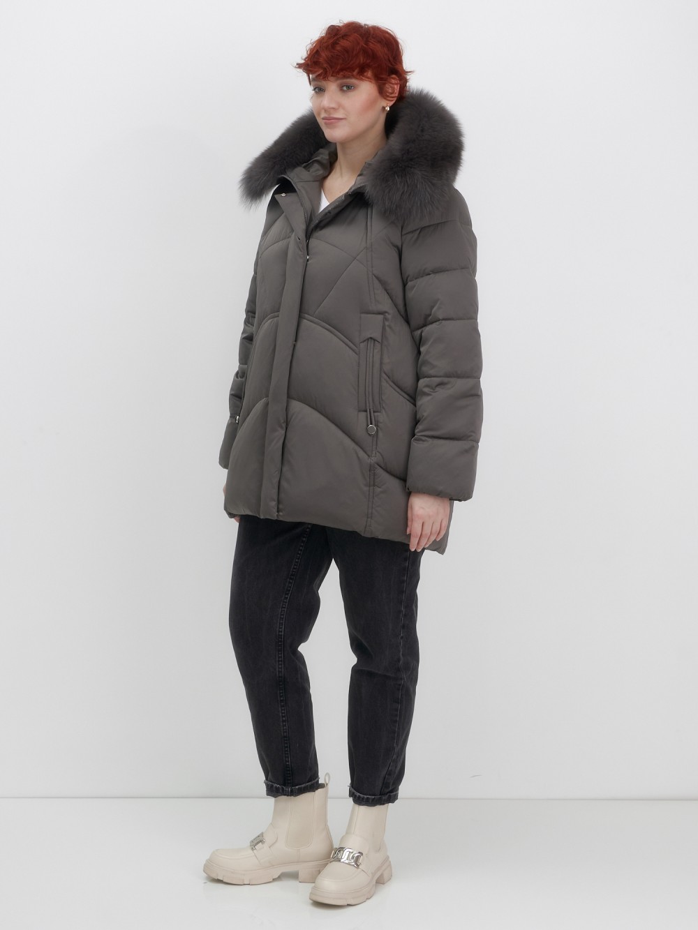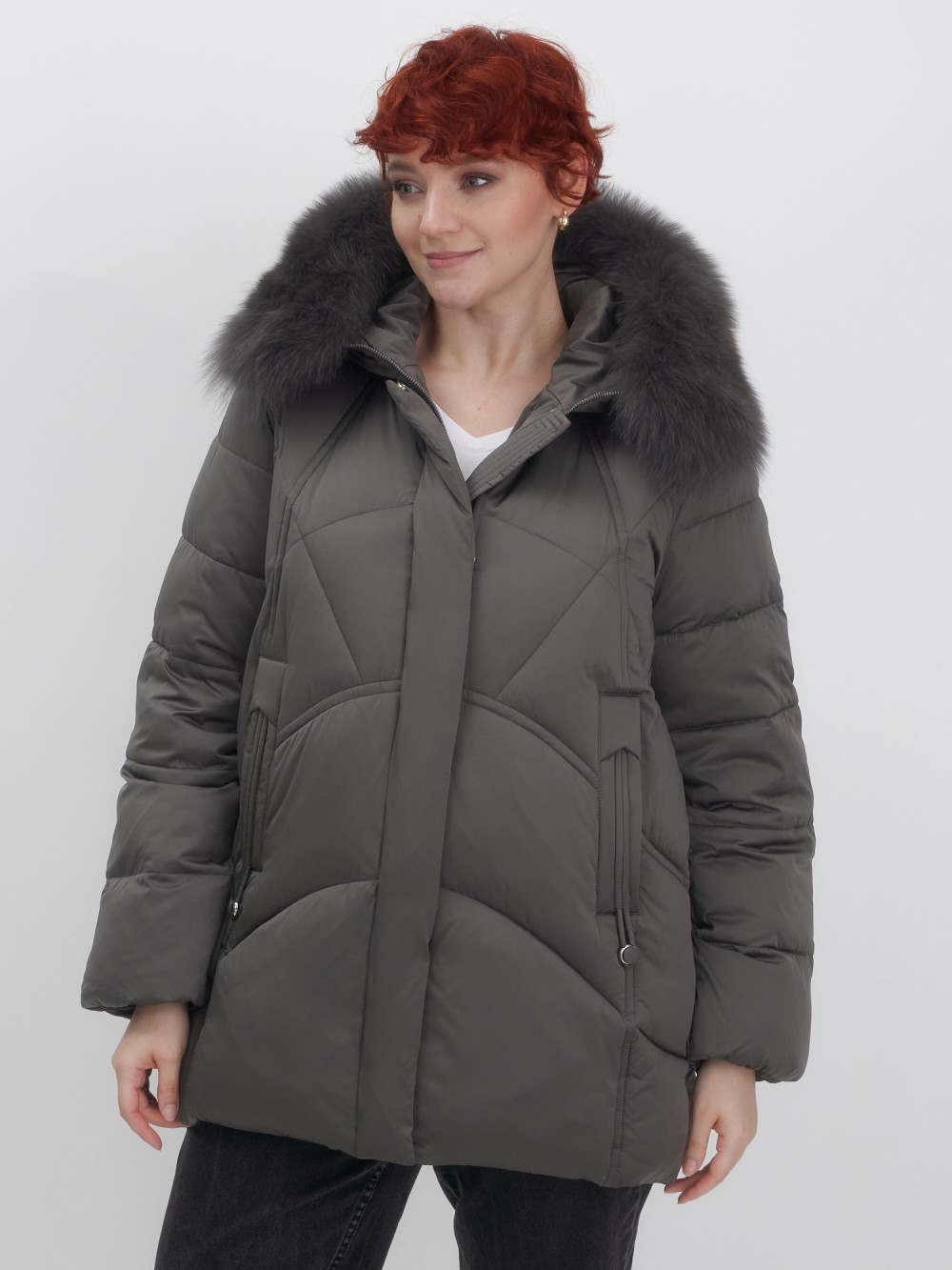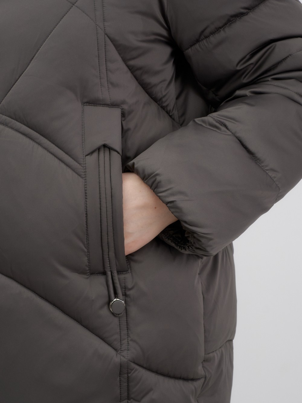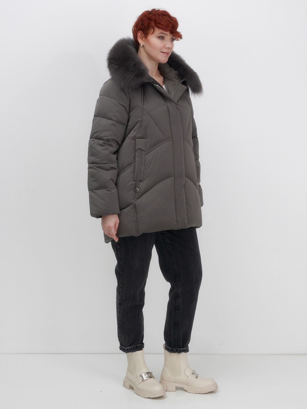 Куртка зимняя женская с мехом и капюшоном тренд темно-серого цвета 7656TC — Visdeer