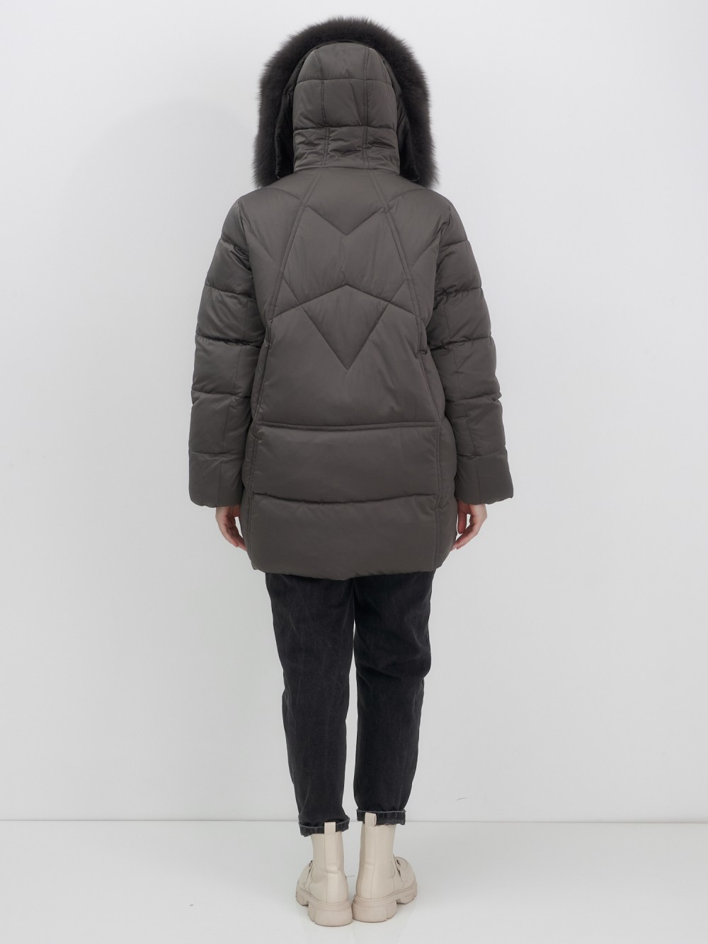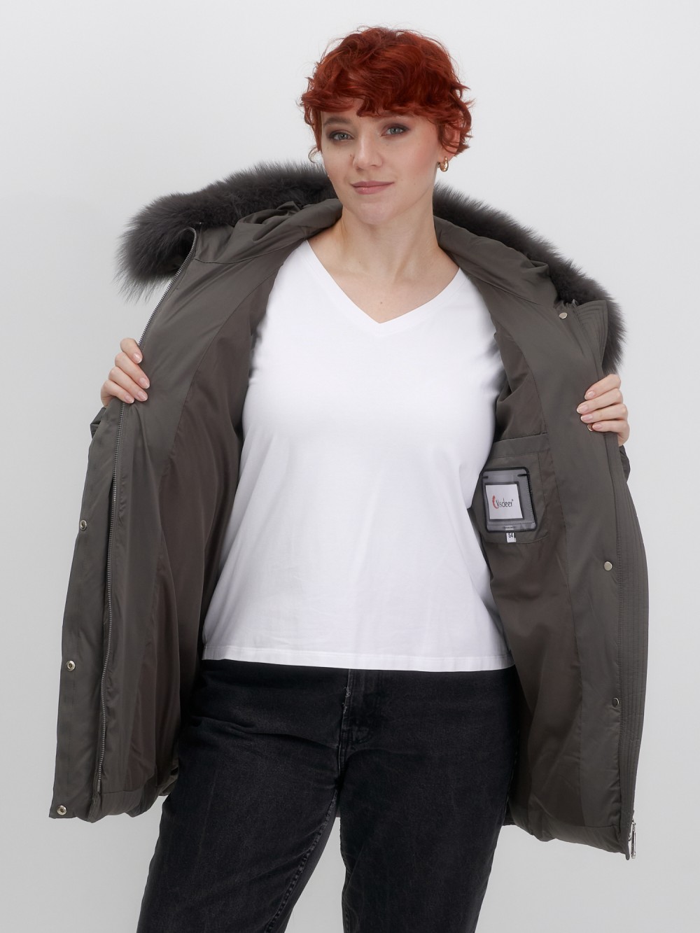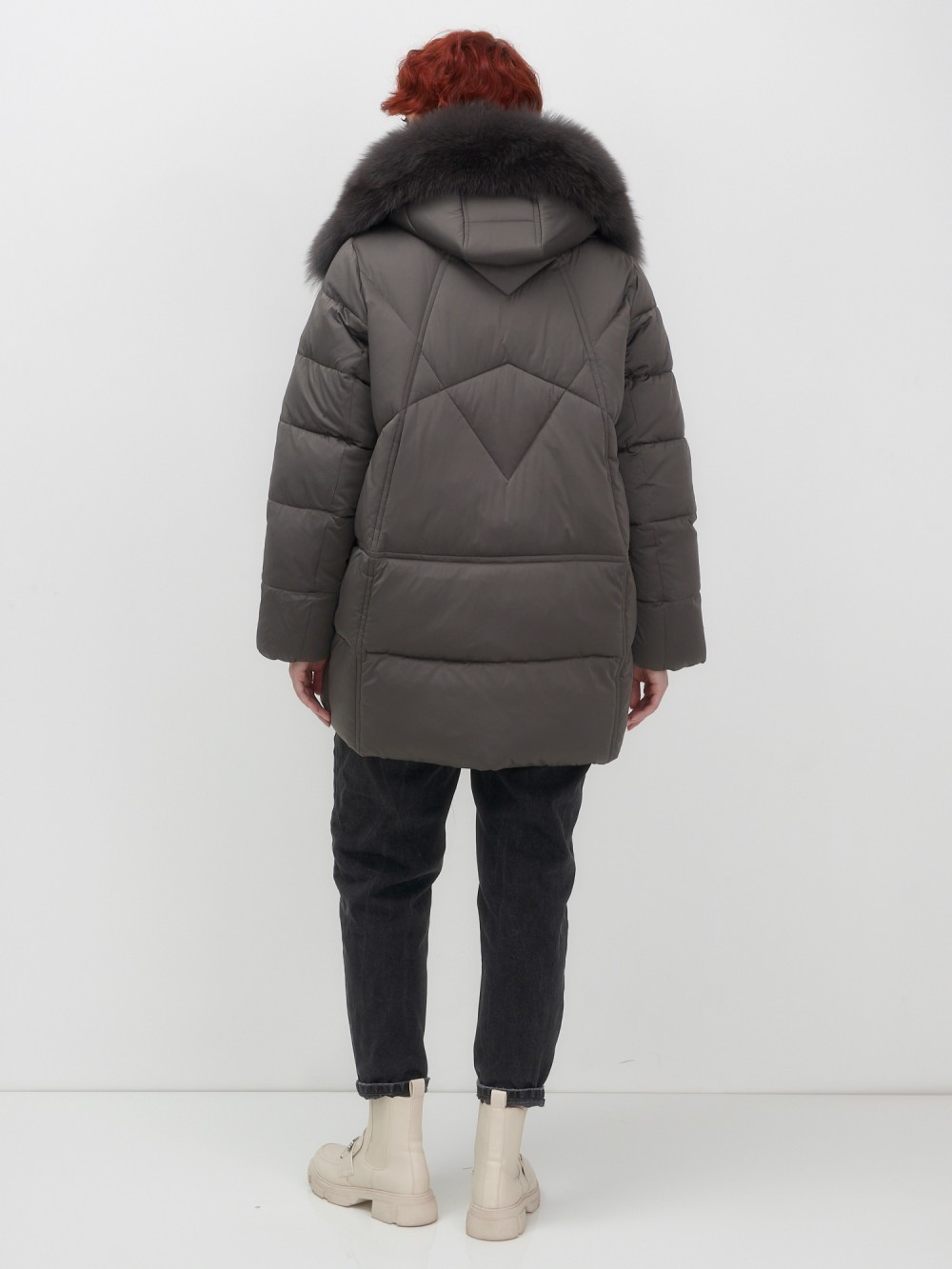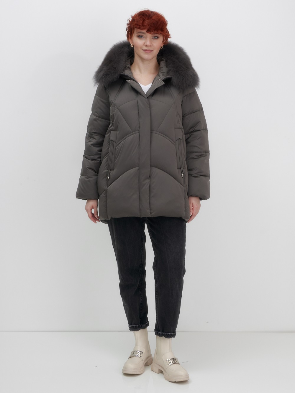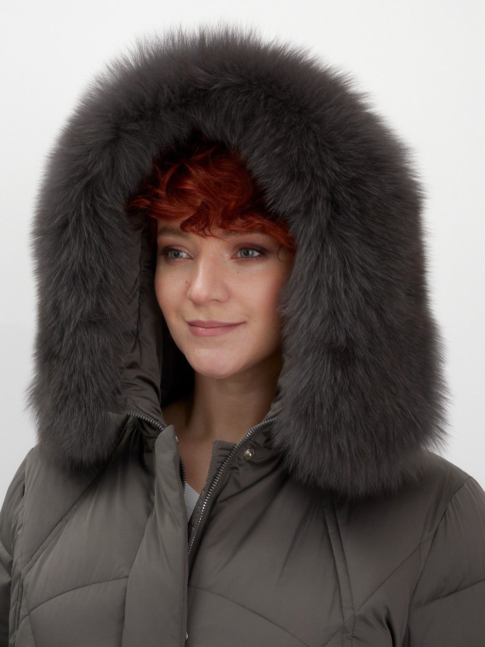 Куртка зимняя женская с мехом и капюшоном тренд темно-серого цвета 7656TC — Visdeer