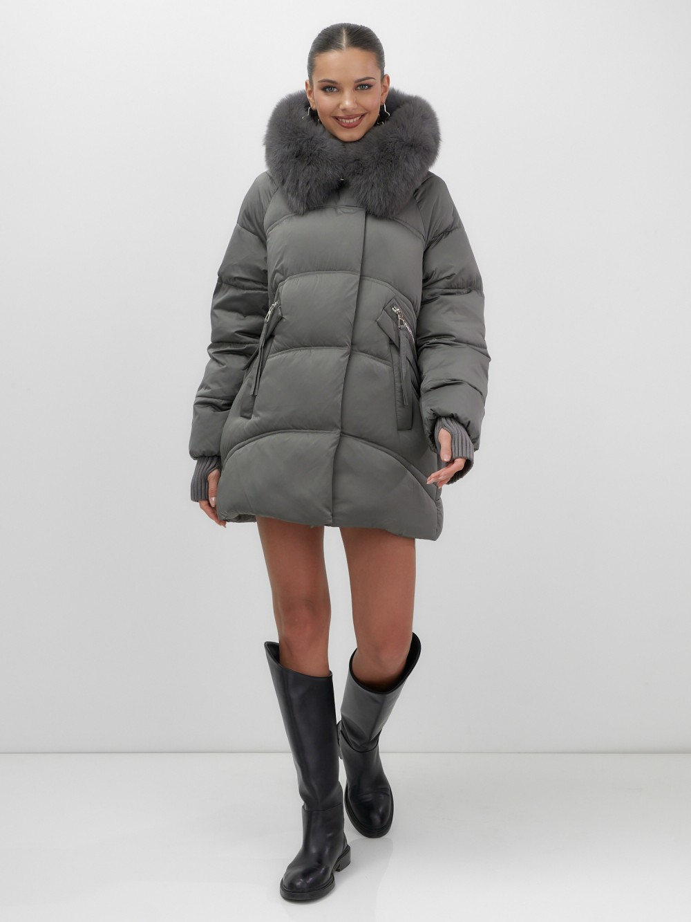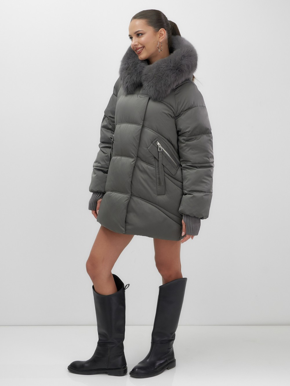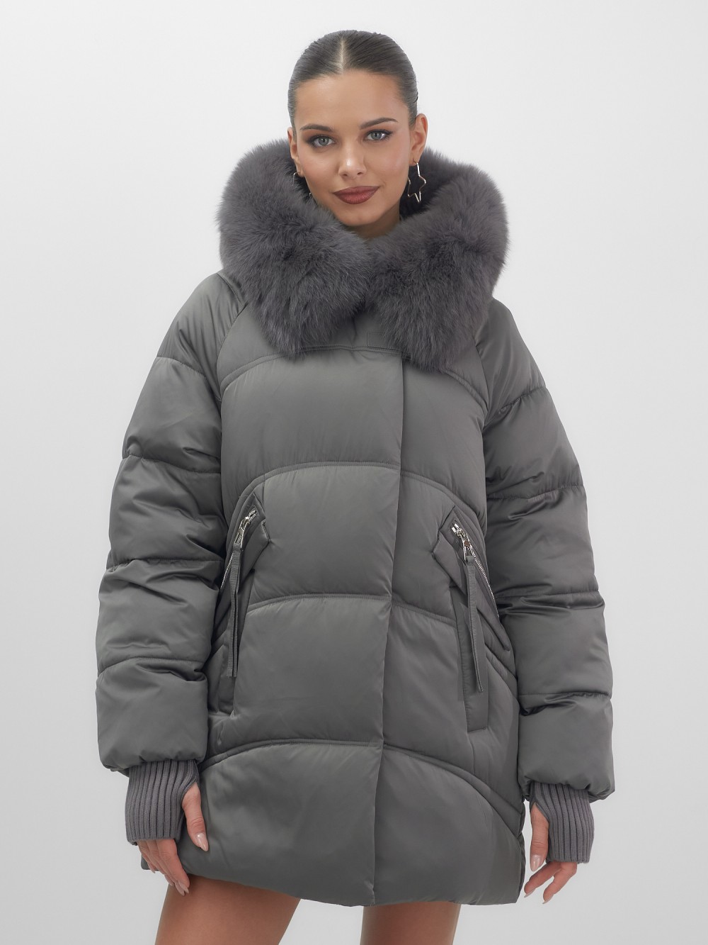 Куртка зимняя женская с мехом и капюшоном тренд темно-серого цвета 7658TC — Visdeer