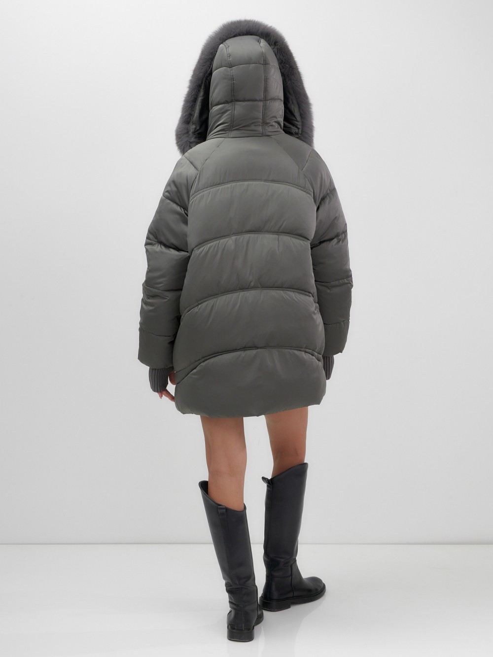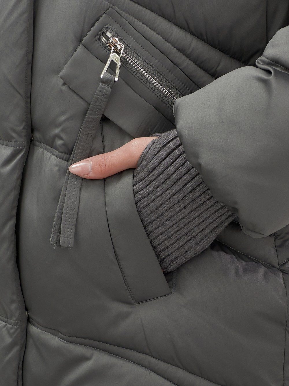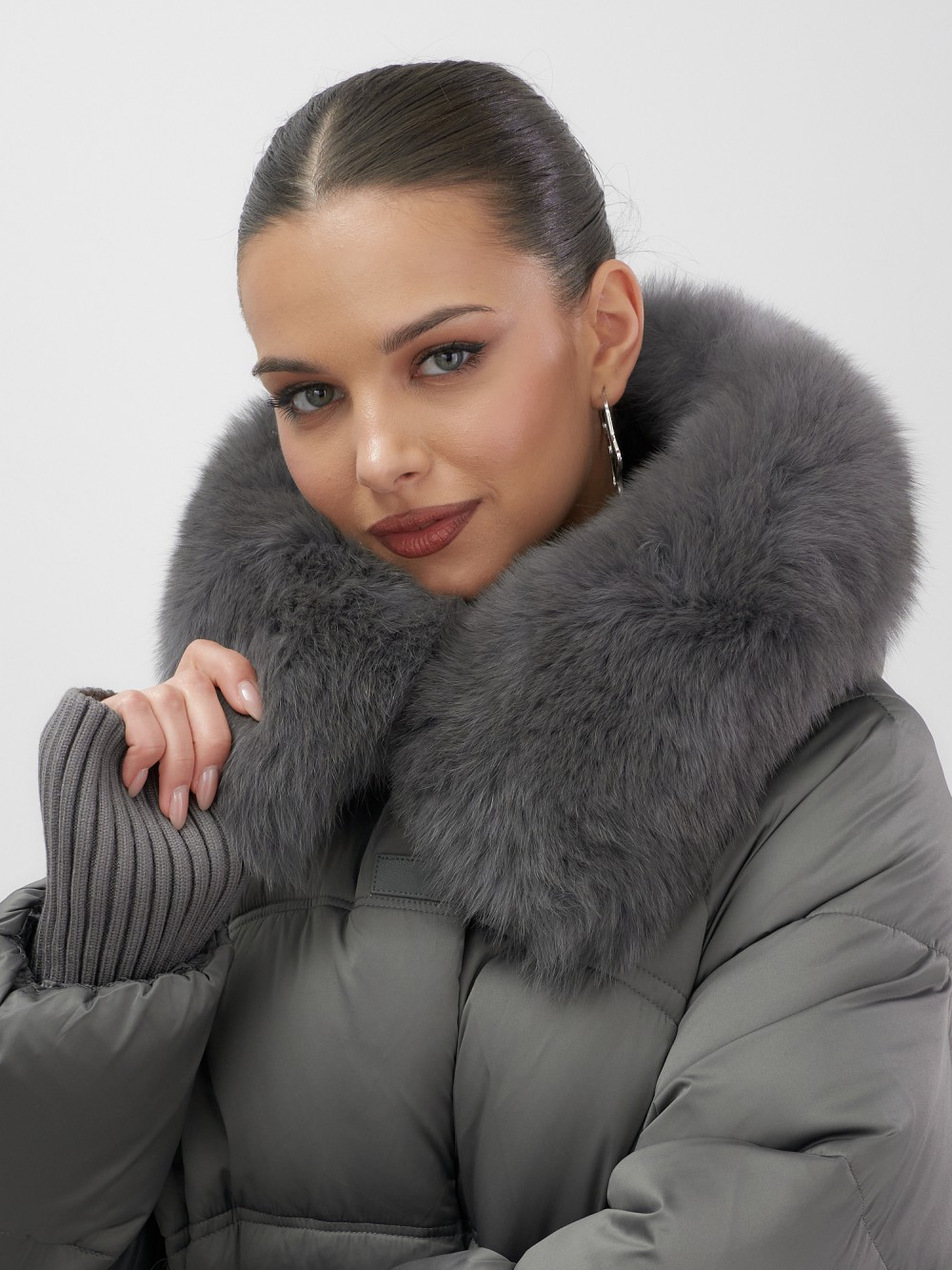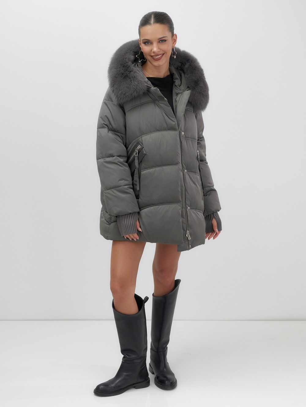 Куртка зимняя женская с мехом и капюшоном тренд темно-серого цвета 7658TC — Visdeer