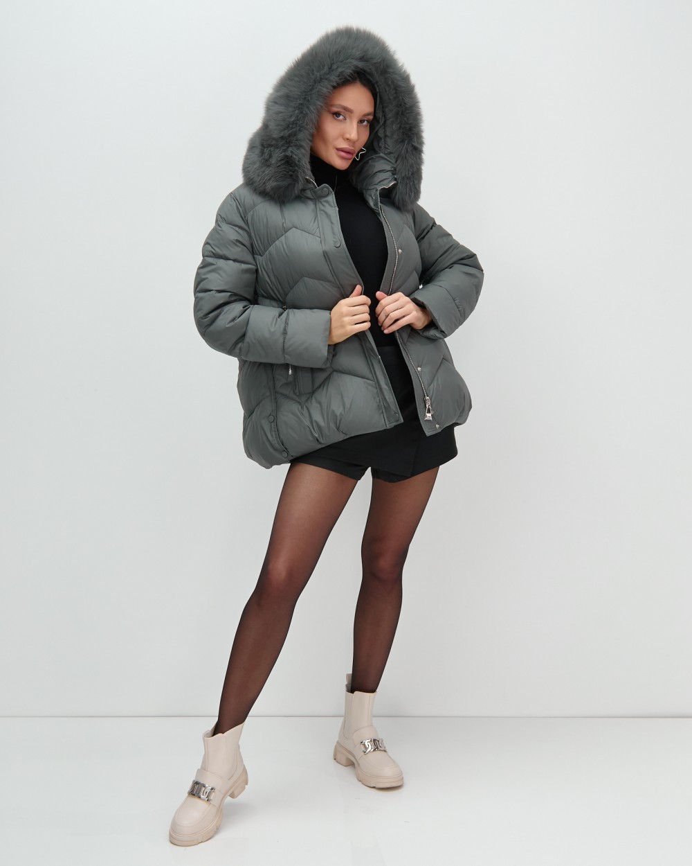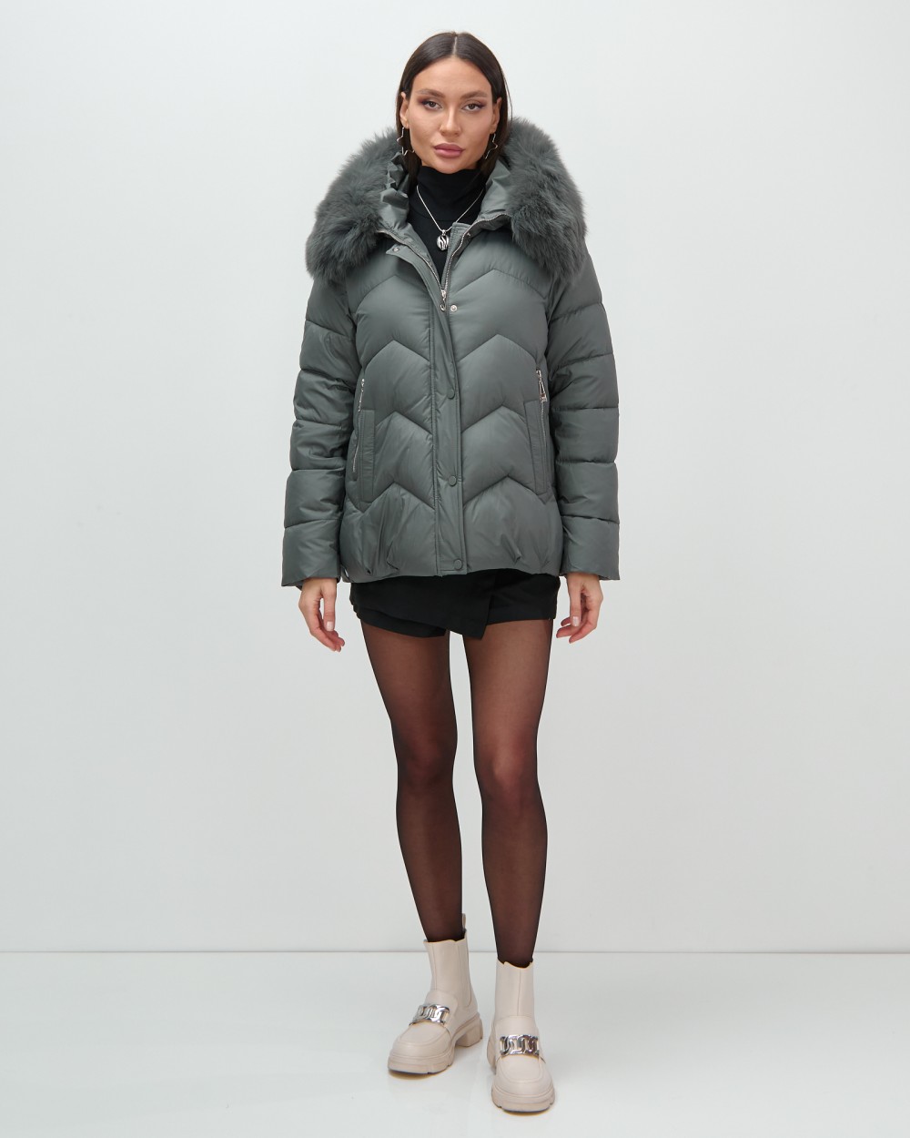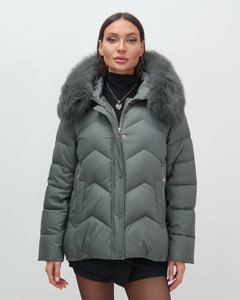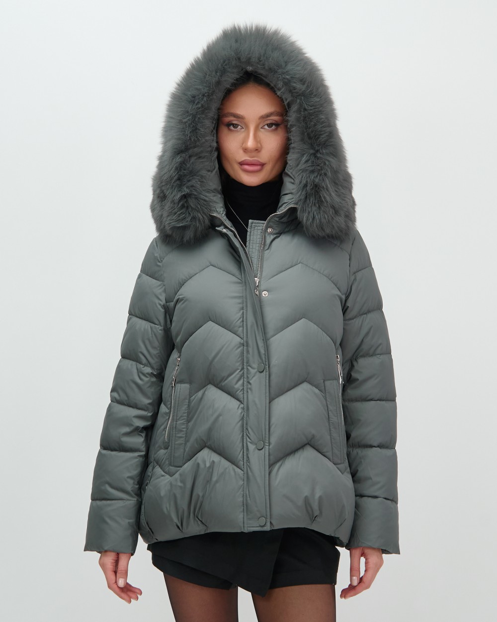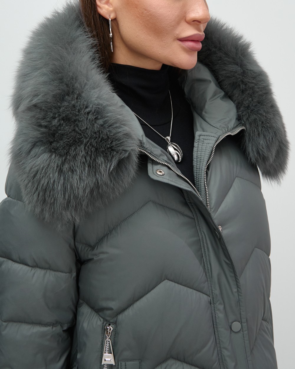Куртка зимняя женская с мехом и капюшоном тренд темно-серого цвета 7759TC — Visdeer