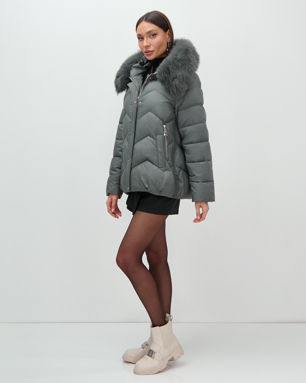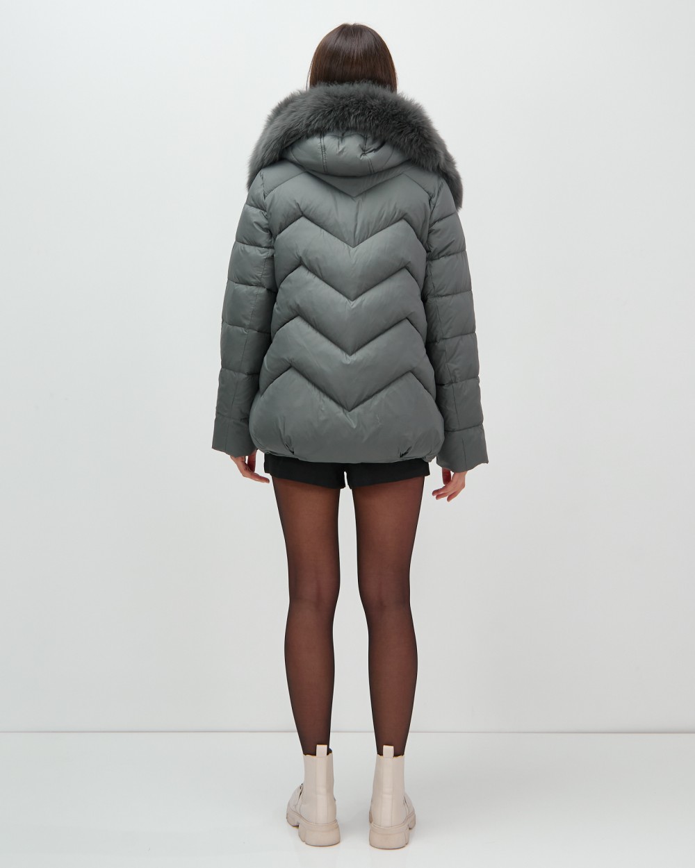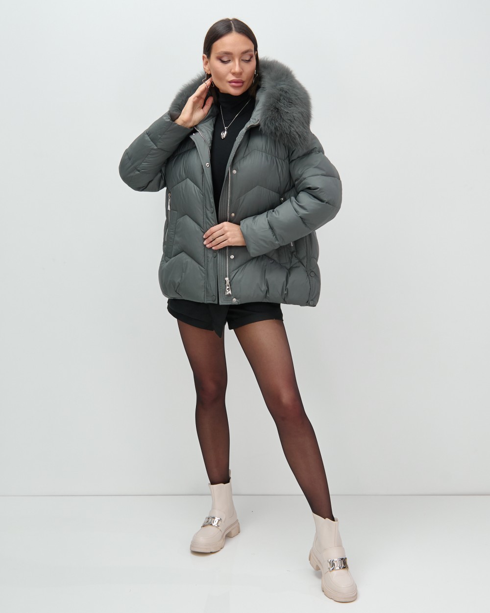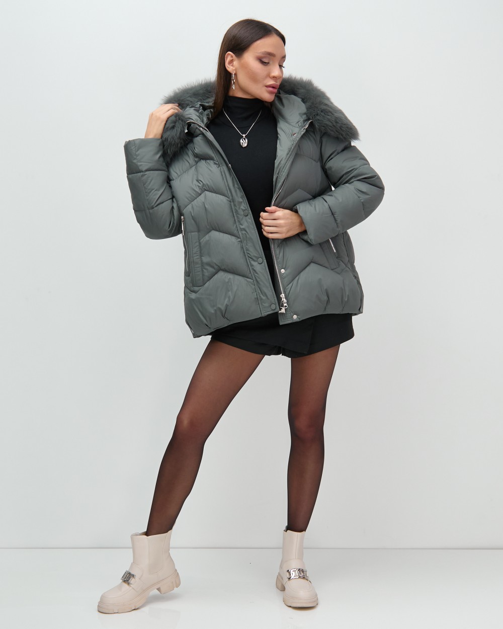 Куртка зимняя женская с мехом и капюшоном тренд темно-серого цвета 7759TC — Visdeer