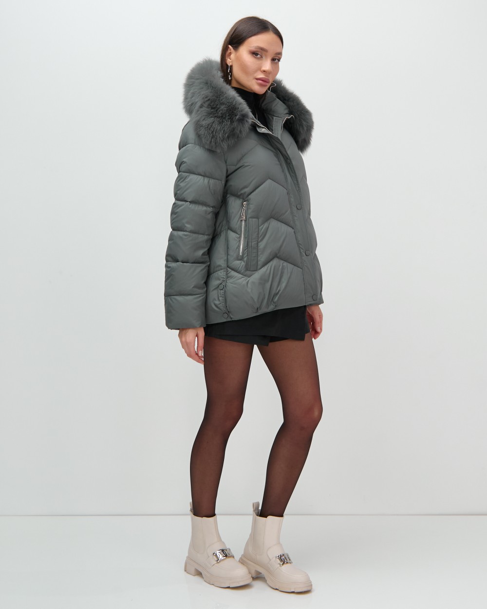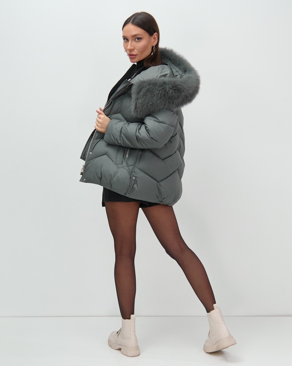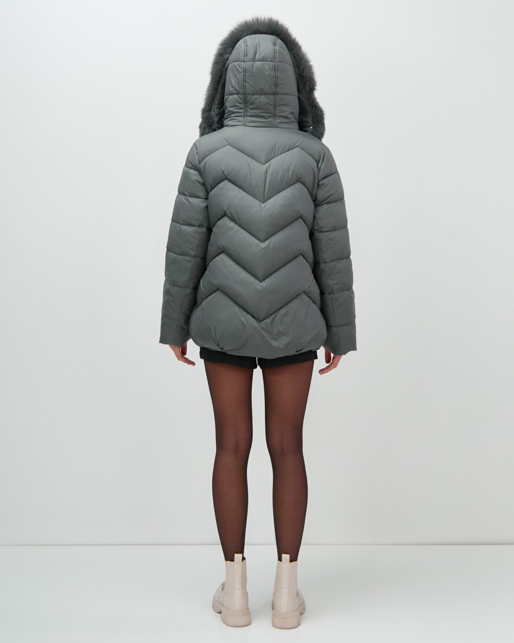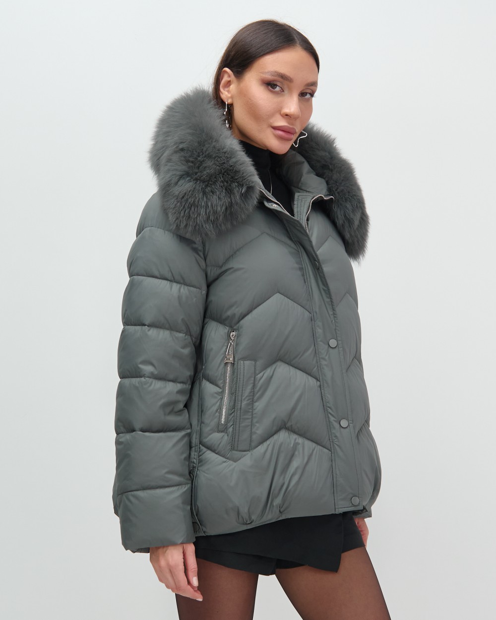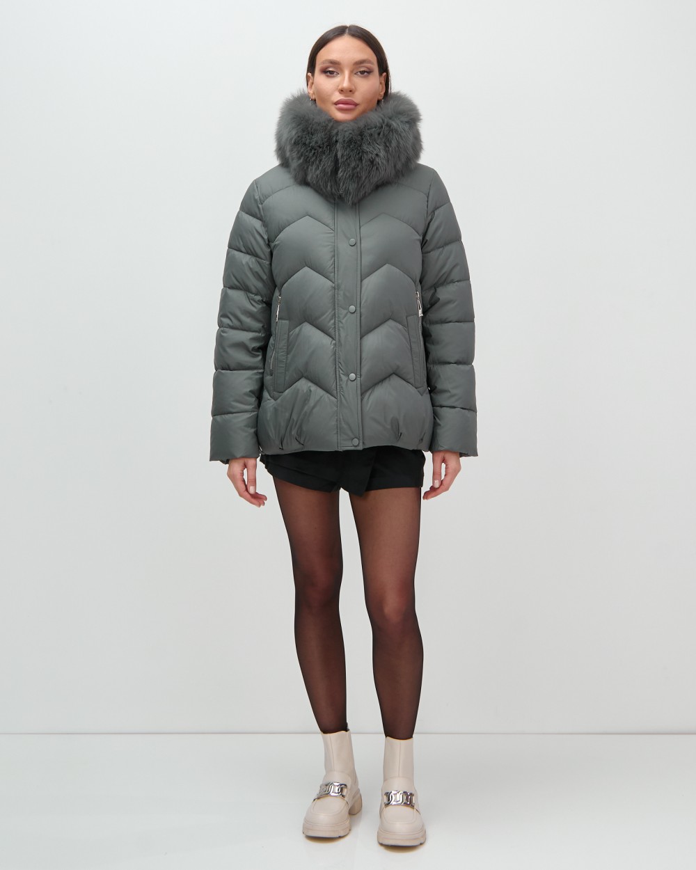 Куртка зимняя женская с мехом и капюшоном тренд темно-серого цвета 7759TC — Visdeer