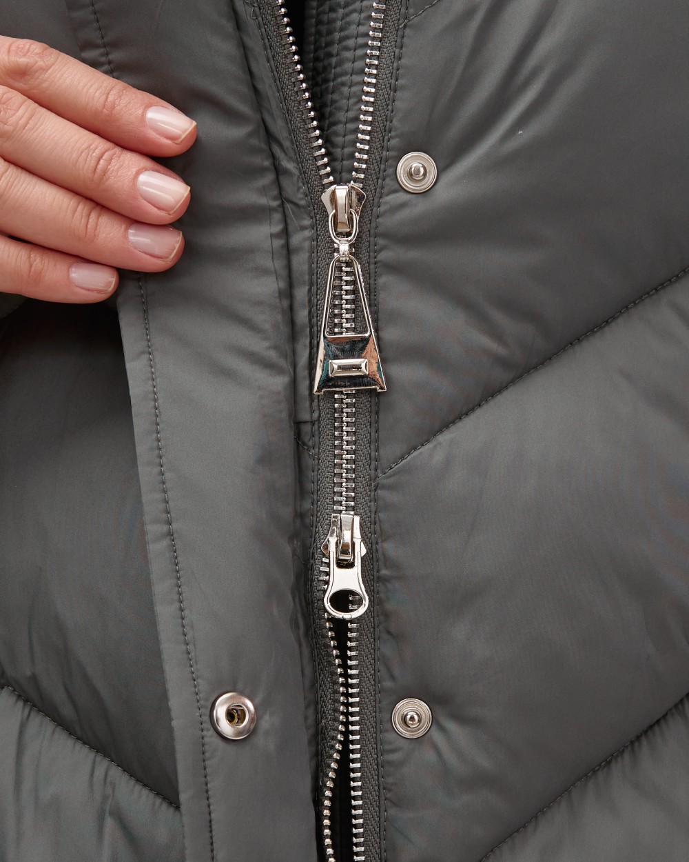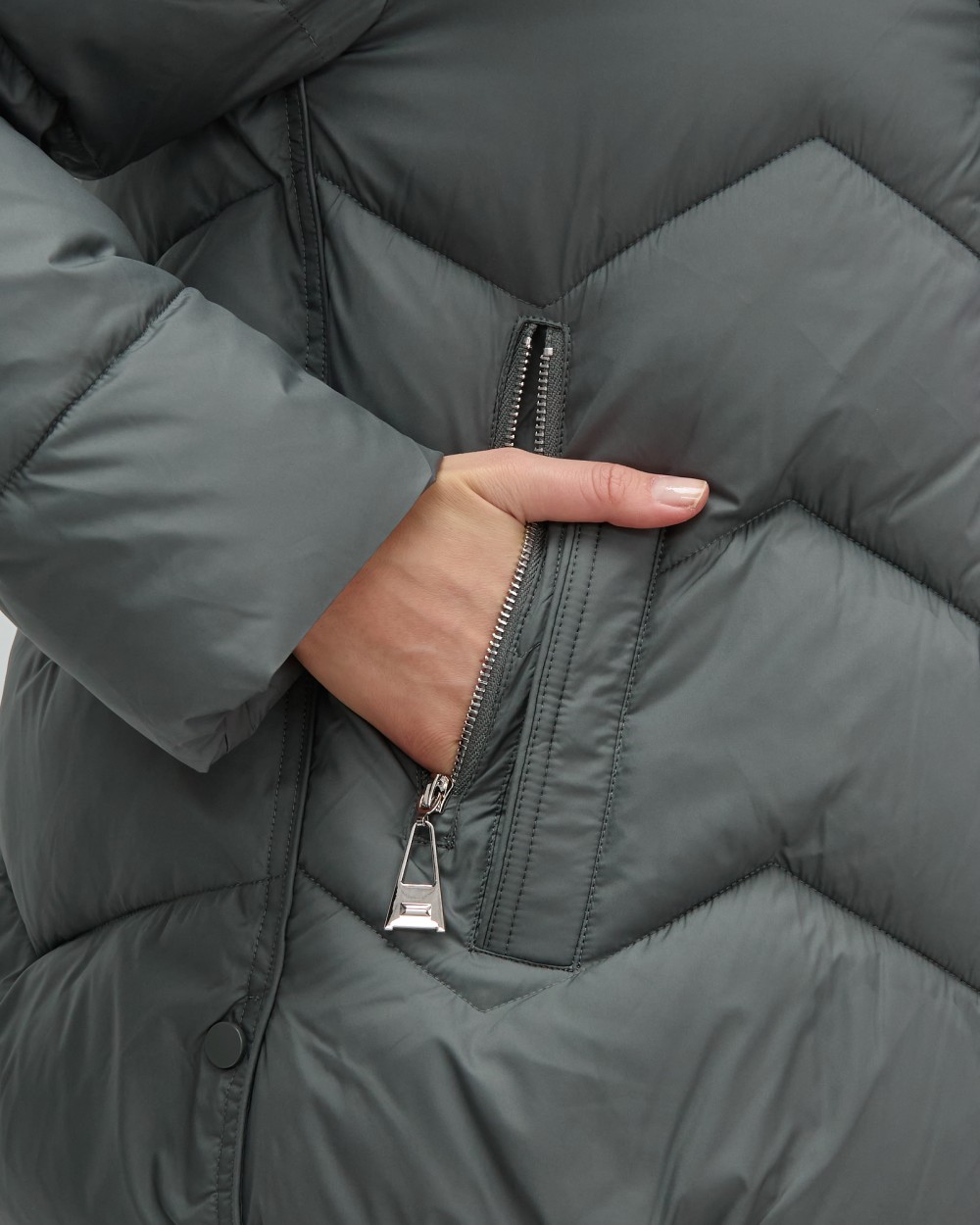 - Тип кармана: Прорезной (на кнопках и на молнии)