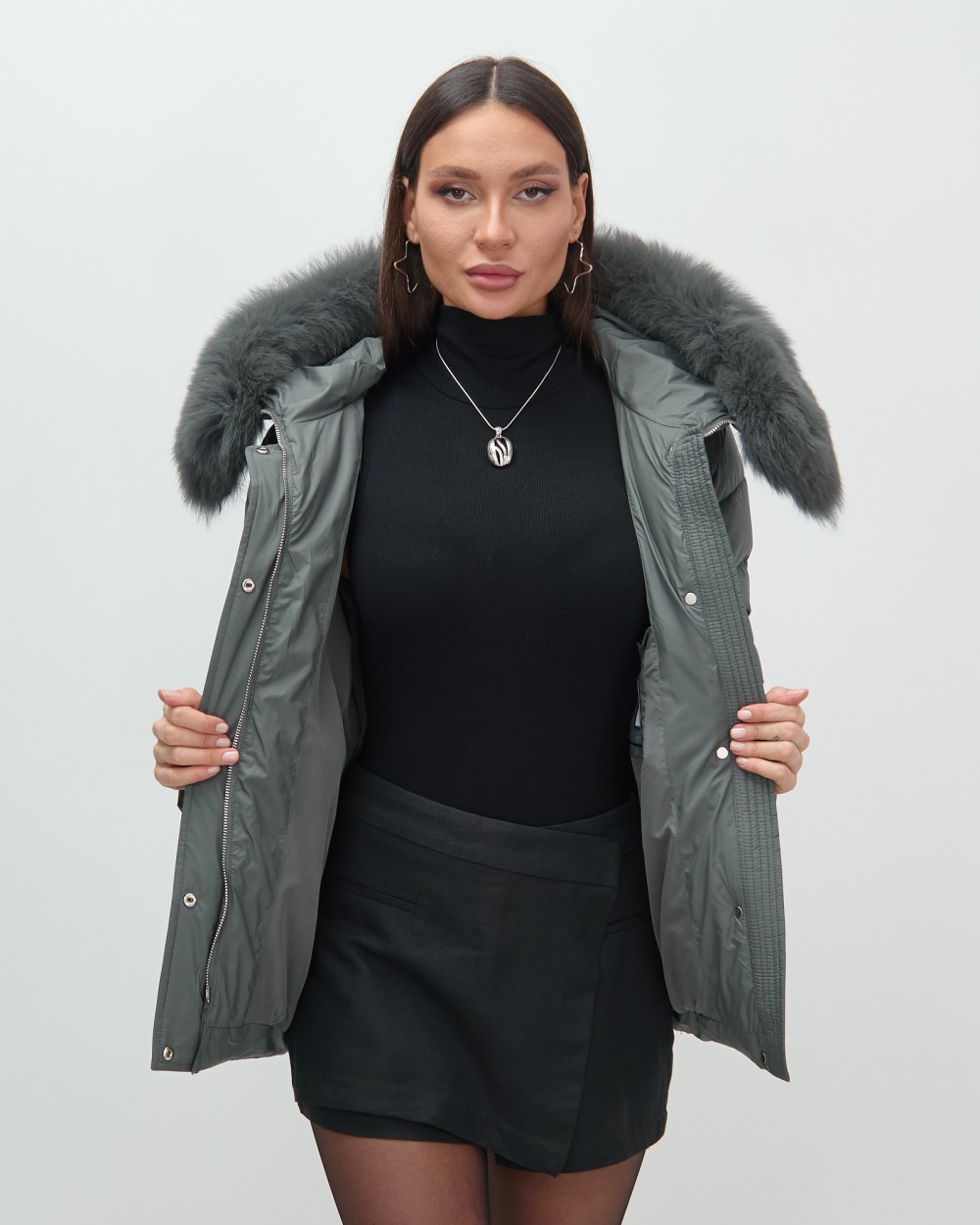 Утеплитель плотностью 200 г/м² обеспечивает комфорт при температурах от +5° до -20°C. Роскошный натуральный мех песца обрамляет лицо, создавая неповторимый образ городской леди. Безупречный крой подчеркивает силуэт, оставляя свободу движений.