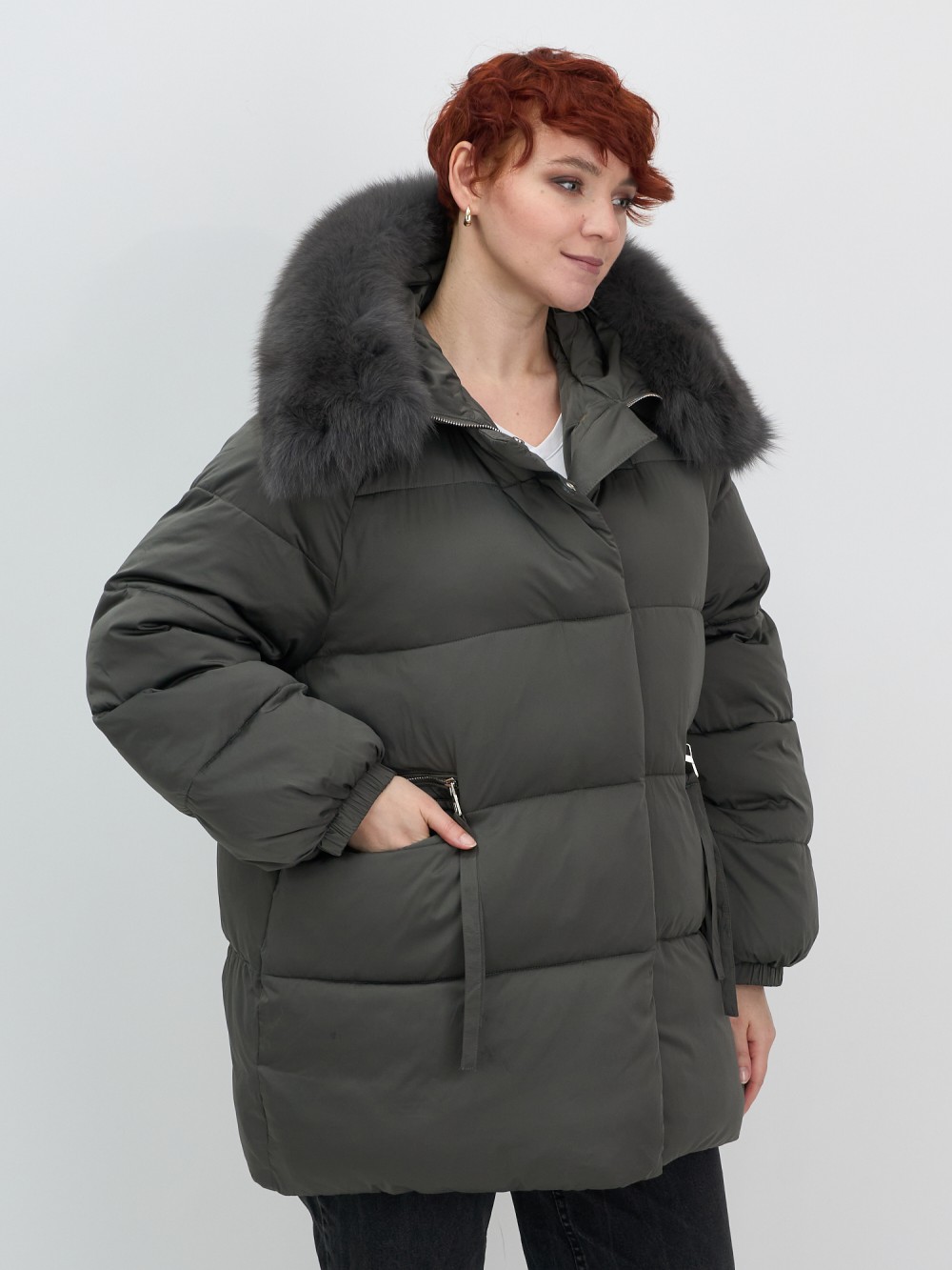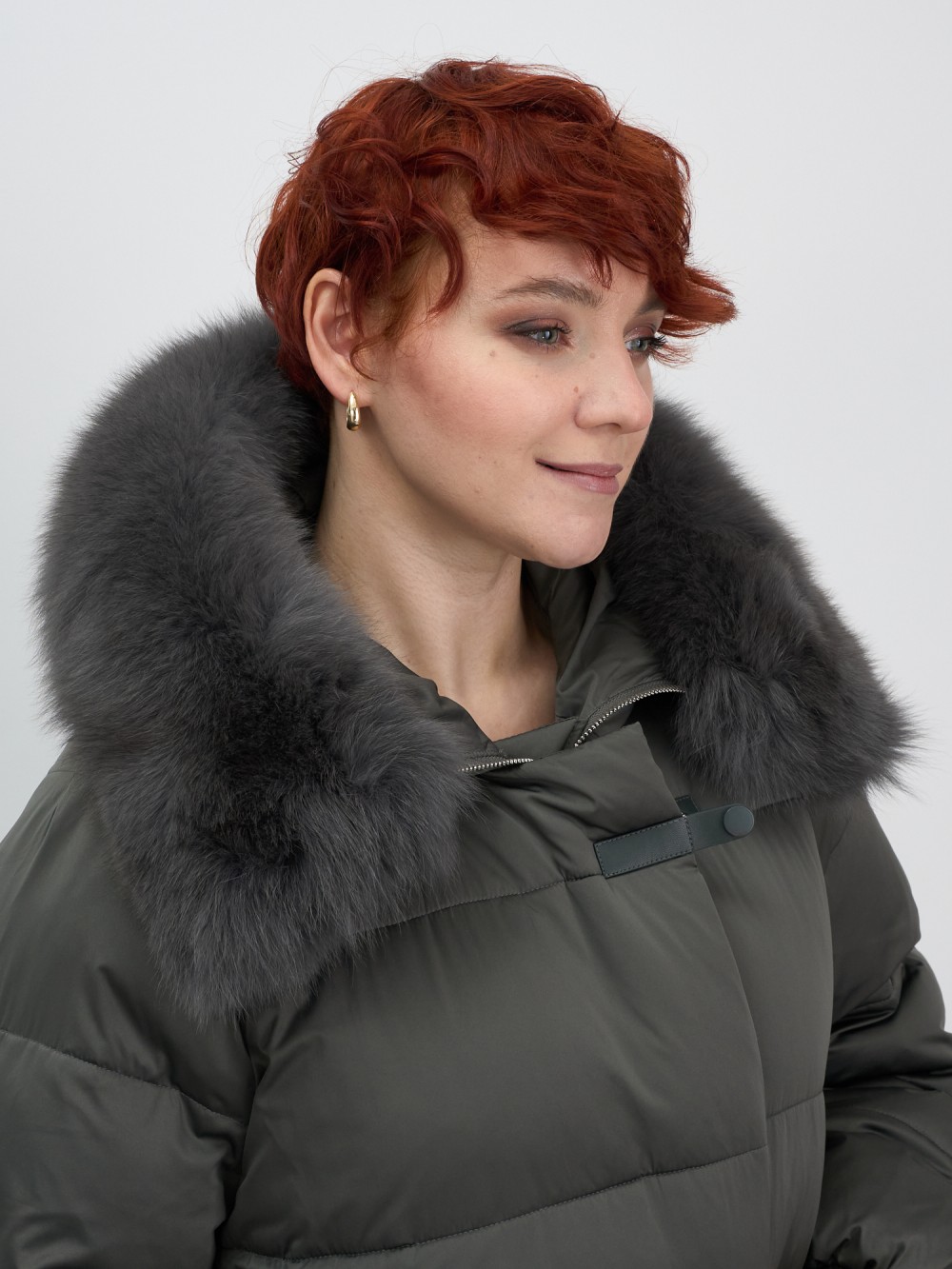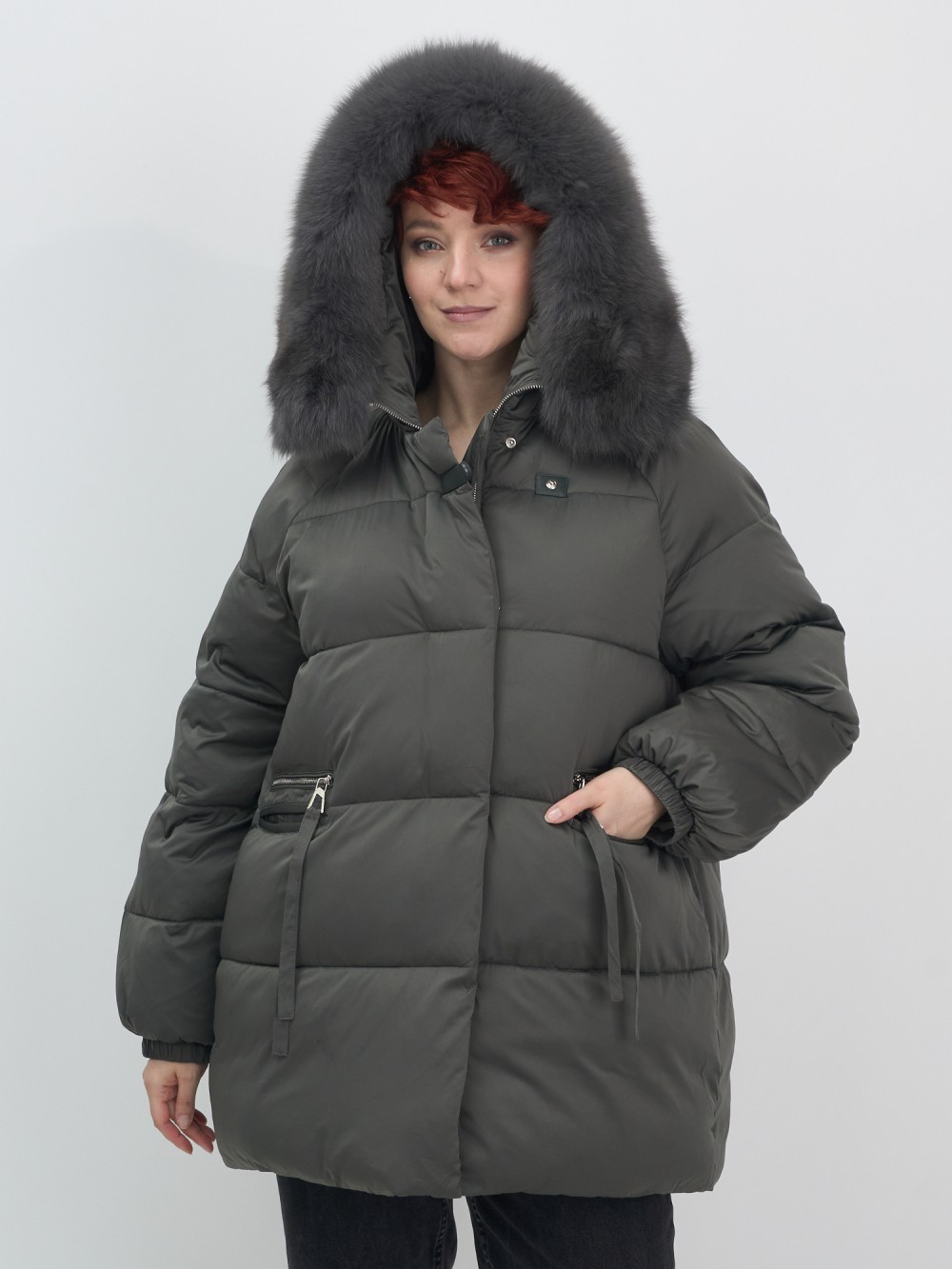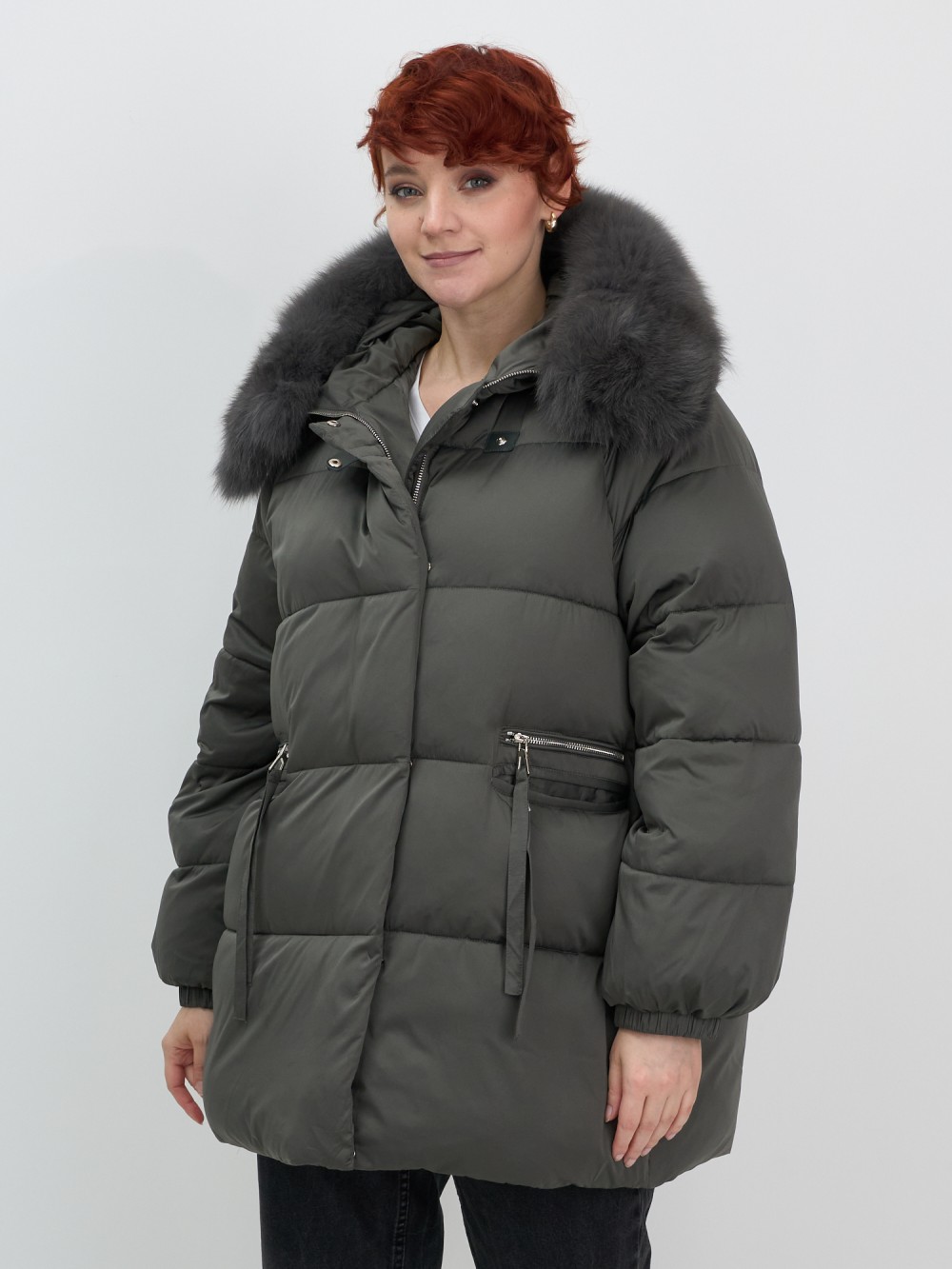 Куртка зимняя женская с мехом и капюшоном тренд темно-зеленого цвета 7639TZ — Visdeer