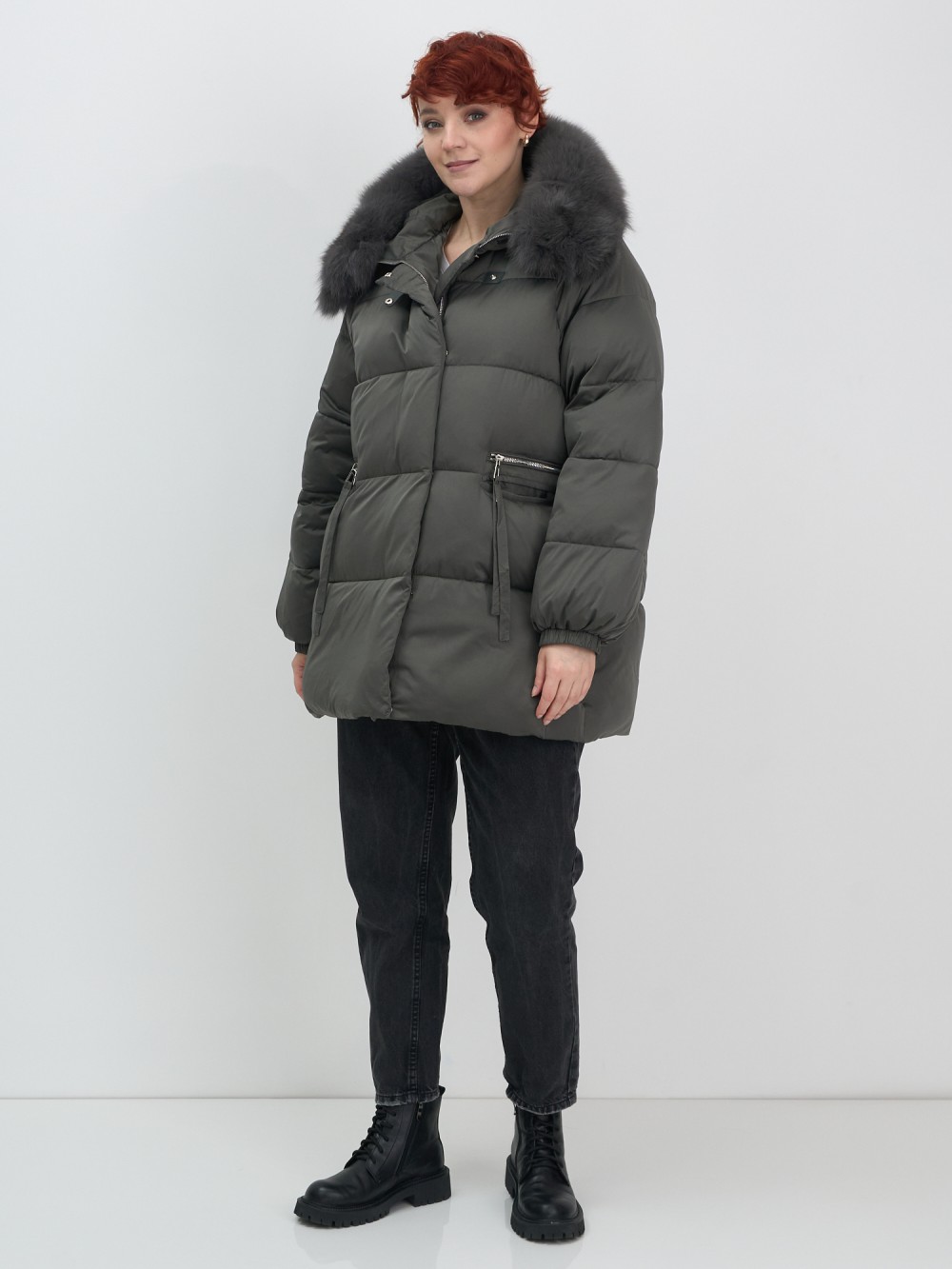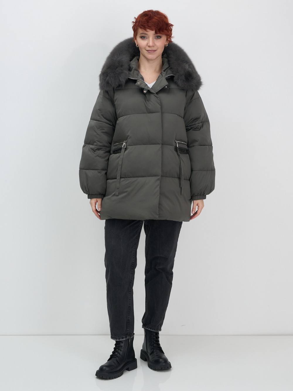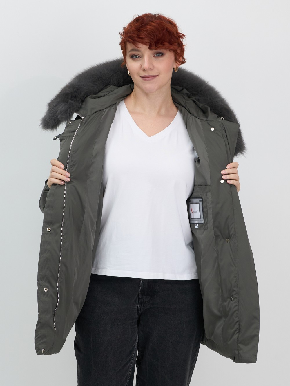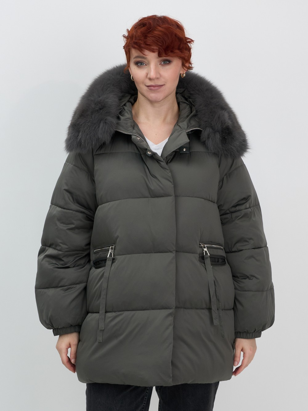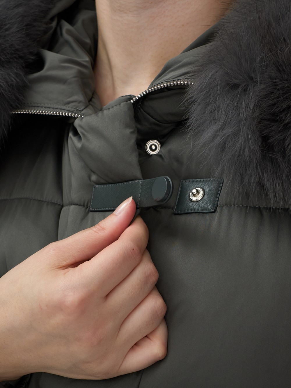 Куртка зимняя женская с мехом и капюшоном тренд темно-зеленого цвета 7639TZ — Visdeer