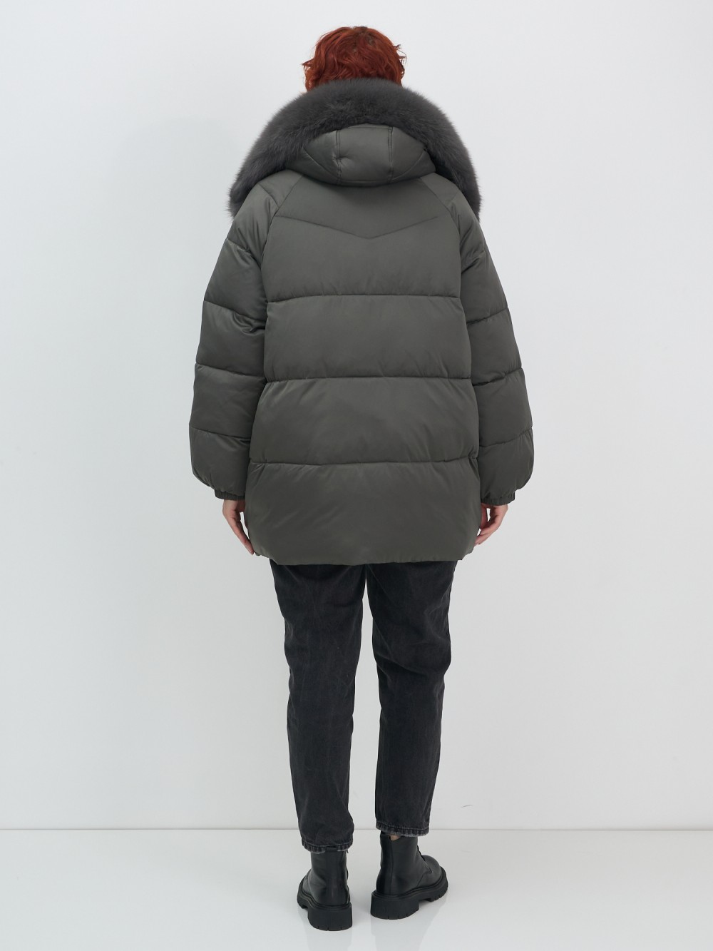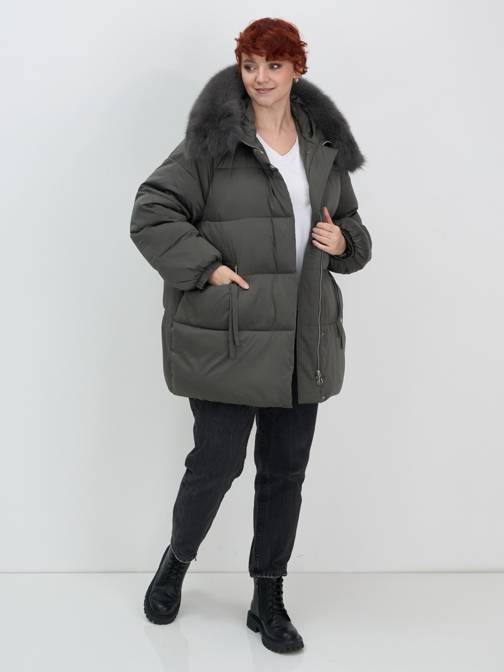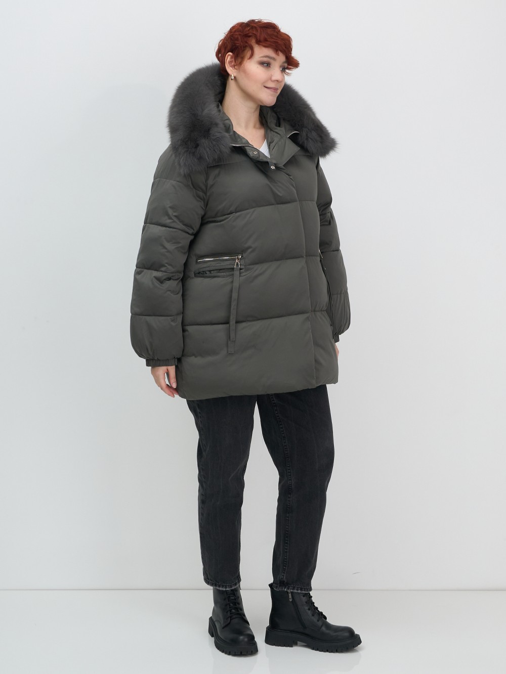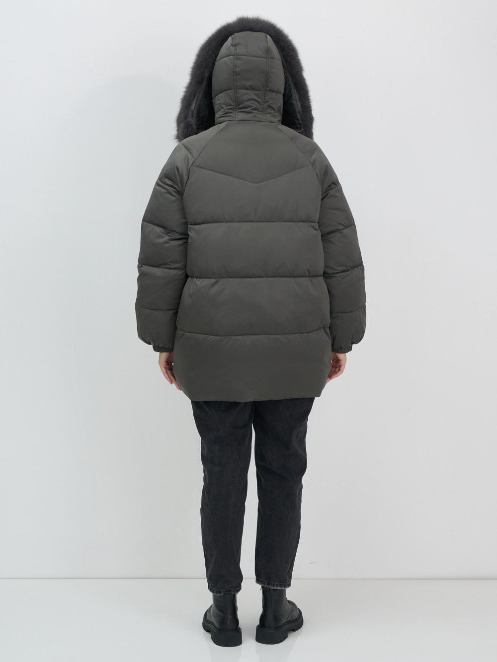 Куртка зимняя женская с мехом и капюшоном тренд темно-зеленого цвета 7639TZ — Visdeer