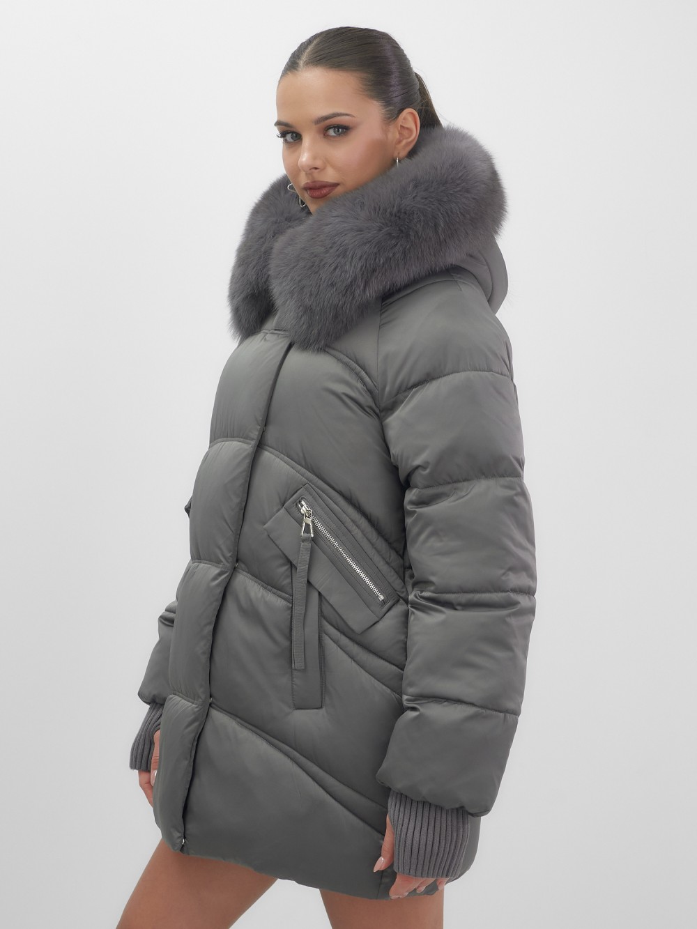 Куртка зимняя женская с мехом и капюшоном тренд темно-зеленого цвета 7737TZ — Visdeer