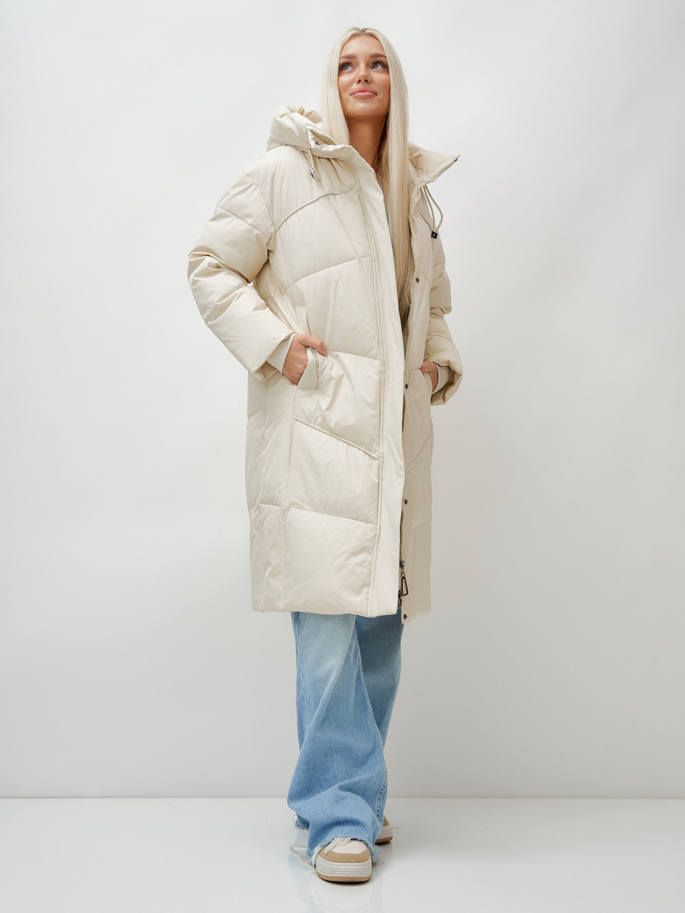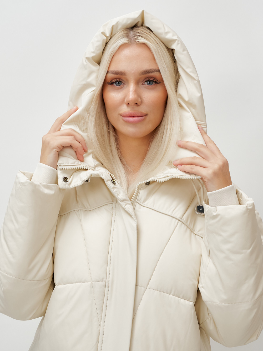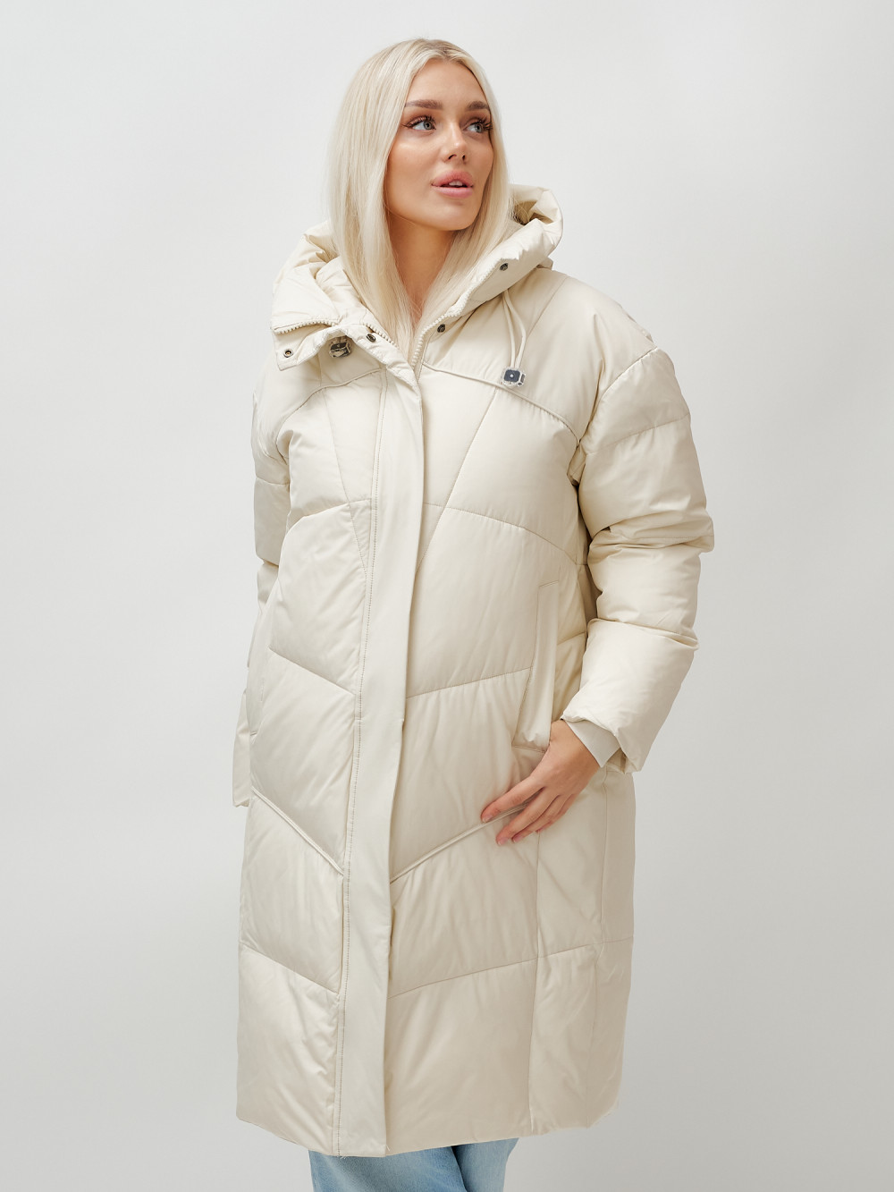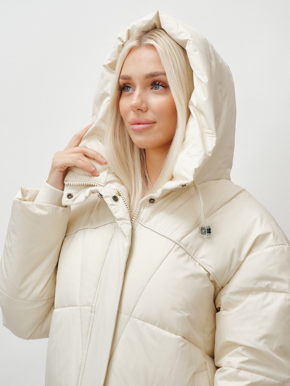 Пальто летучая мышь женское с капюшоном зимнее бежевого цвета 9616B — MTFORCE