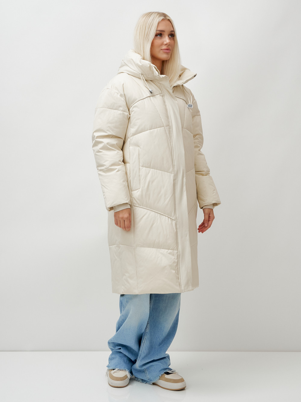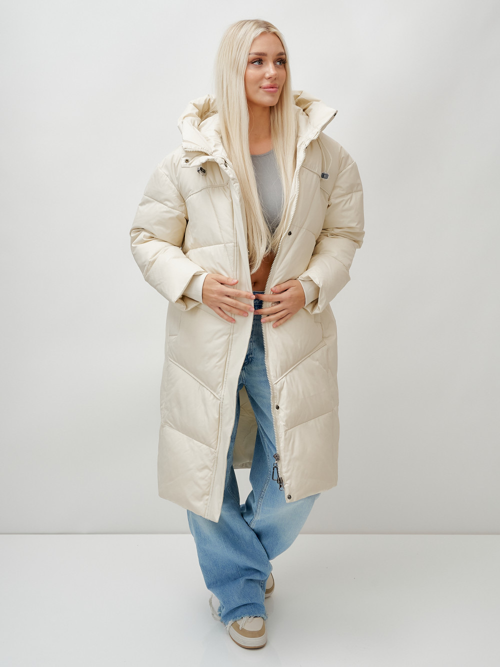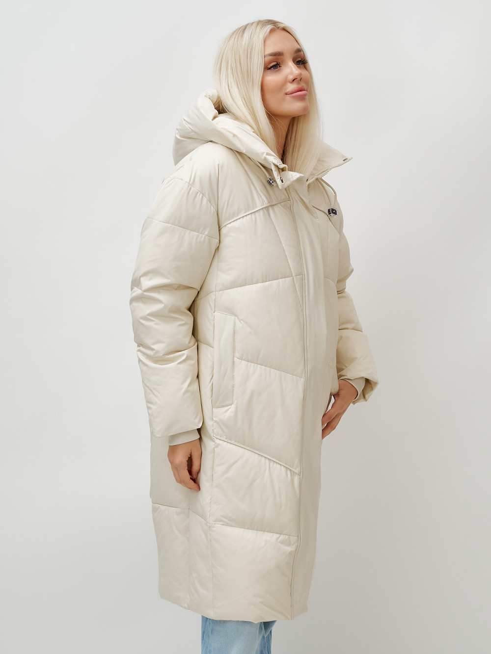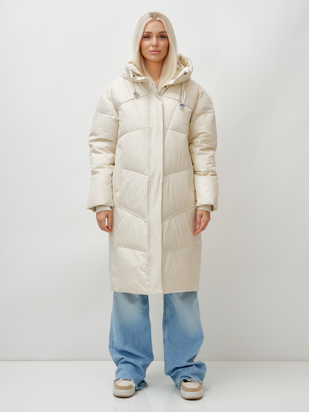 Пальто летучая мышь женское с капюшоном зимнее бежевого цвета 9616B — MTFORCE