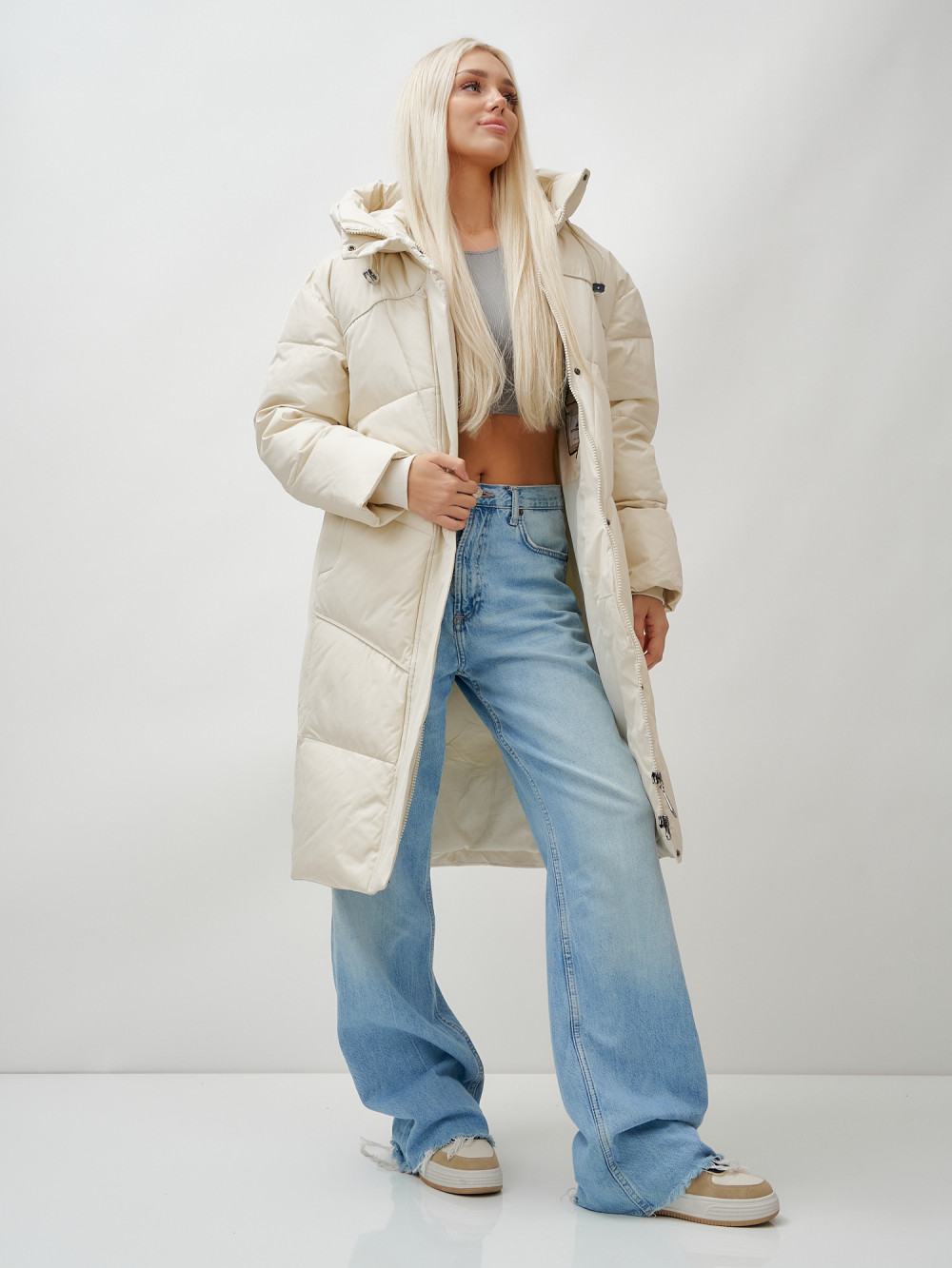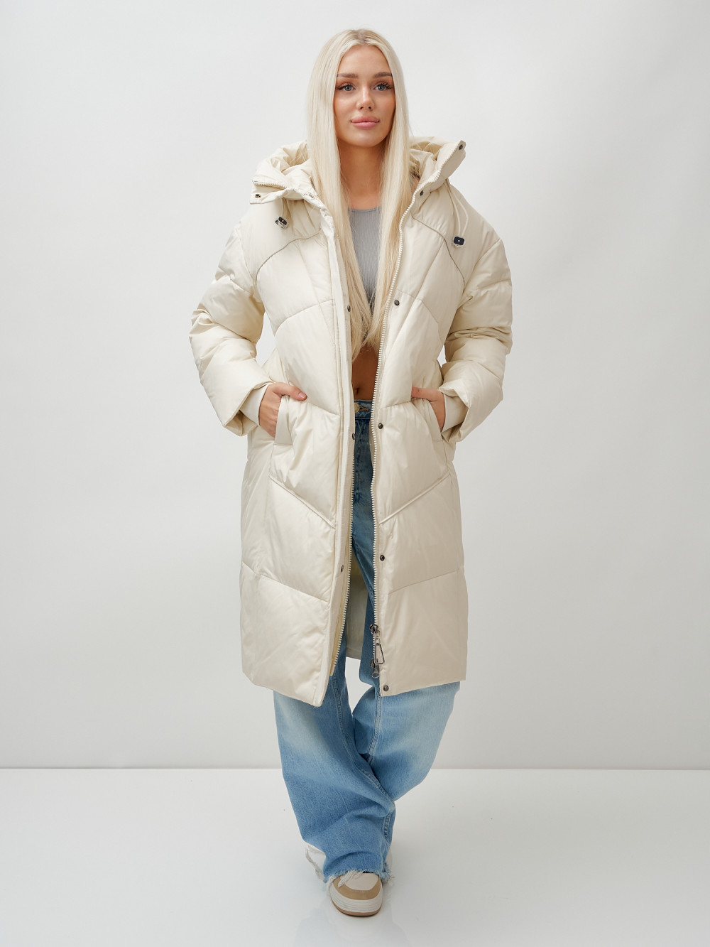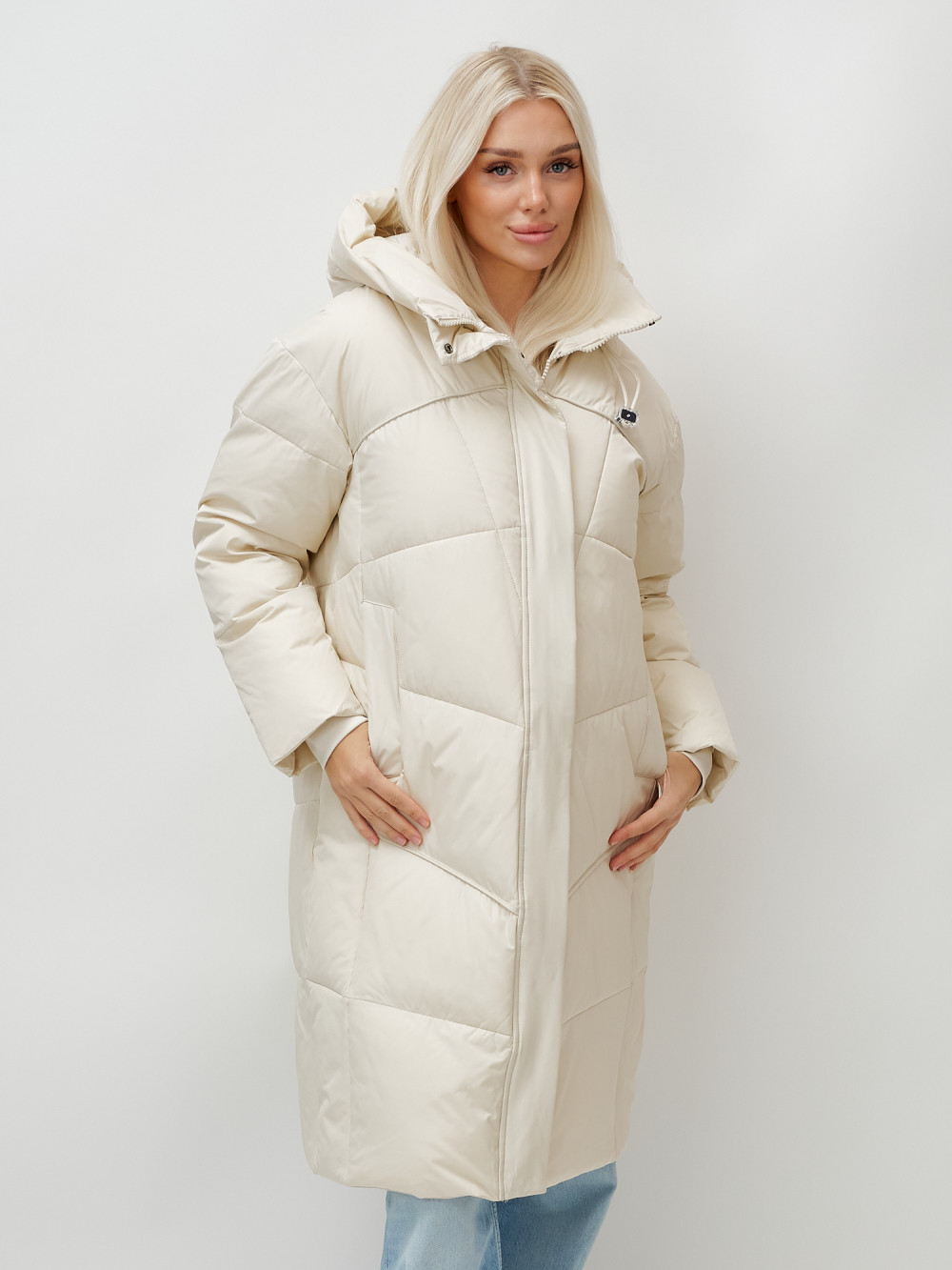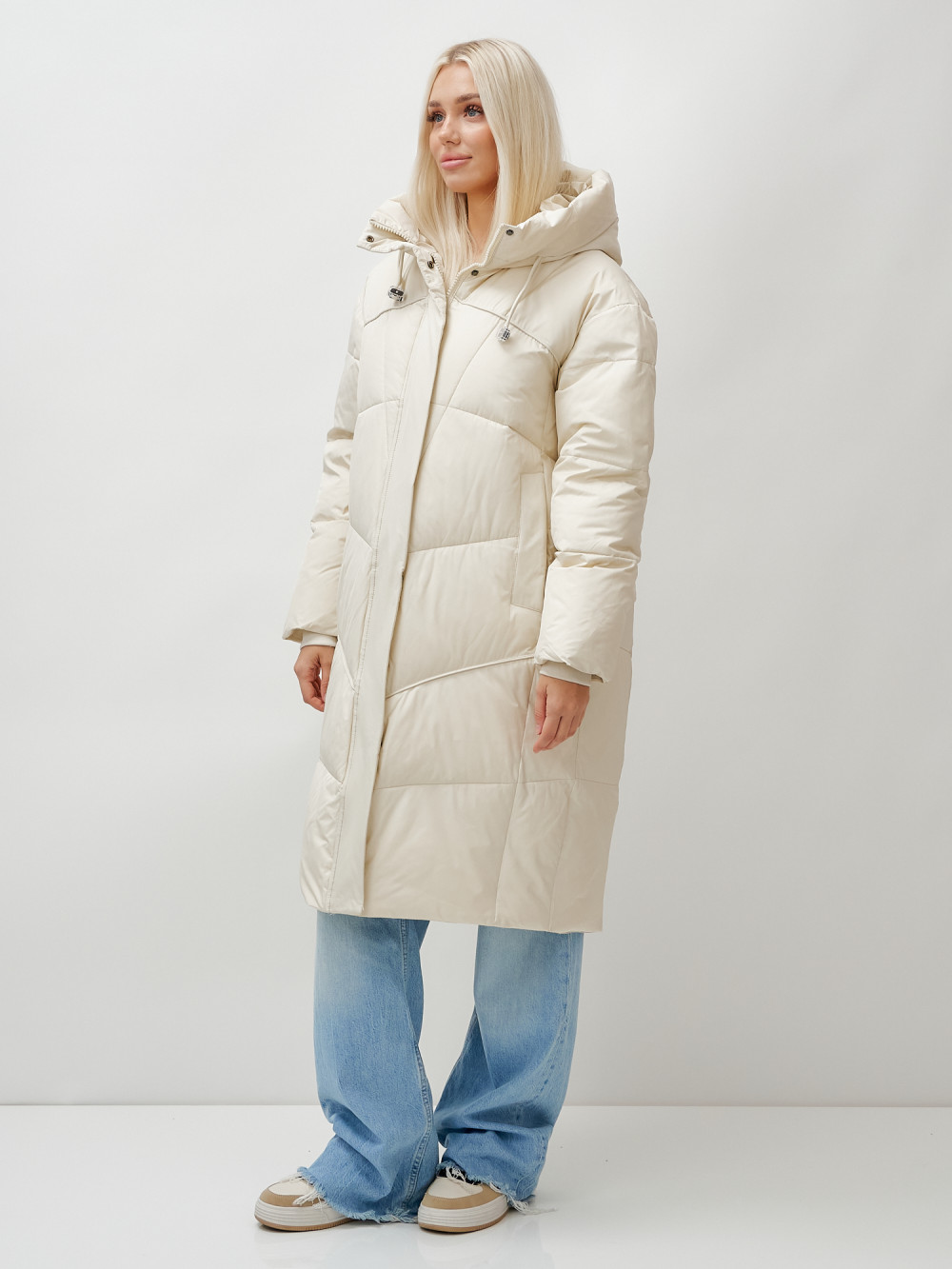 Пальто летучая мышь женское с капюшоном зимнее бежевого цвета 9616B — MTFORCE