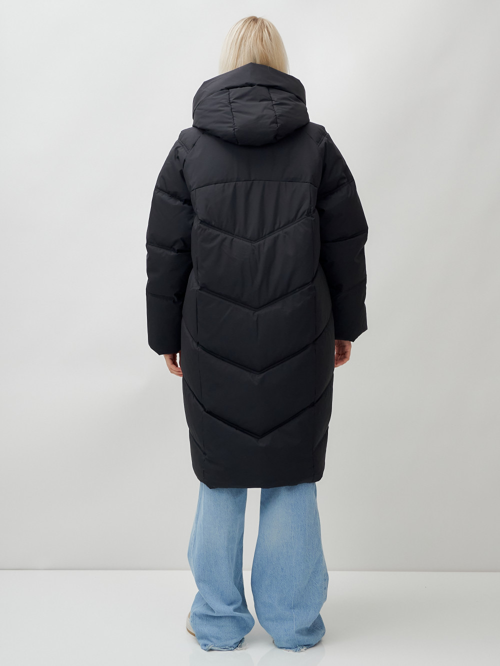— Несъемный регулируемый капюшон позволяет адаптировать пальто под любые погодные условия, обеспечивая защиту от ветра и снега.