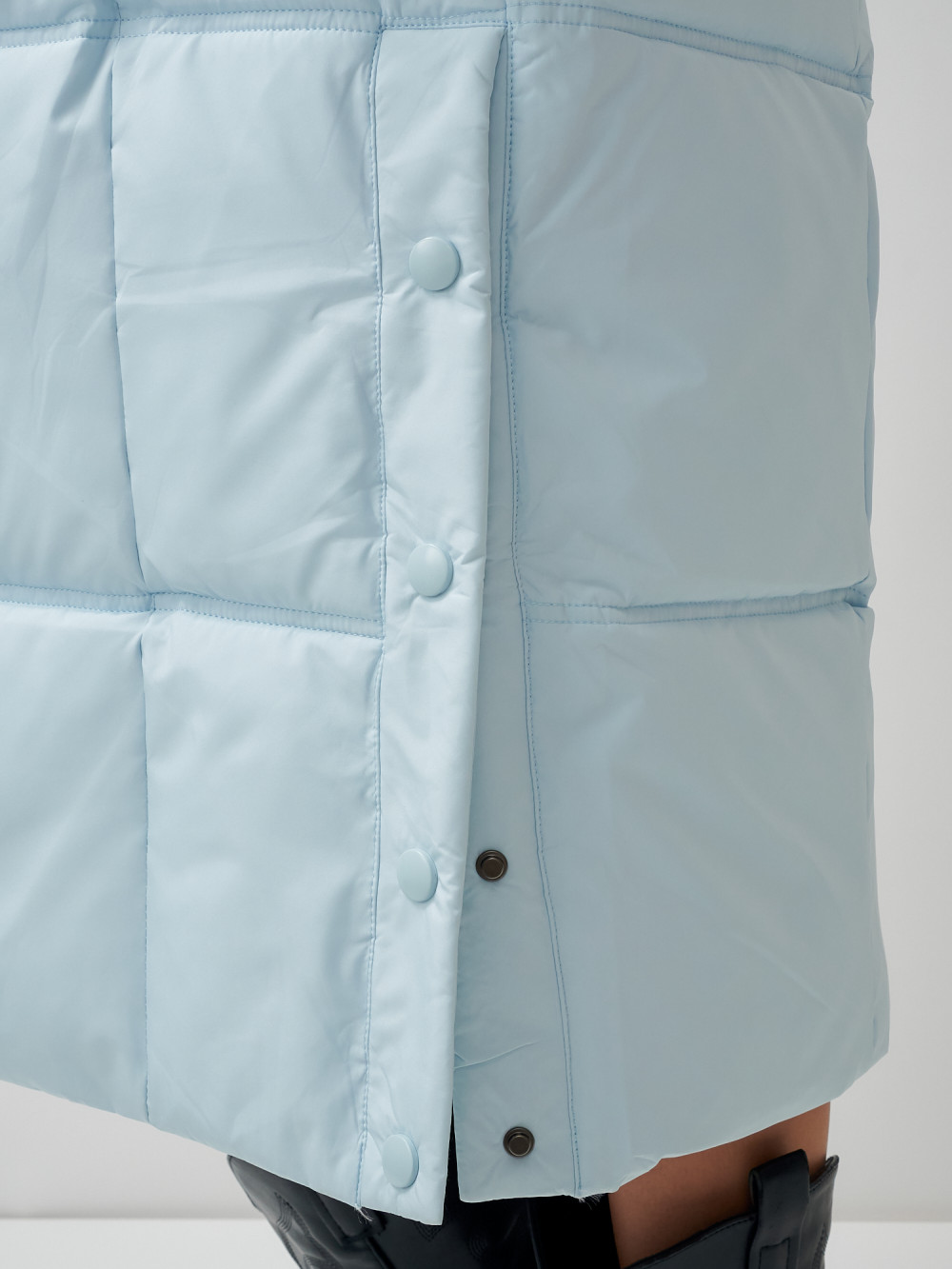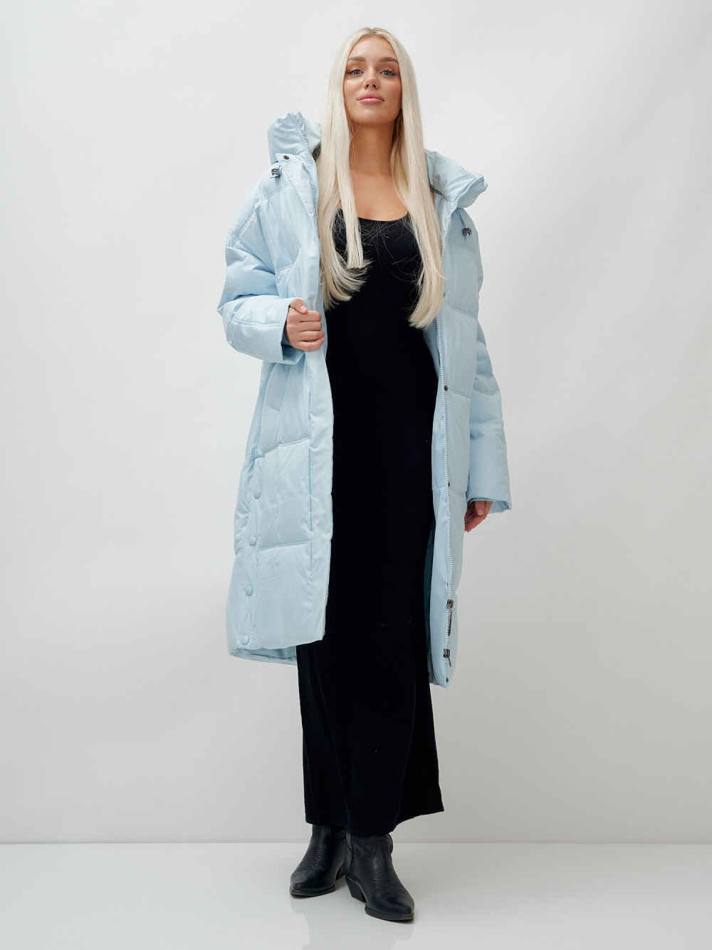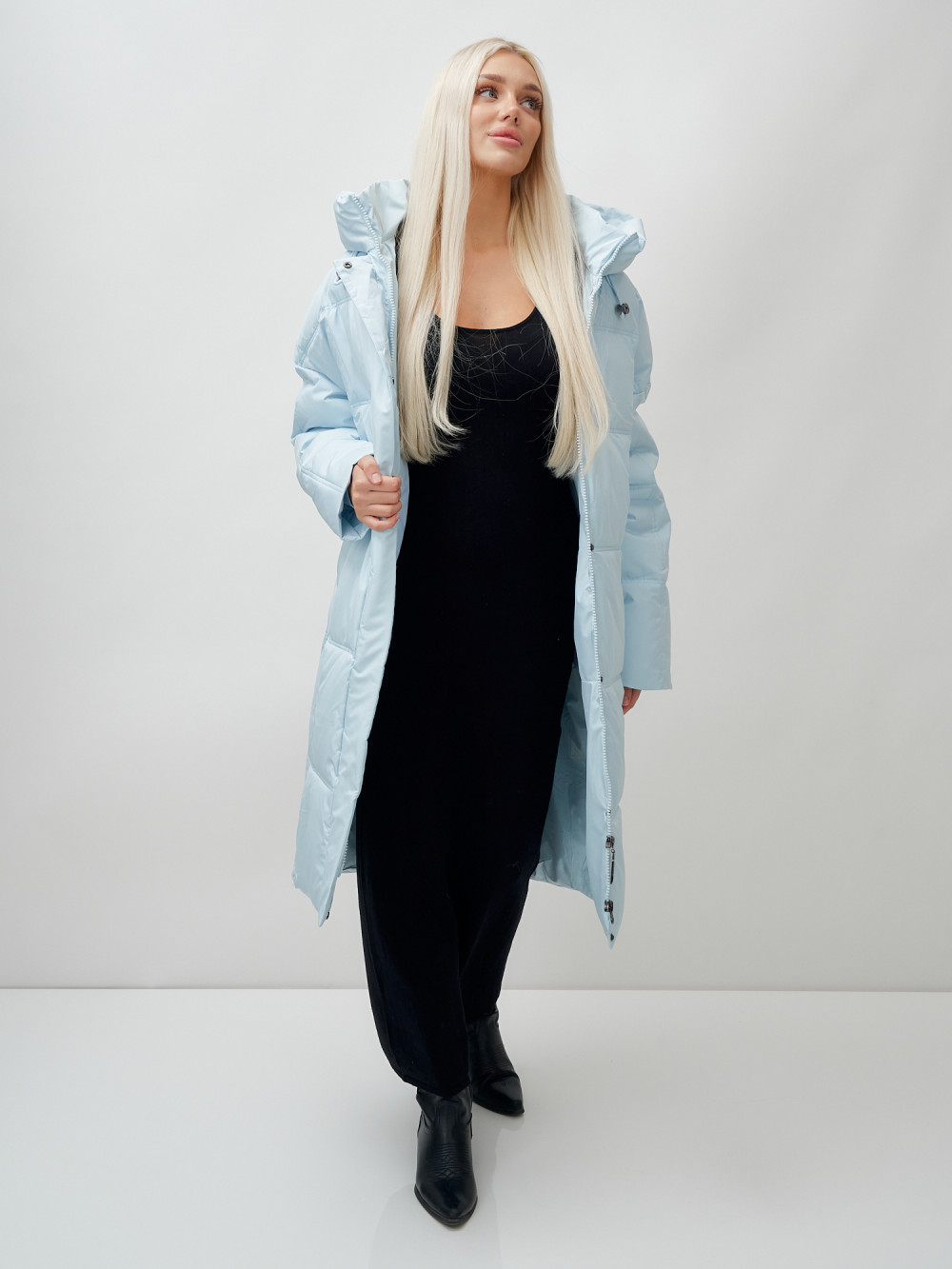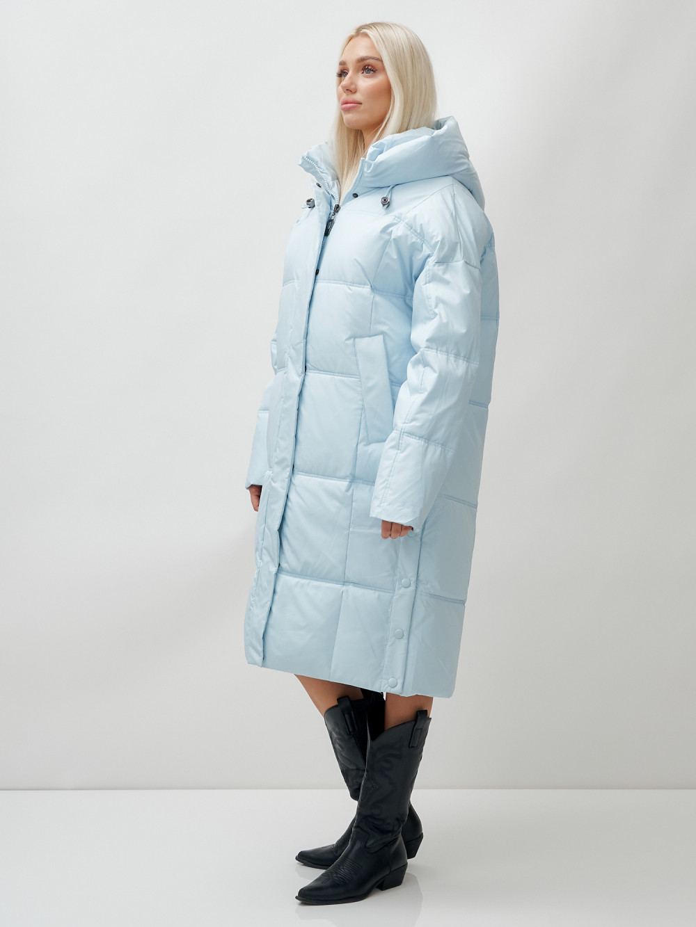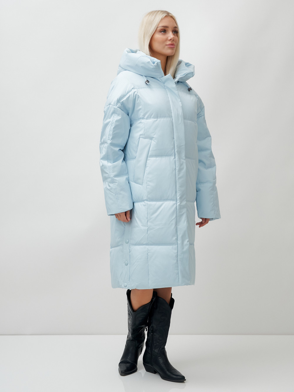 Пальто летучая мышь женское с капюшоном зимнее голубого цвета 9619Gl — MTFORCE