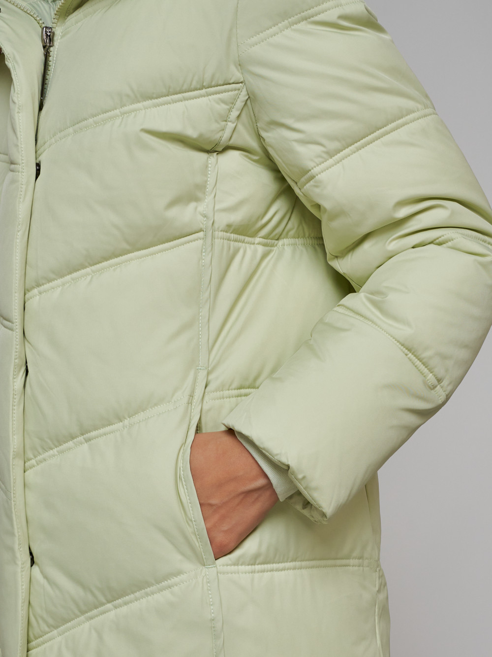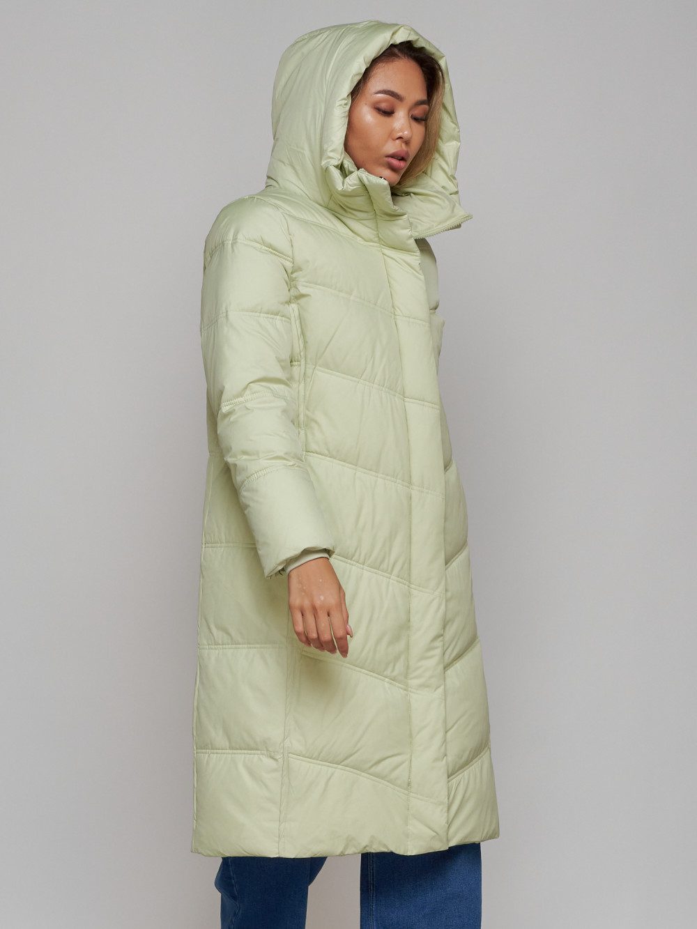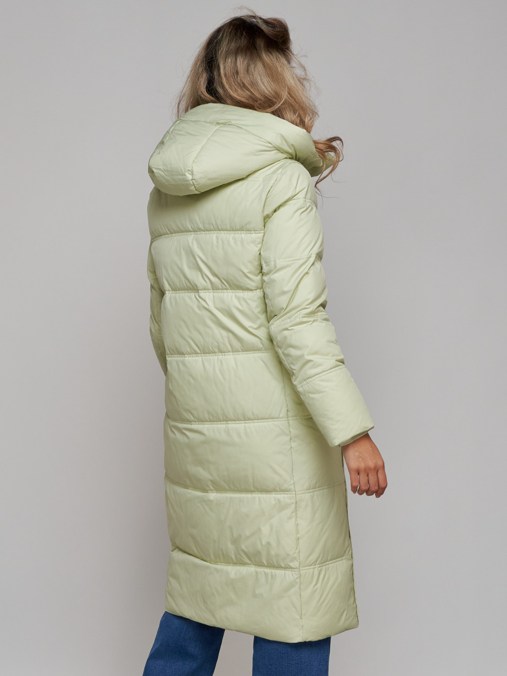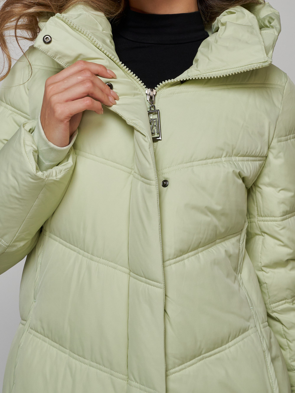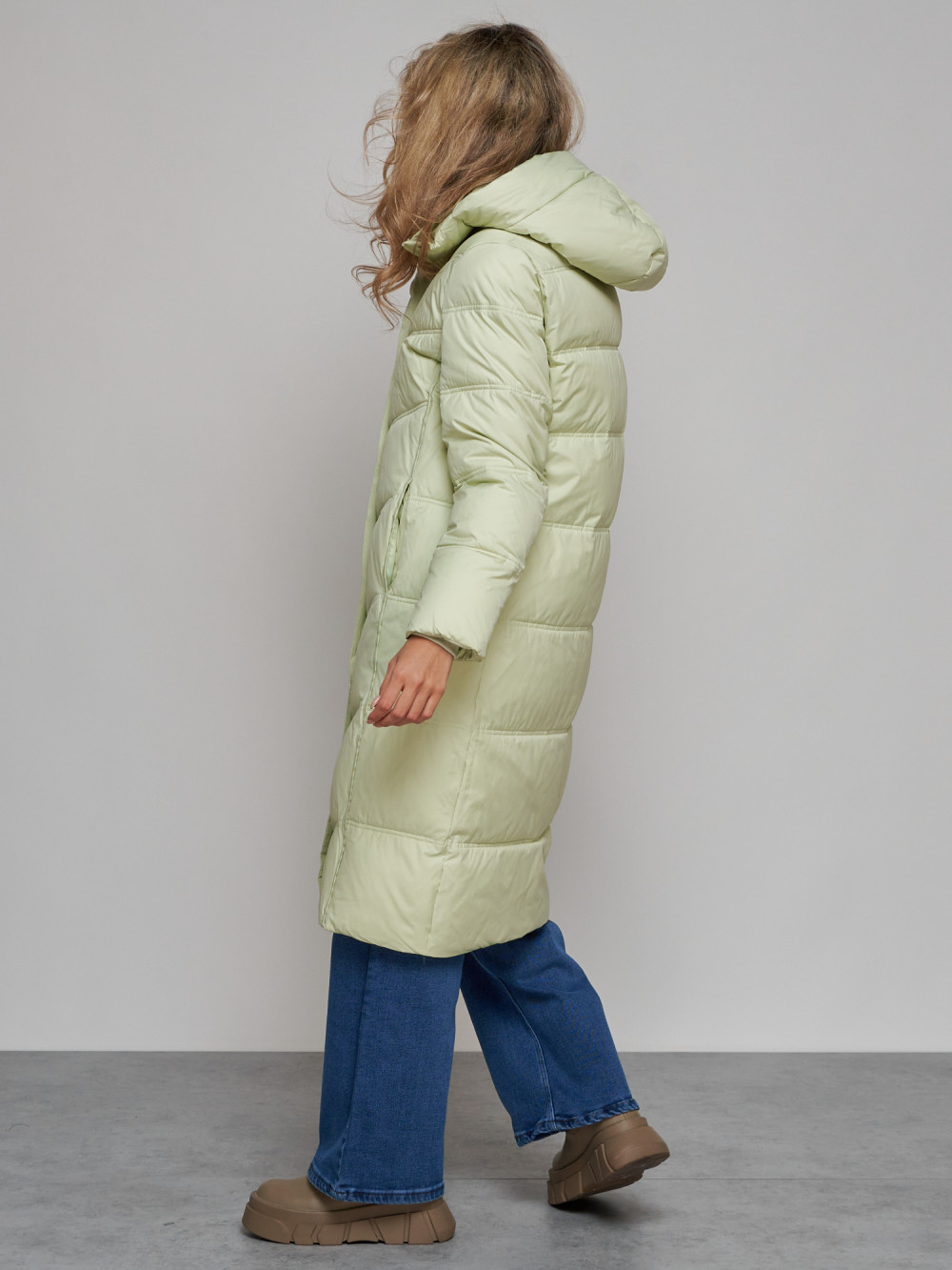 Пальто утепленное молодежное зимнее женское светло-зеленого цвета 52325ZS