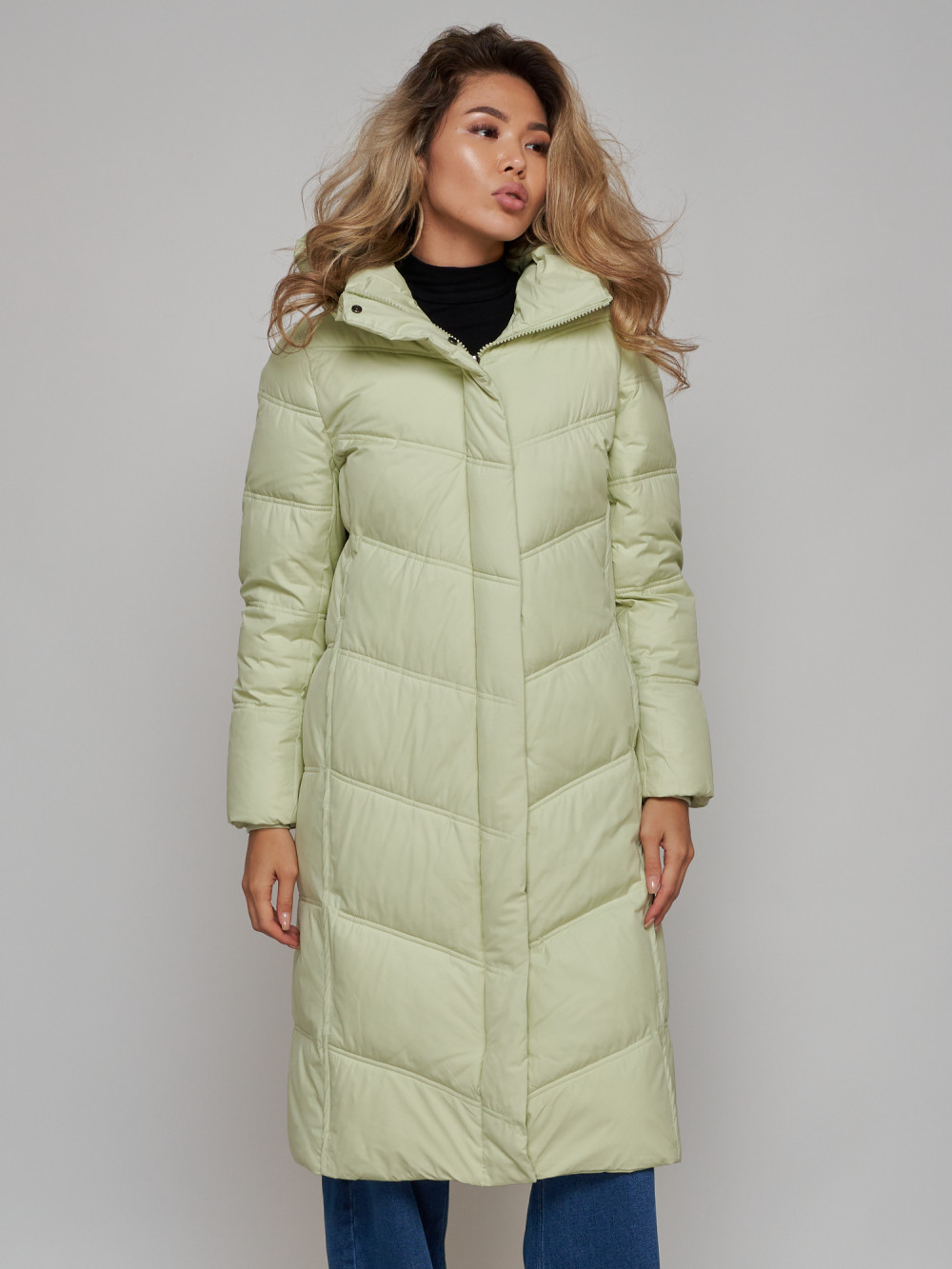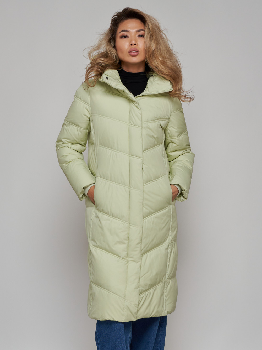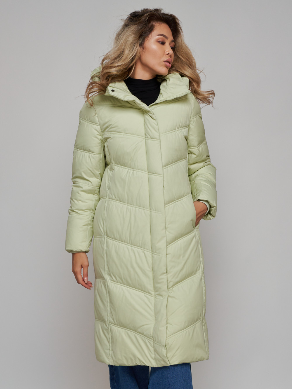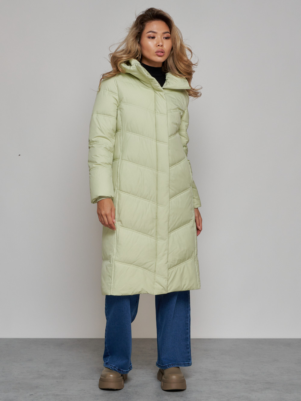 Пальто утепленное молодежное зимнее женское светло-зеленого цвета 52325ZS