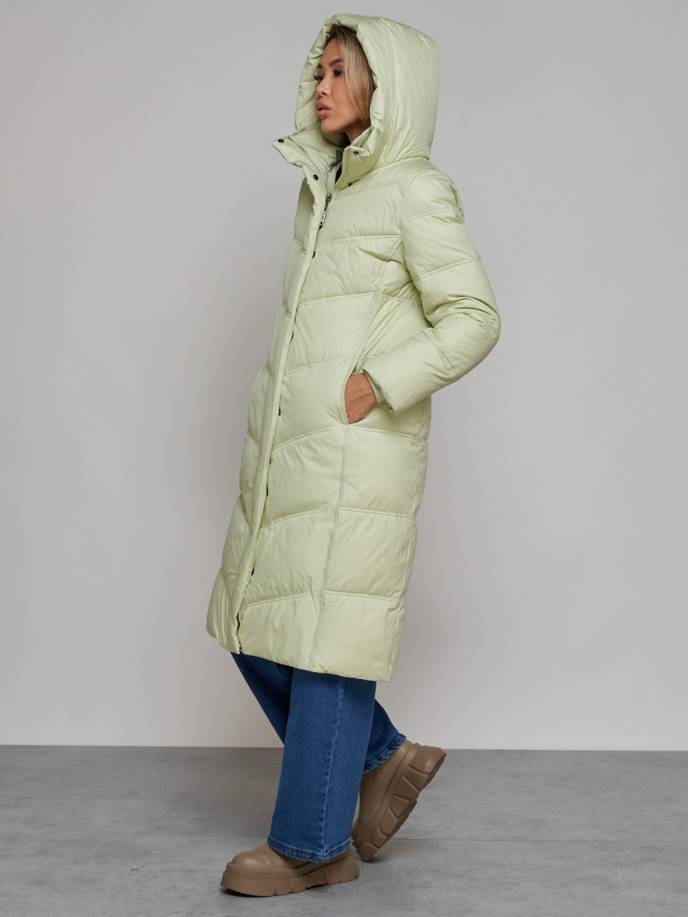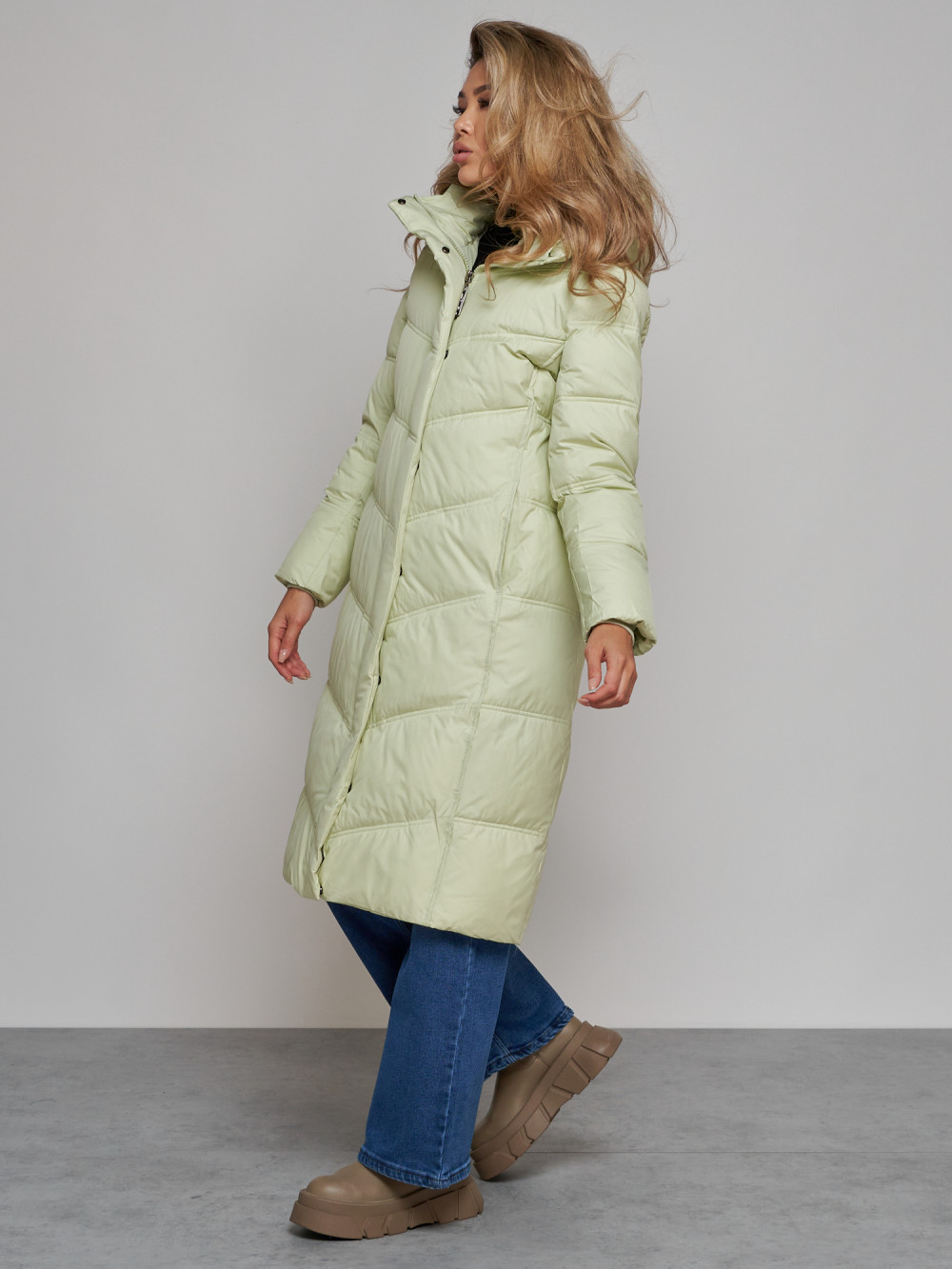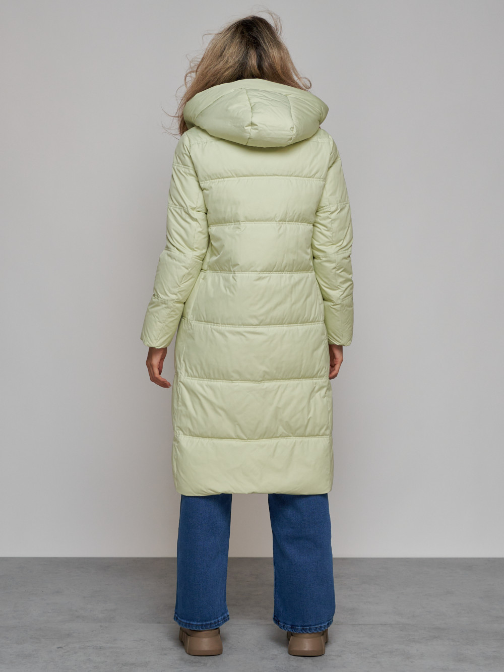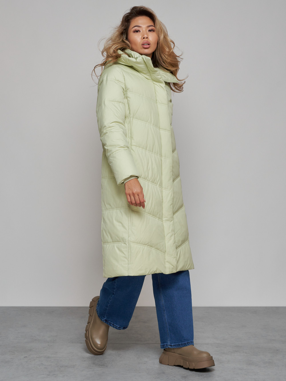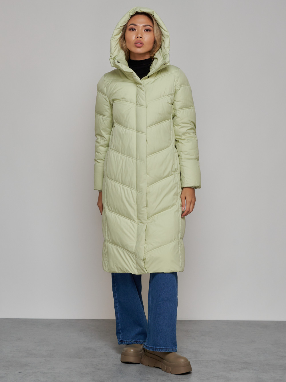 Пальто утепленное молодежное зимнее женское светло-зеленого цвета 52325ZS