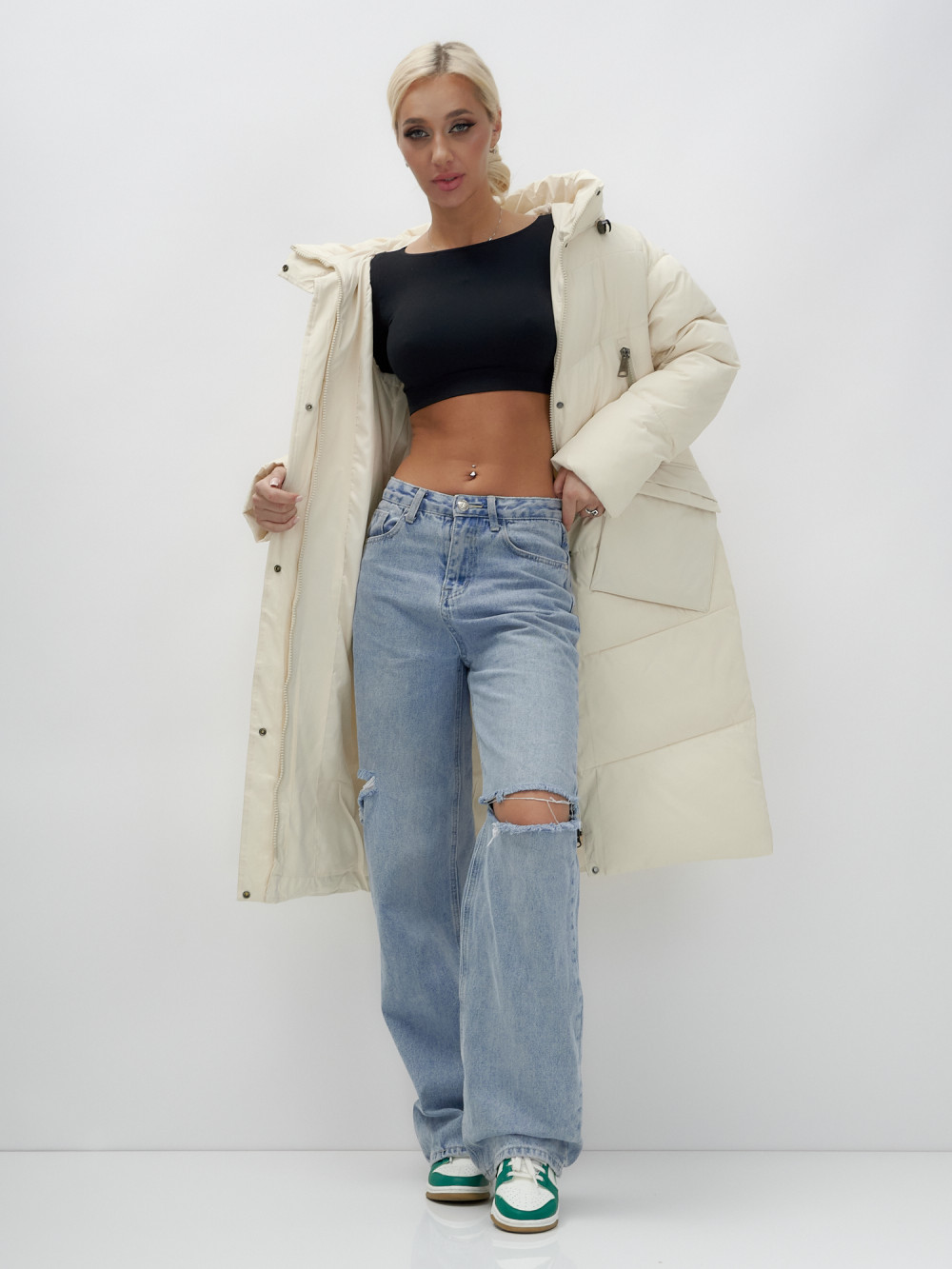 - Вид одежды: Свободная, утепленная модель