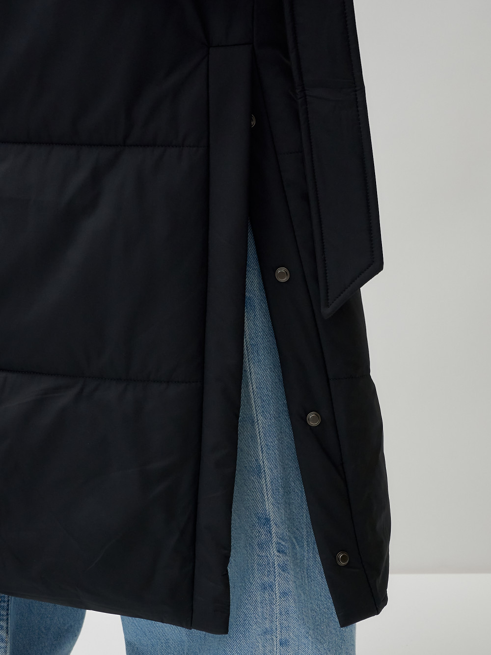 — Прошитый стеганый утеплитель делает пальто не только стильным, но и невероятно теплым. Расположенный единым полотном утеплитель гарантирует долговечность изделия, отлично справляется с многочисленными стирками.