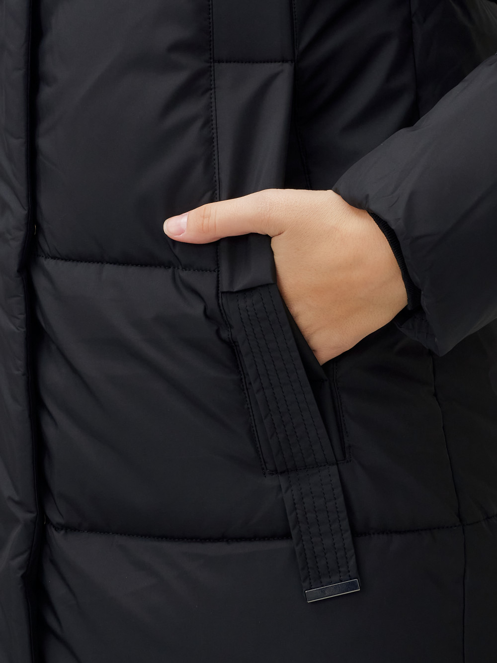 Зимнее женское утепленное пальто с капюшоном и идеальными деталями для вашего комфорта.