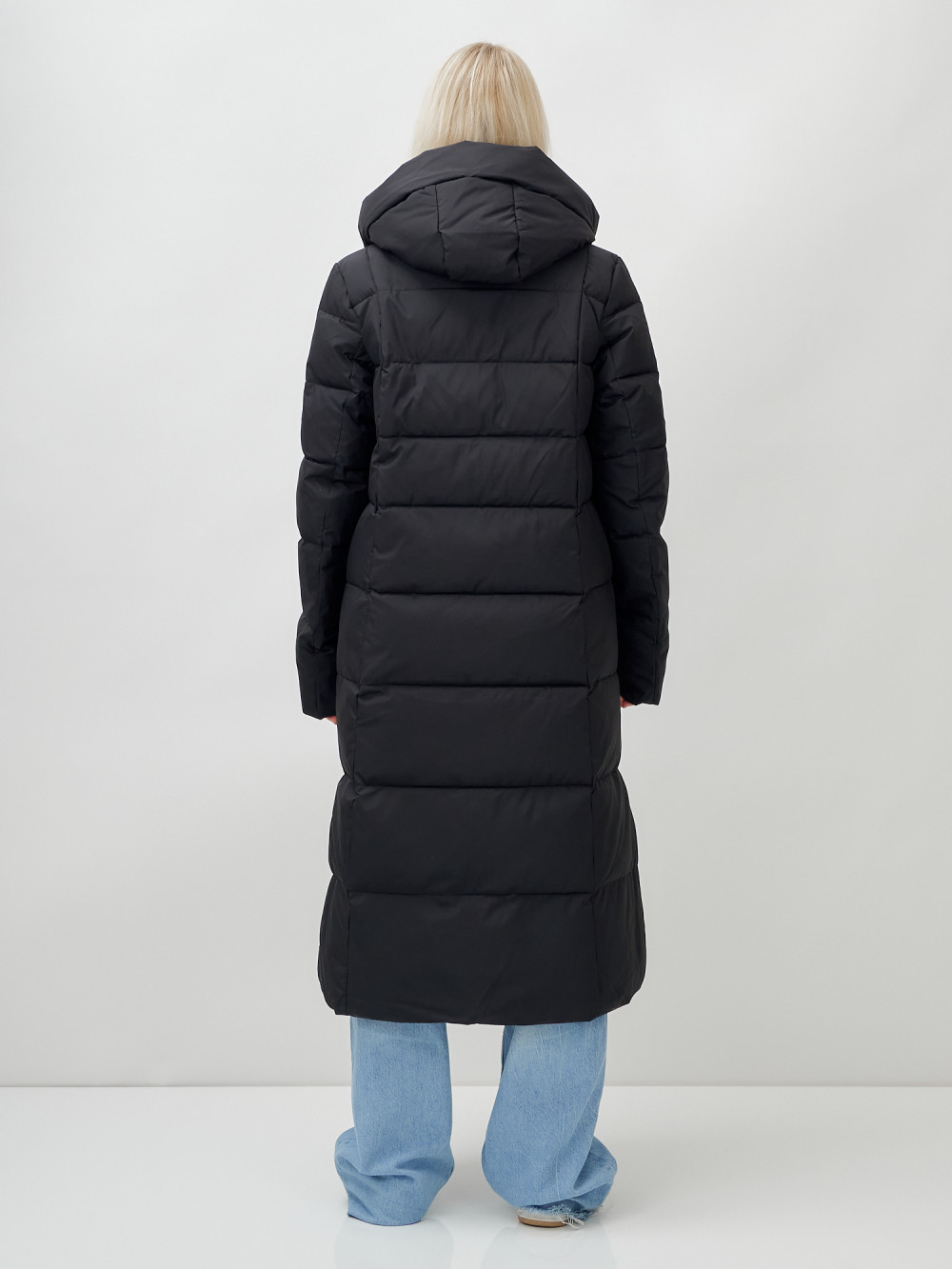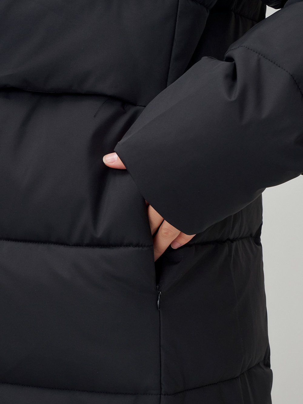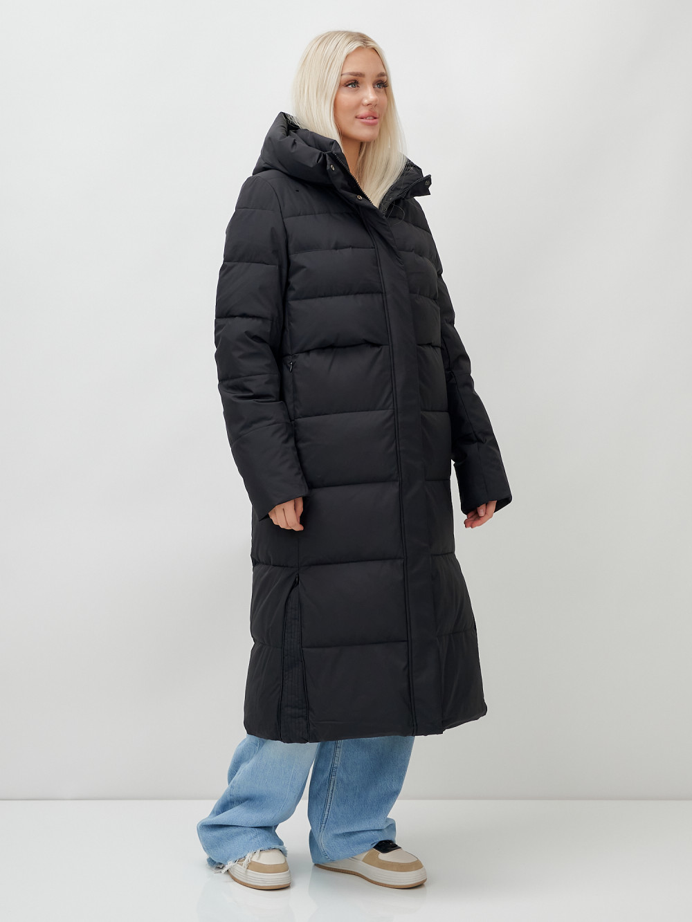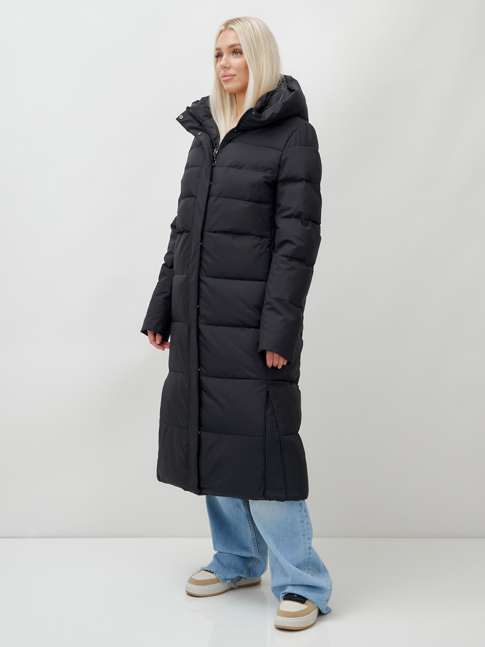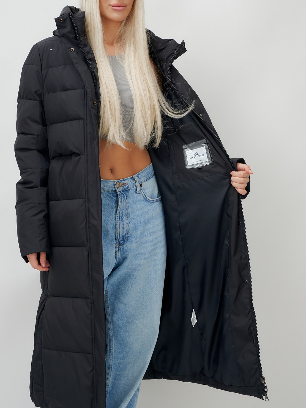 Пальто утепленное стеганное зимнее с капюшоном женское черного цвета 9620Ch — MTFORCE