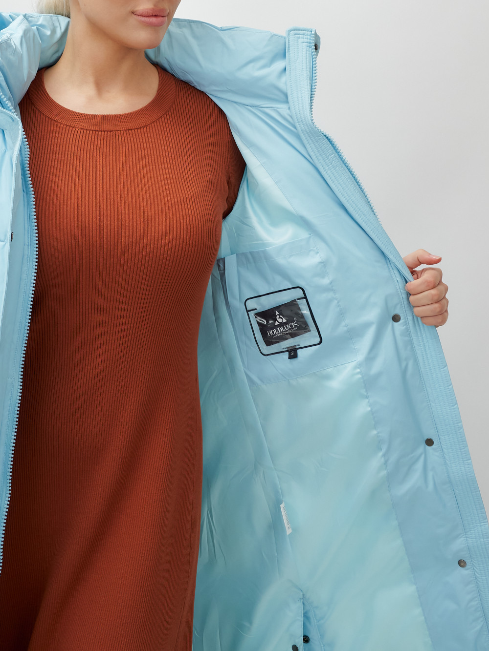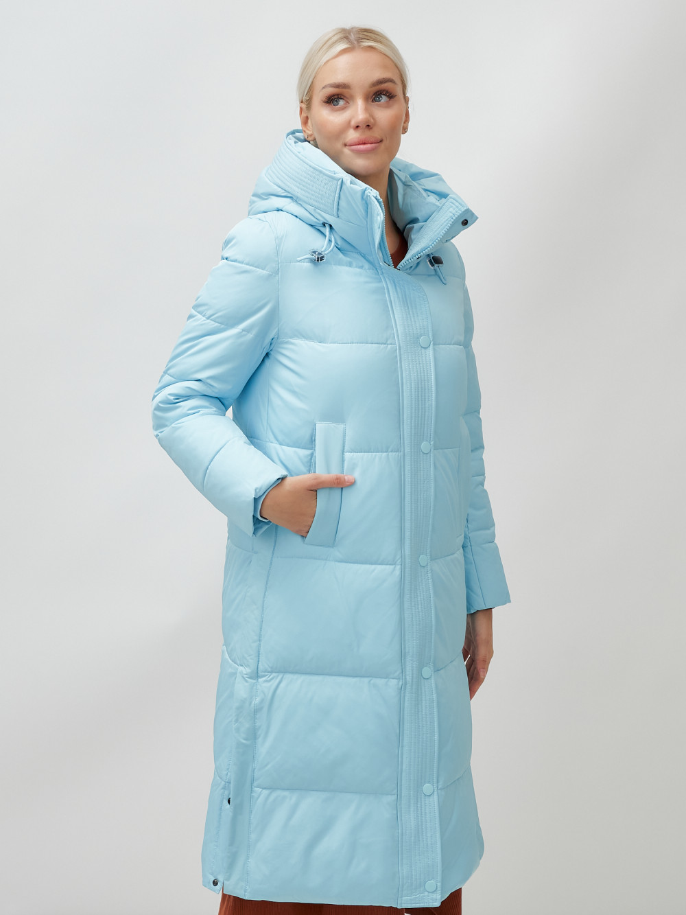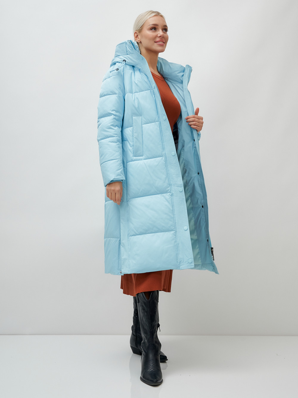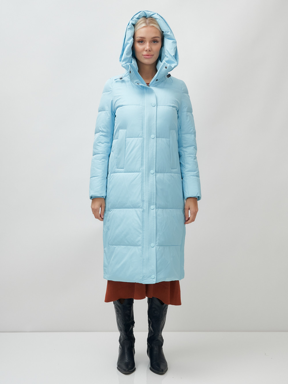 Пальто утепленное стеганное зимнее с капюшоном женское голубого цвета 9601Gl — HOLDLUCK