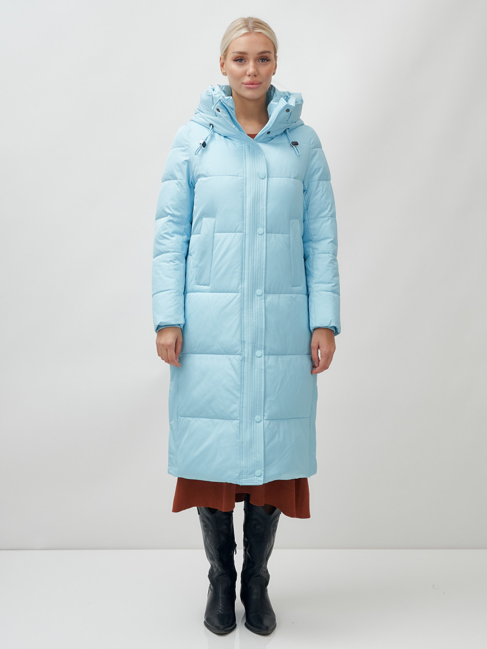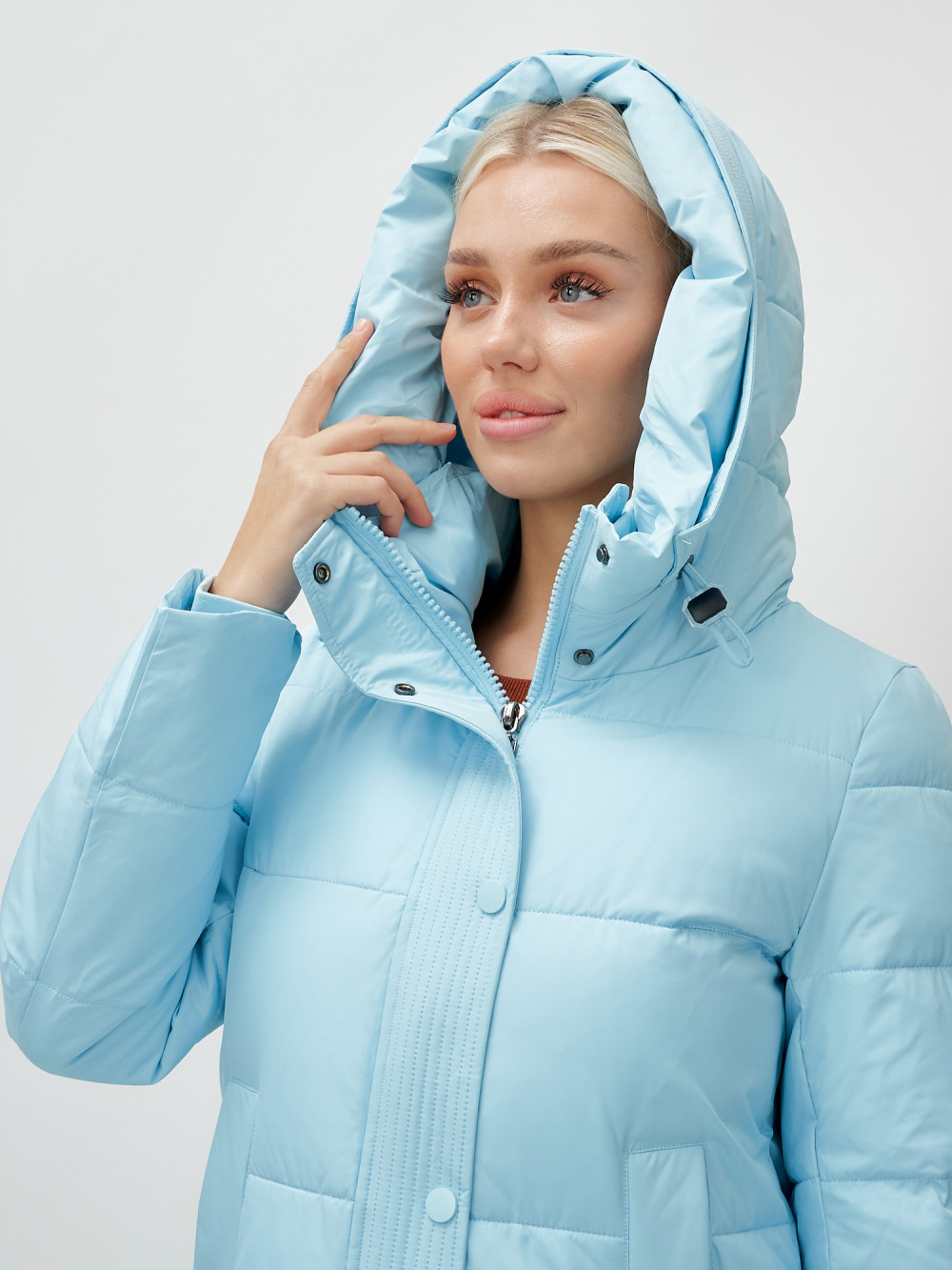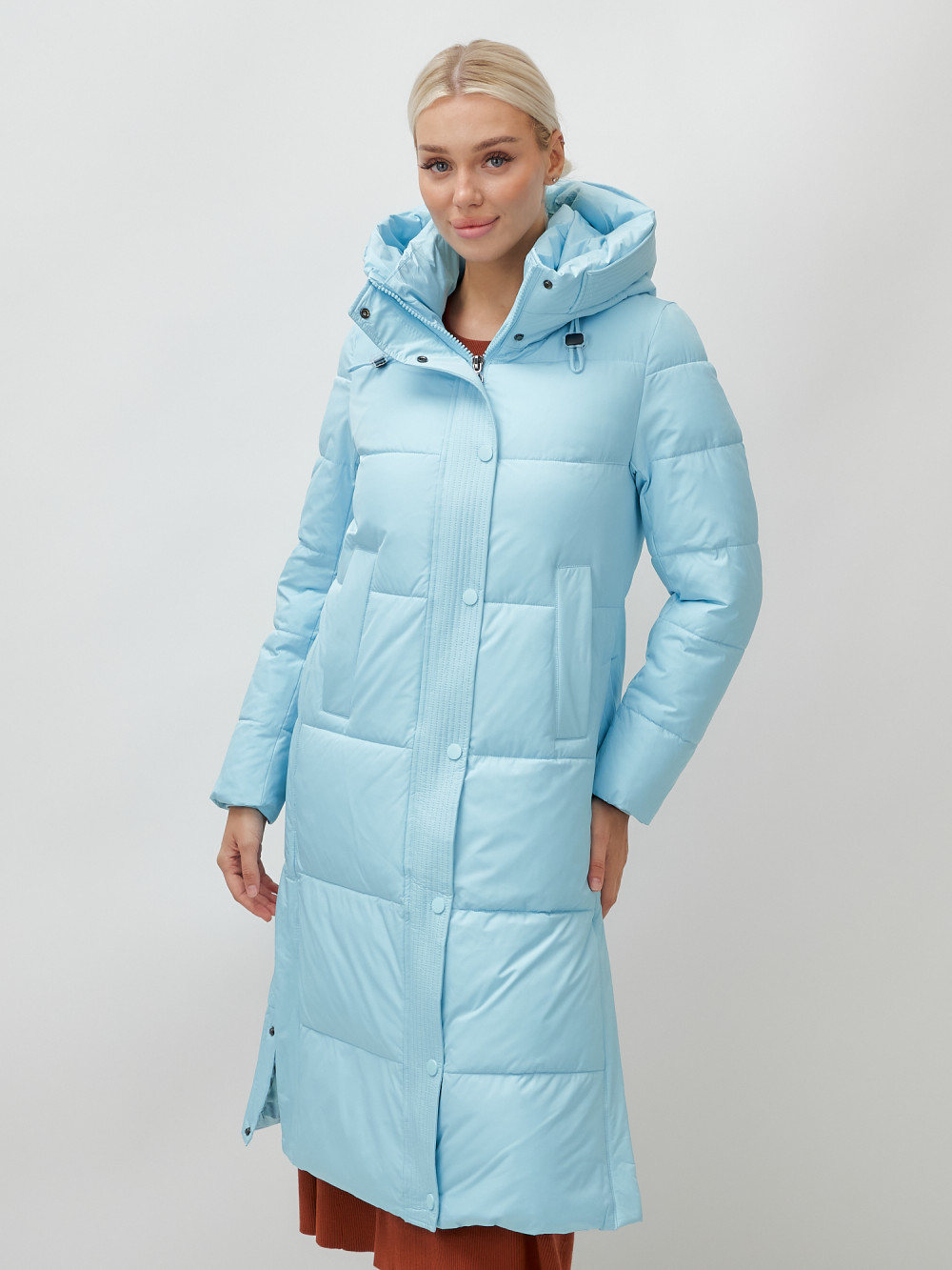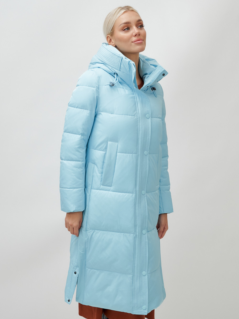 Пальто утепленное стеганное зимнее с капюшоном женское голубого цвета 9601Gl — HOLDLUCK