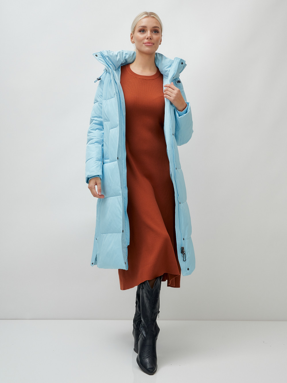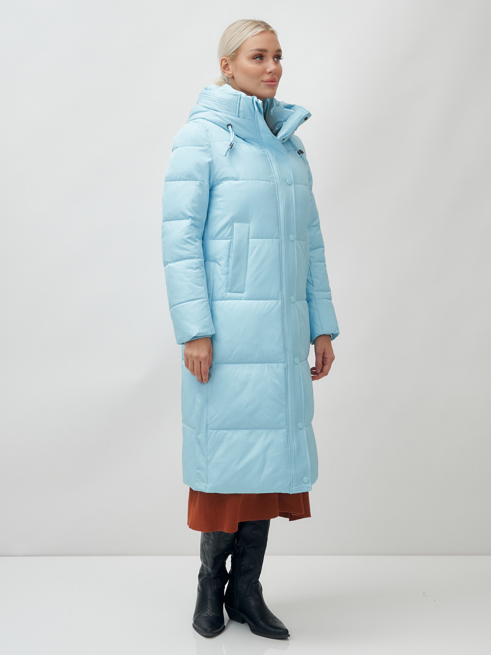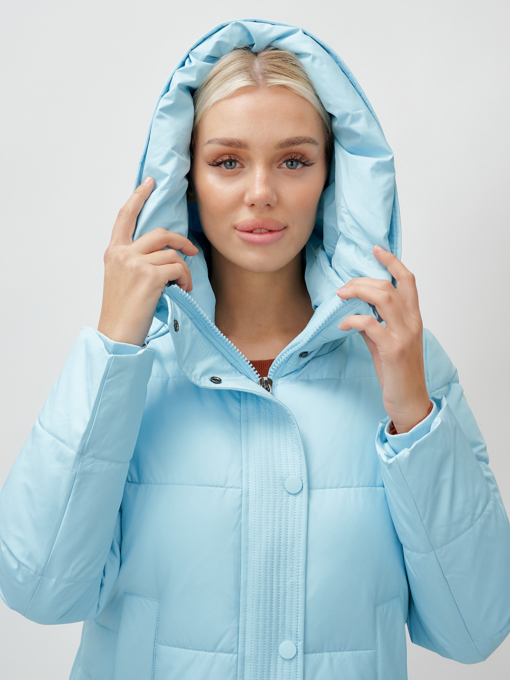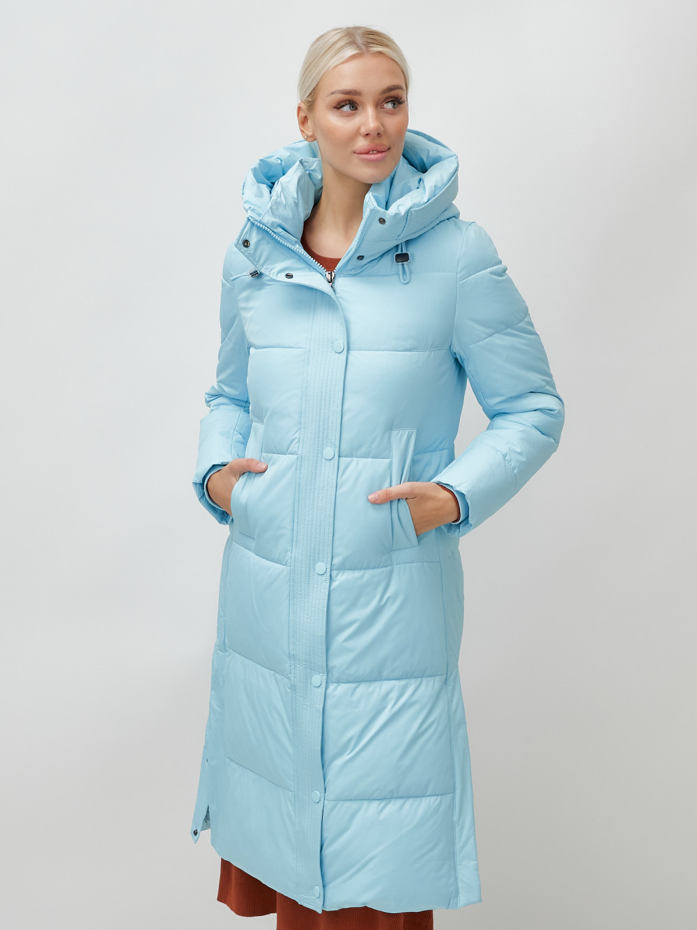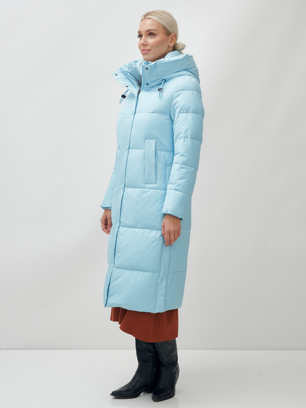 Пальто утепленное стеганное зимнее с капюшоном женское голубого цвета 9601Gl — HOLDLUCK