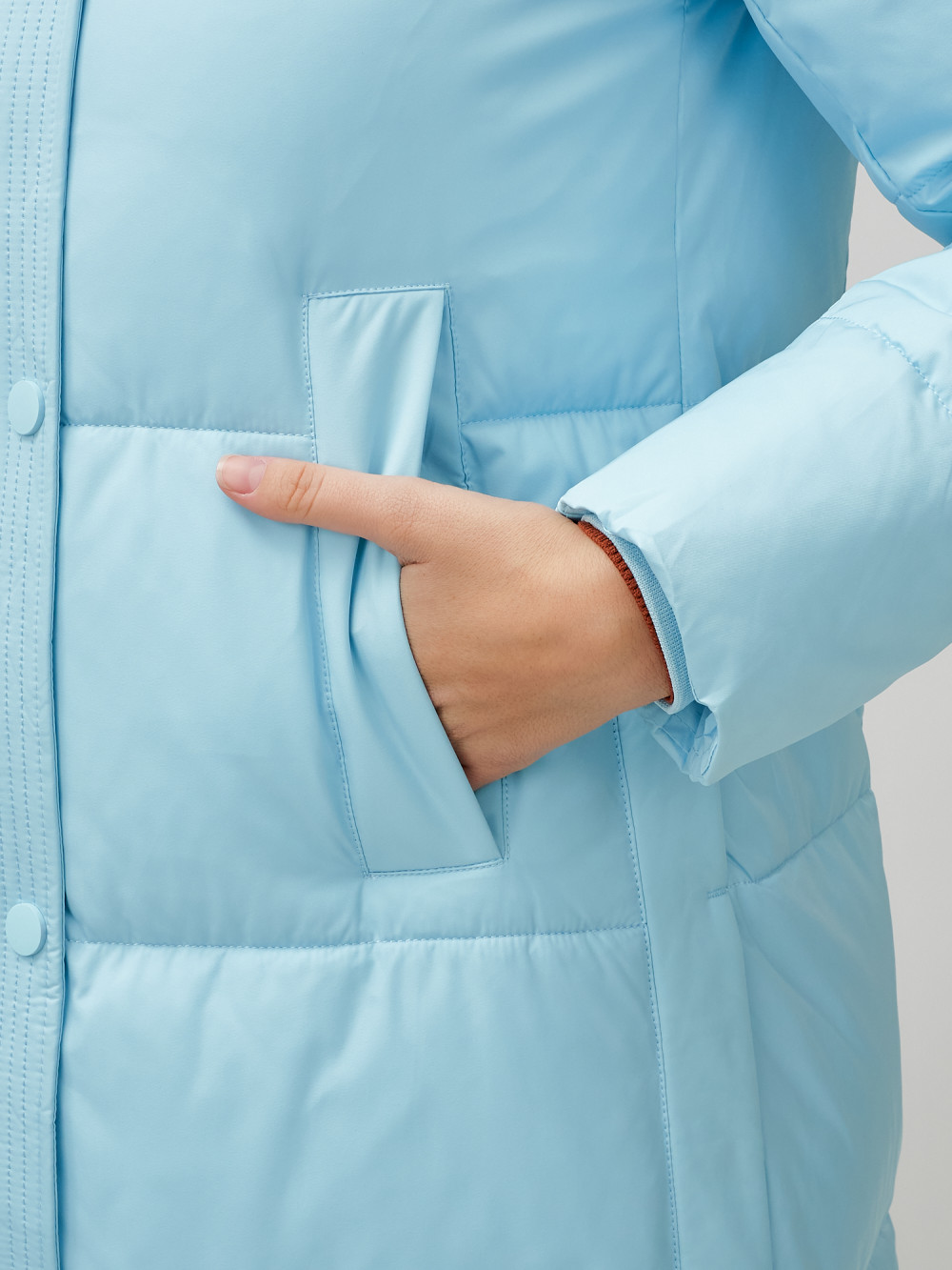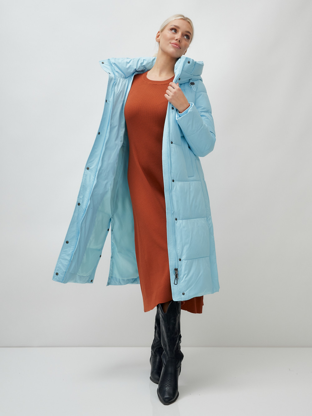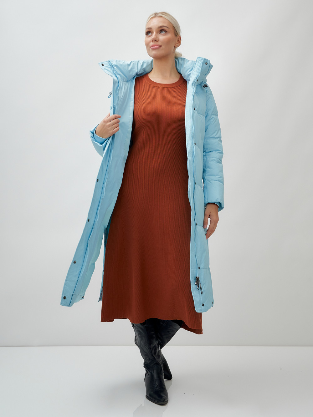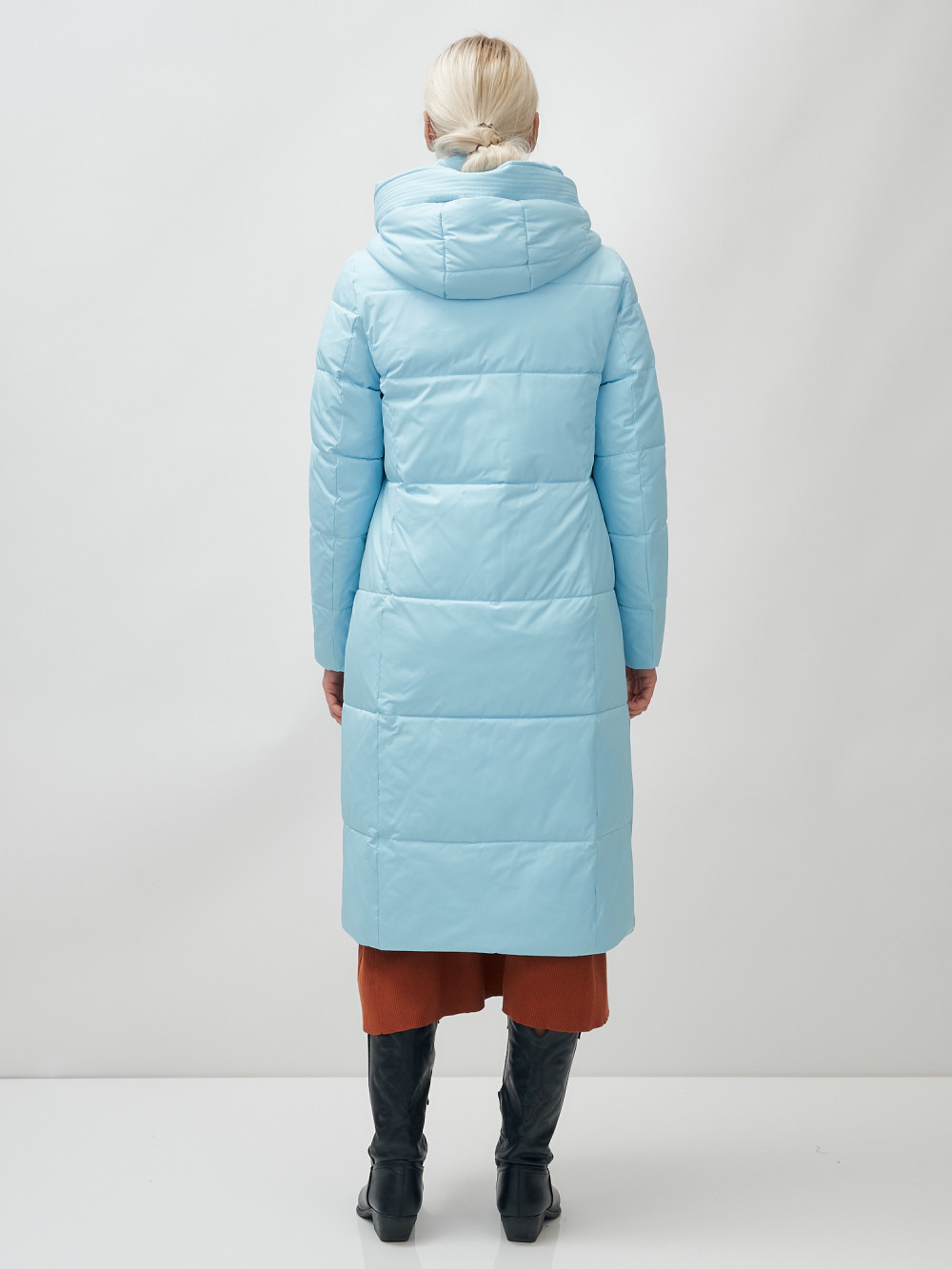 Пальто утепленное стеганное зимнее с капюшоном женское голубого цвета 9601Gl — HOLDLUCK