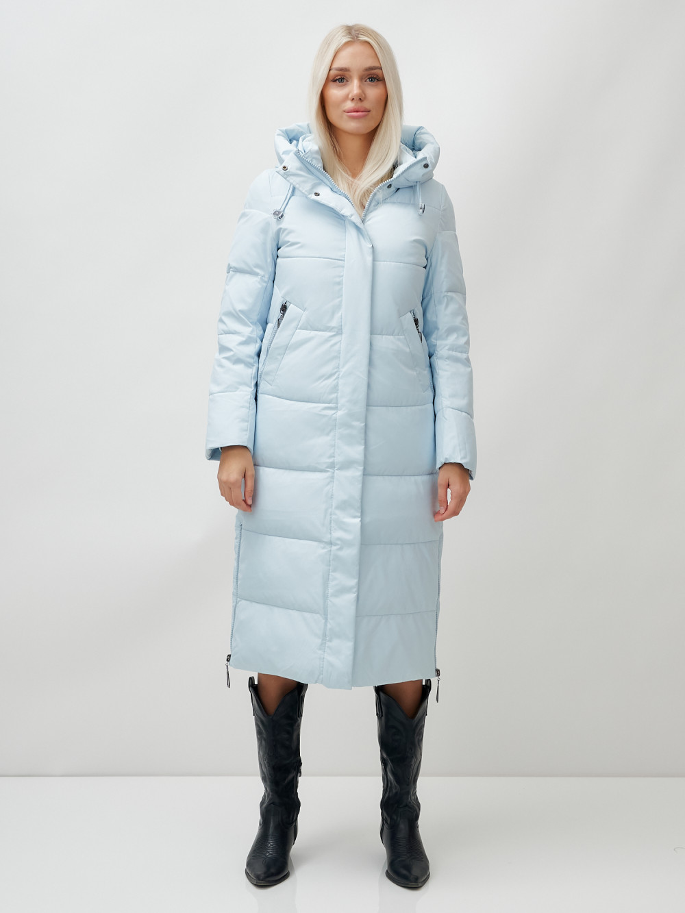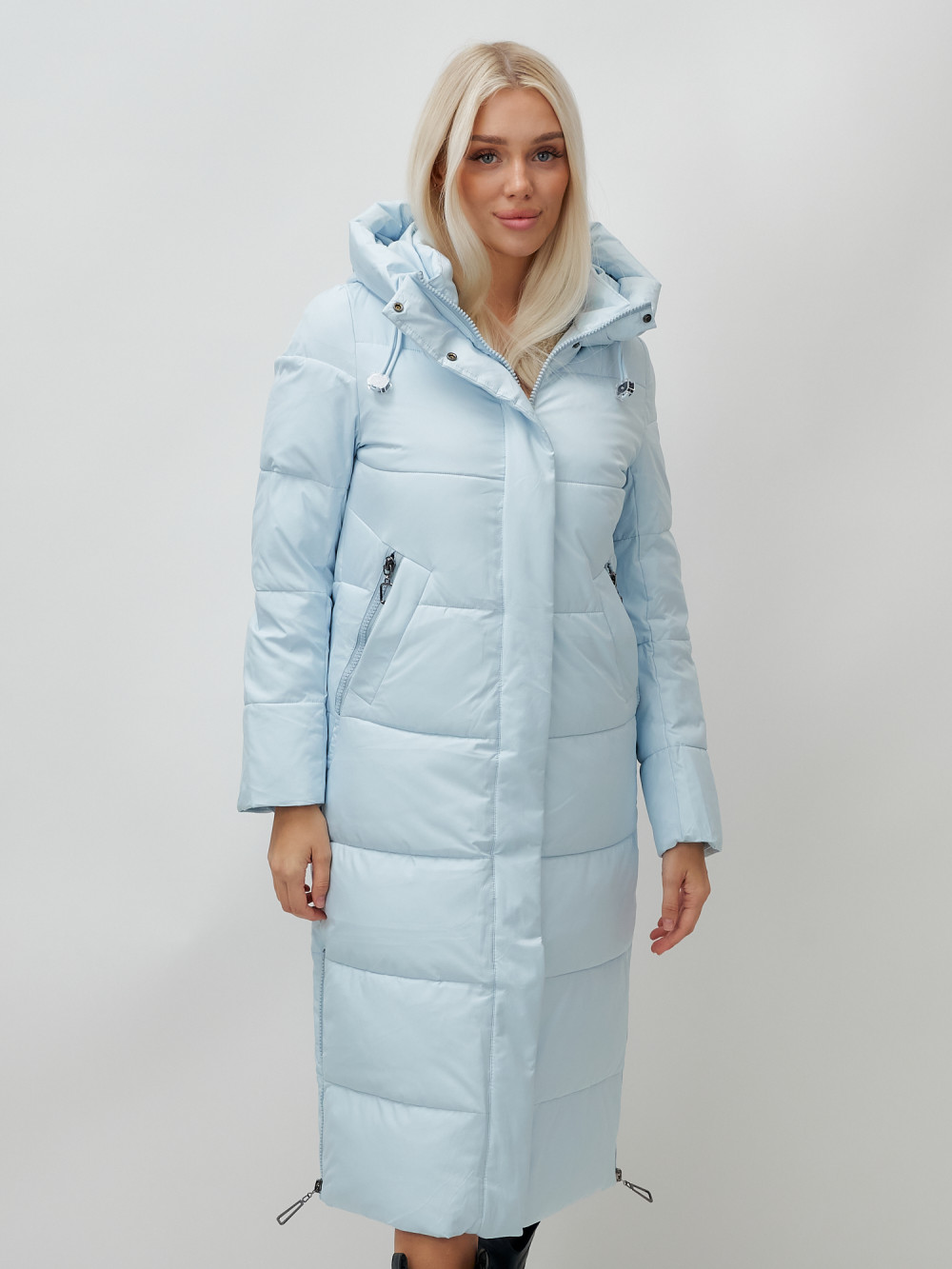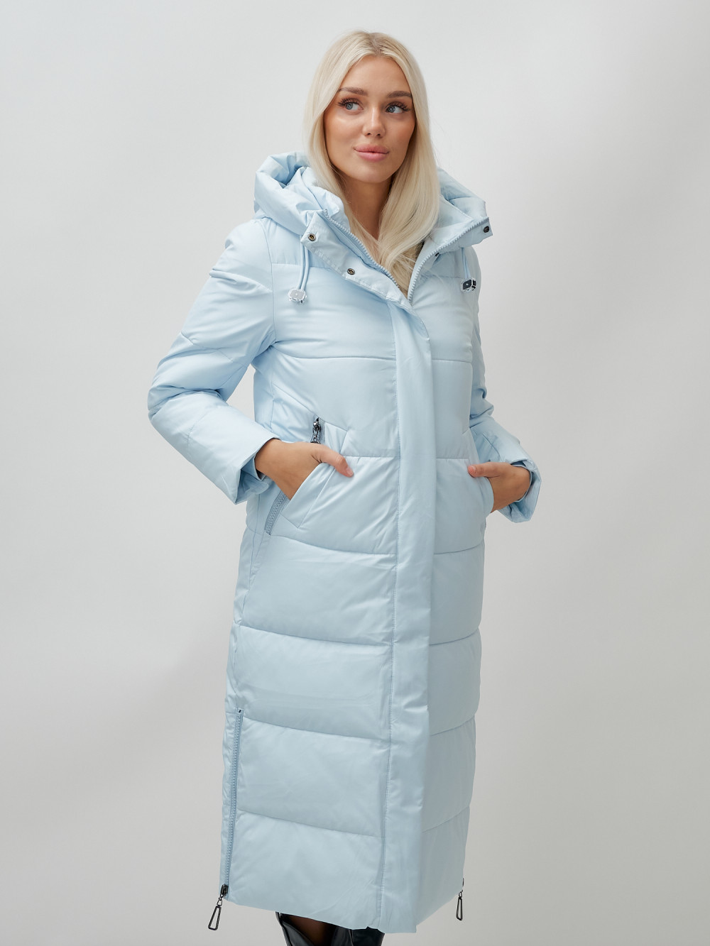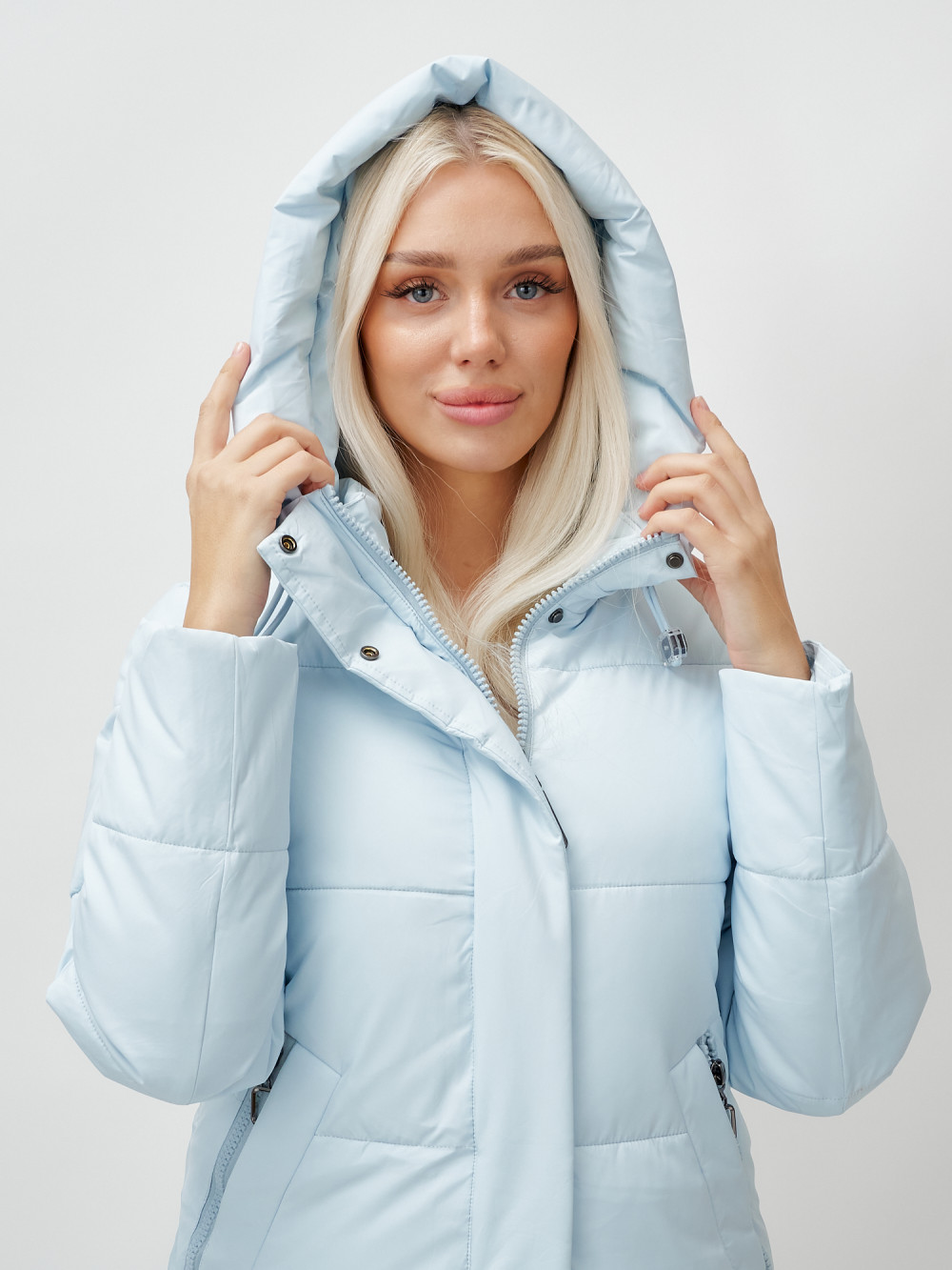 Пальто утепленное стеганное зимнее с капюшоном женское голубого цвета 9607Gl — MTFORCE