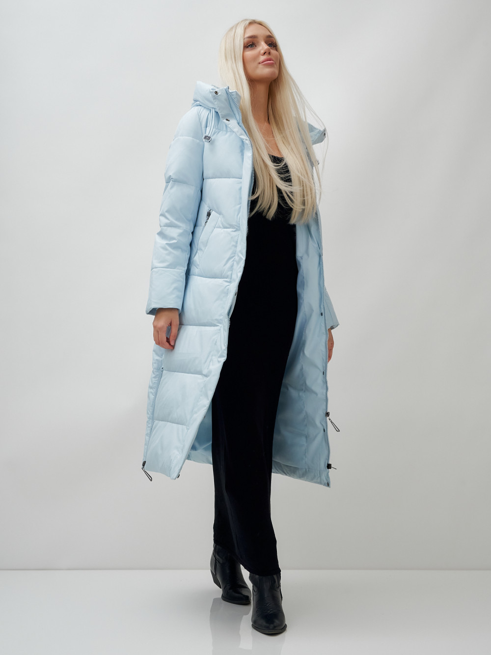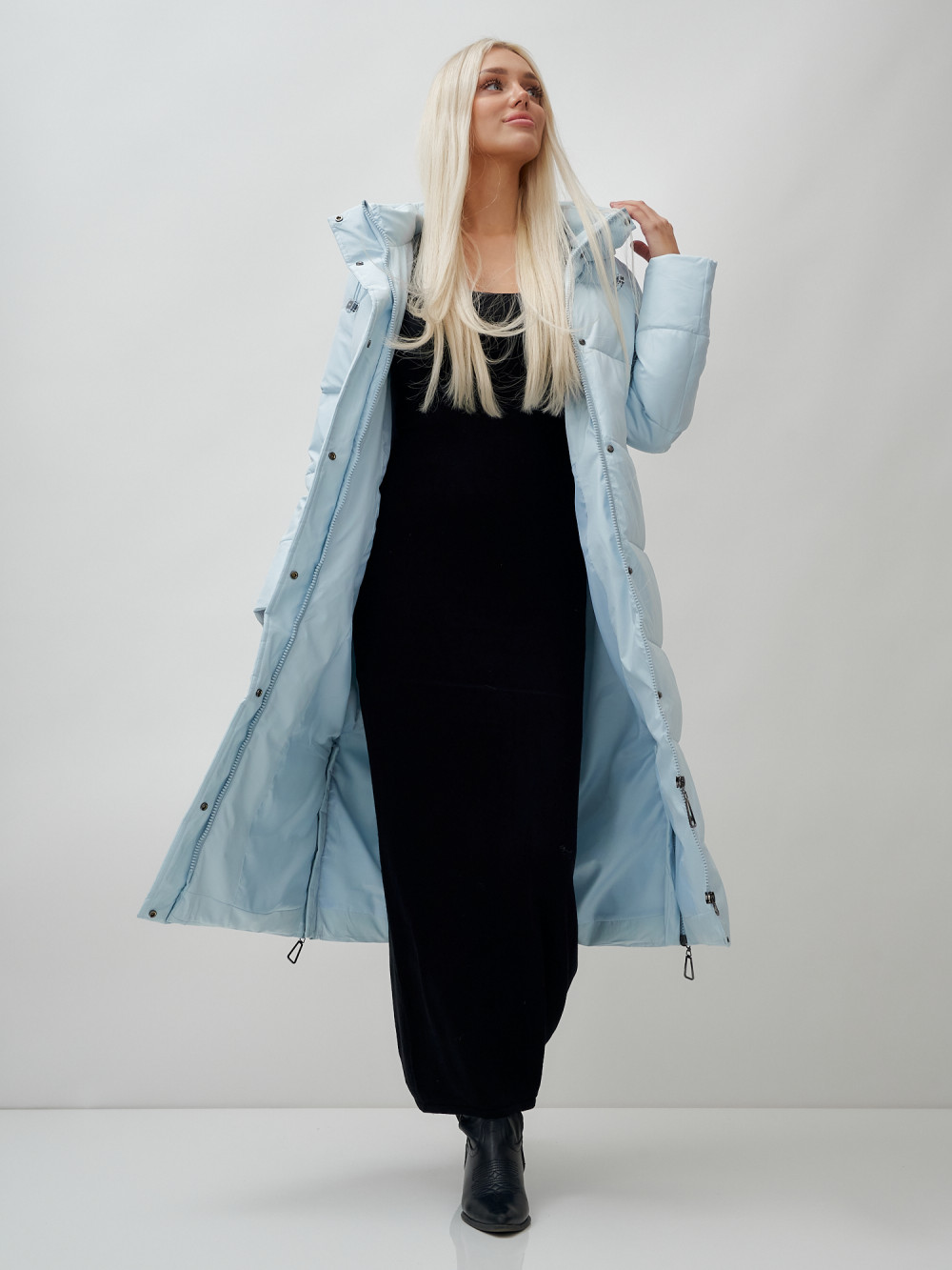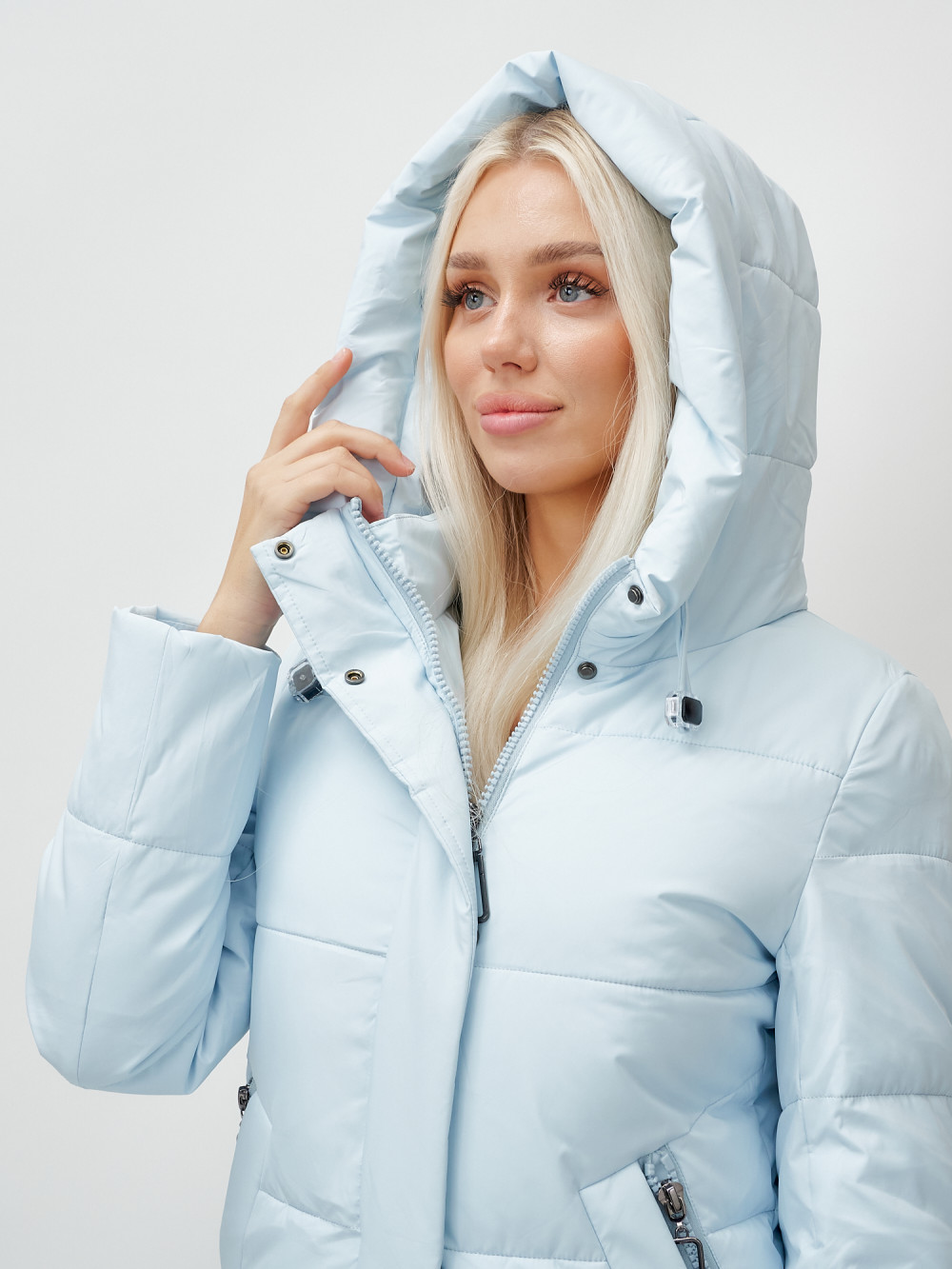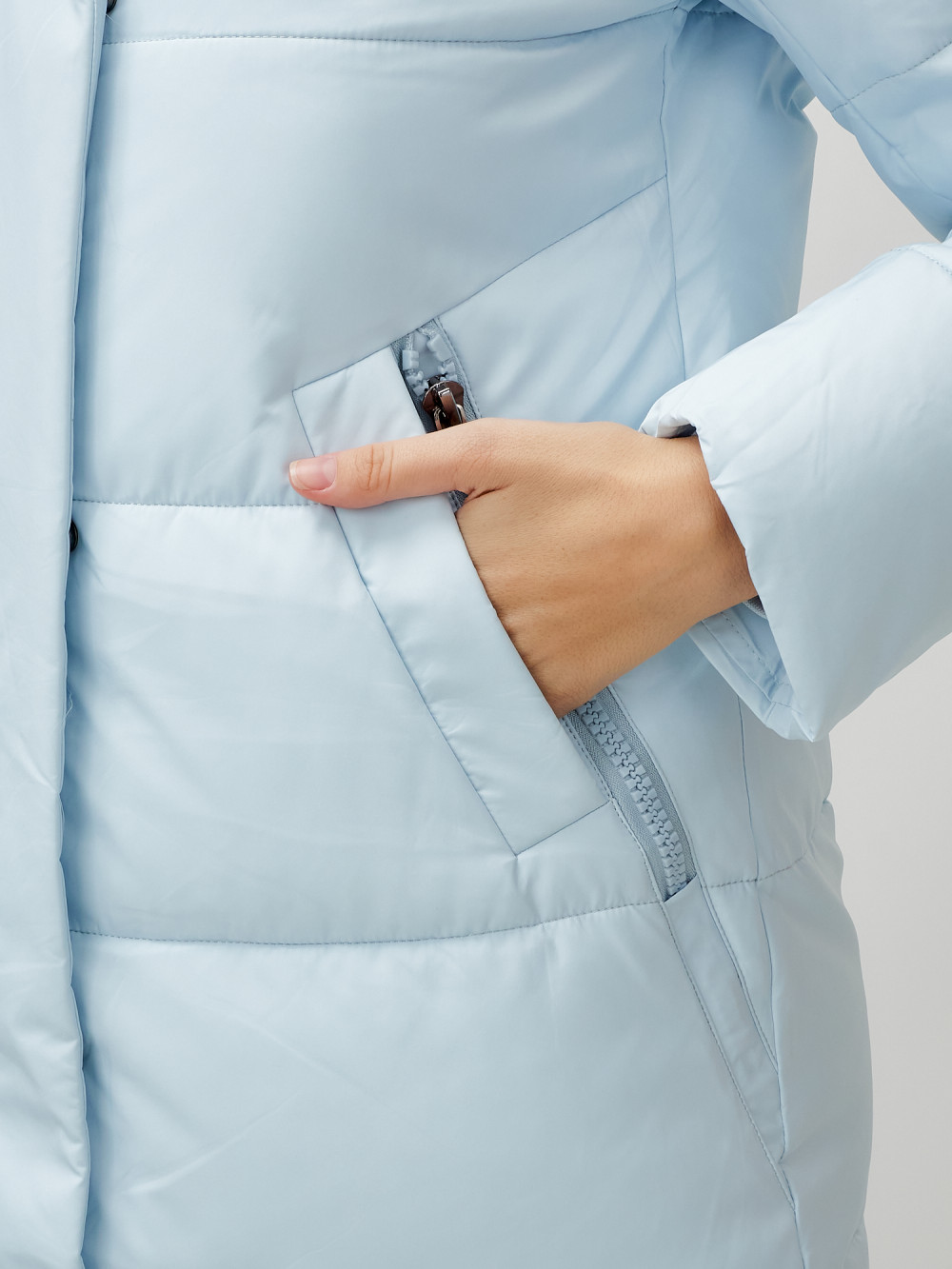 Пальто утепленное стеганное зимнее с капюшоном женское голубого цвета 9607Gl — MTFORCE