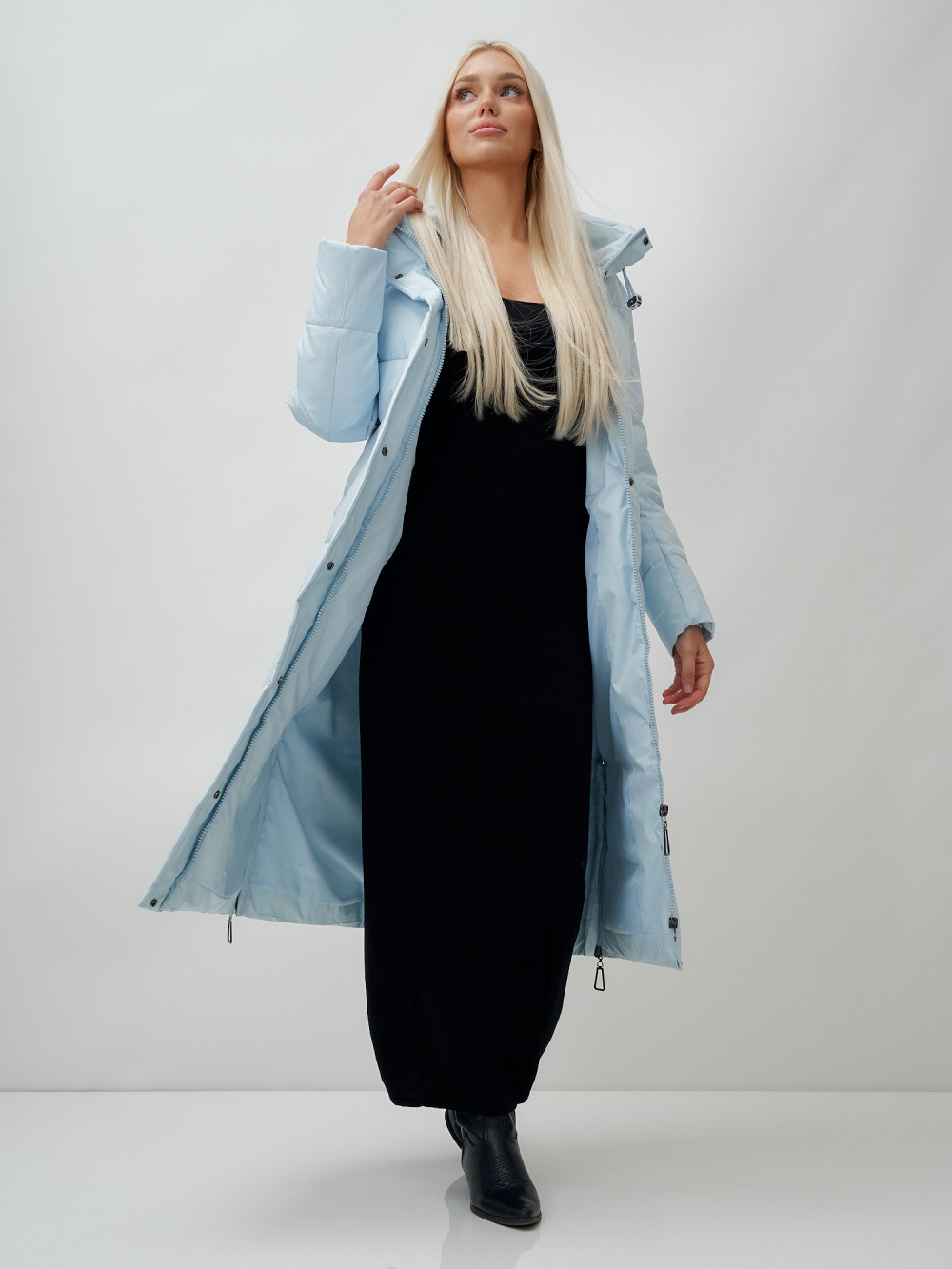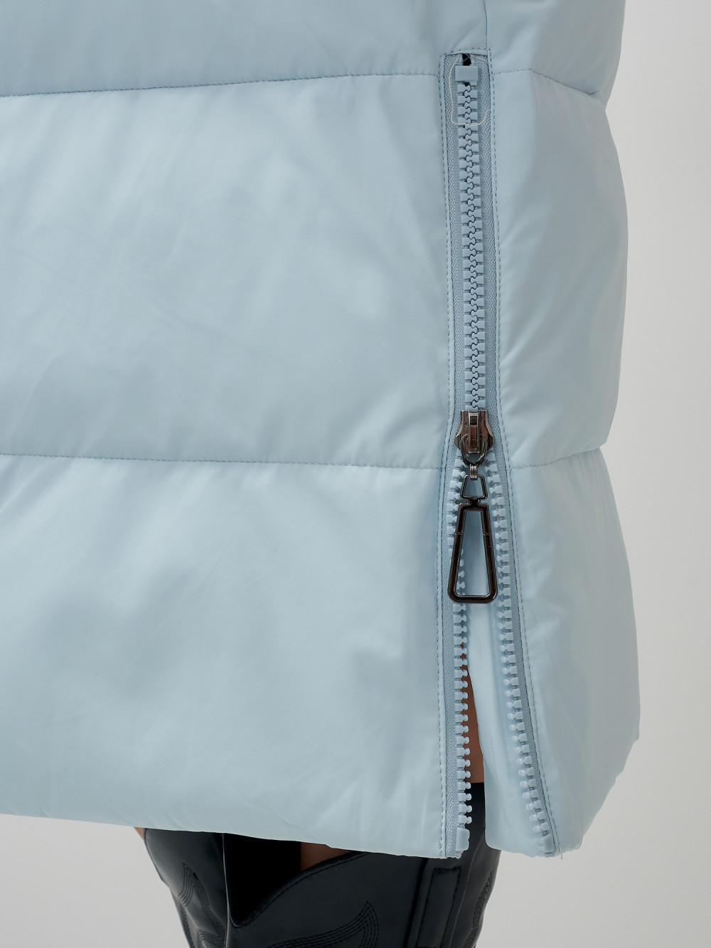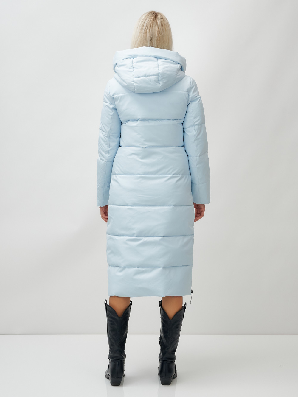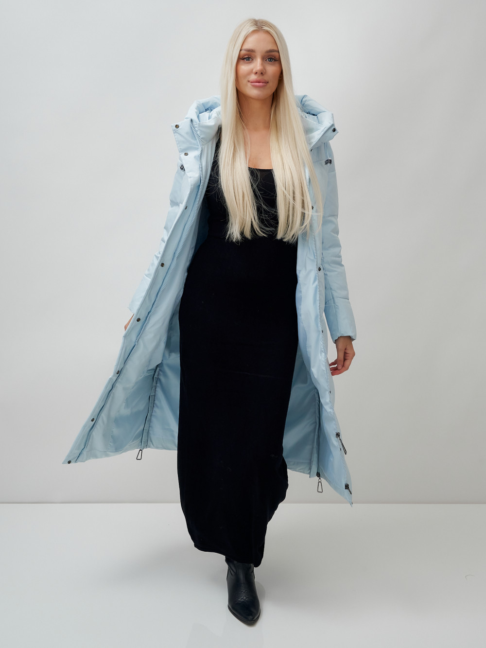 Пальто утепленное стеганное зимнее с капюшоном женское голубого цвета 9607Gl — MTFORCE