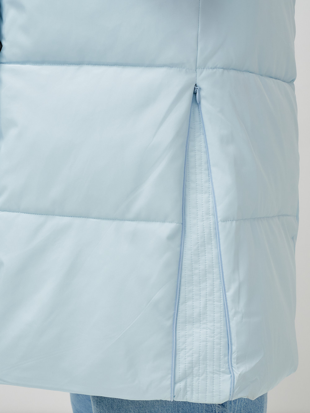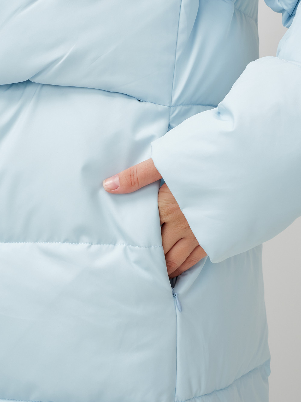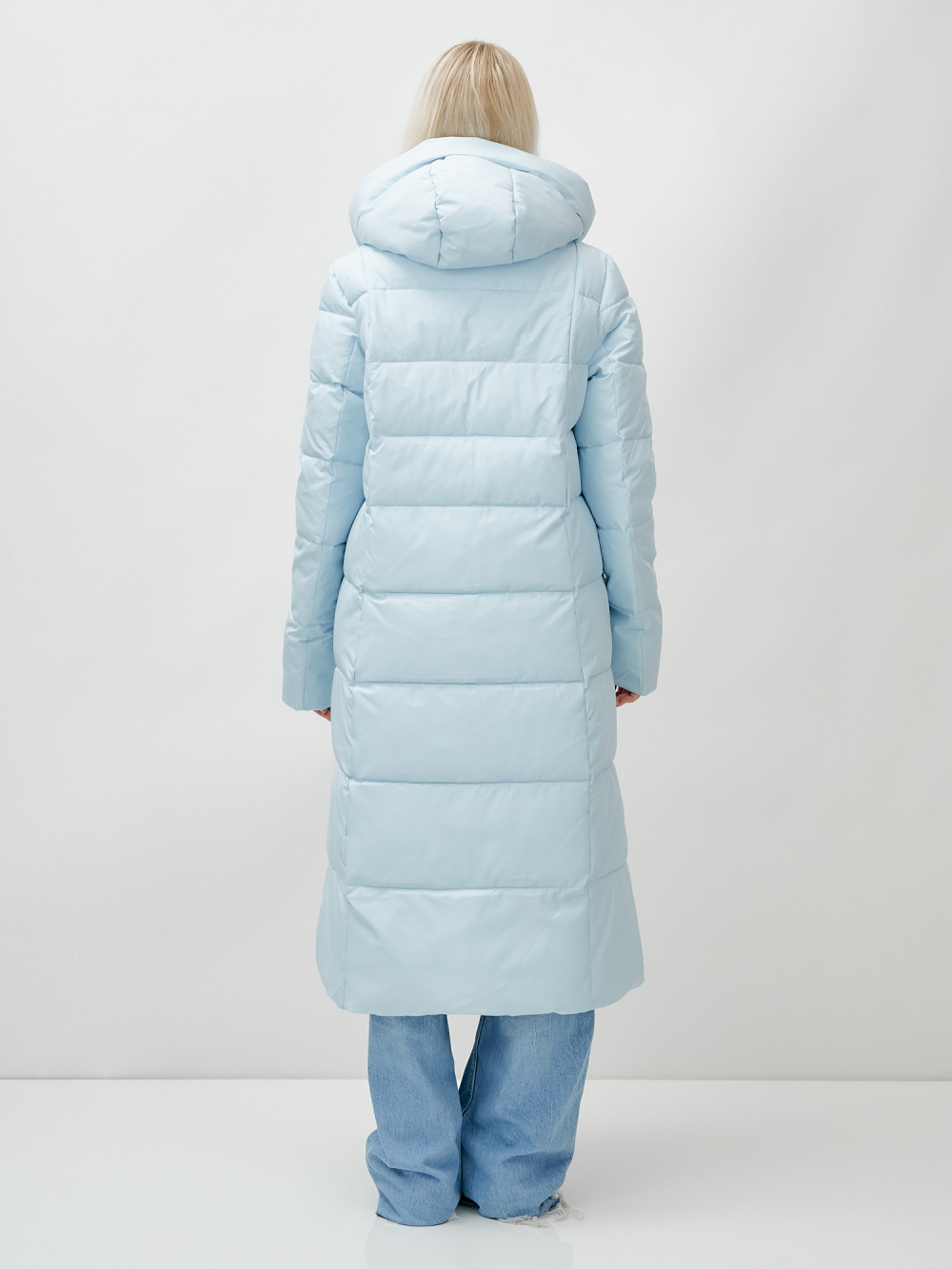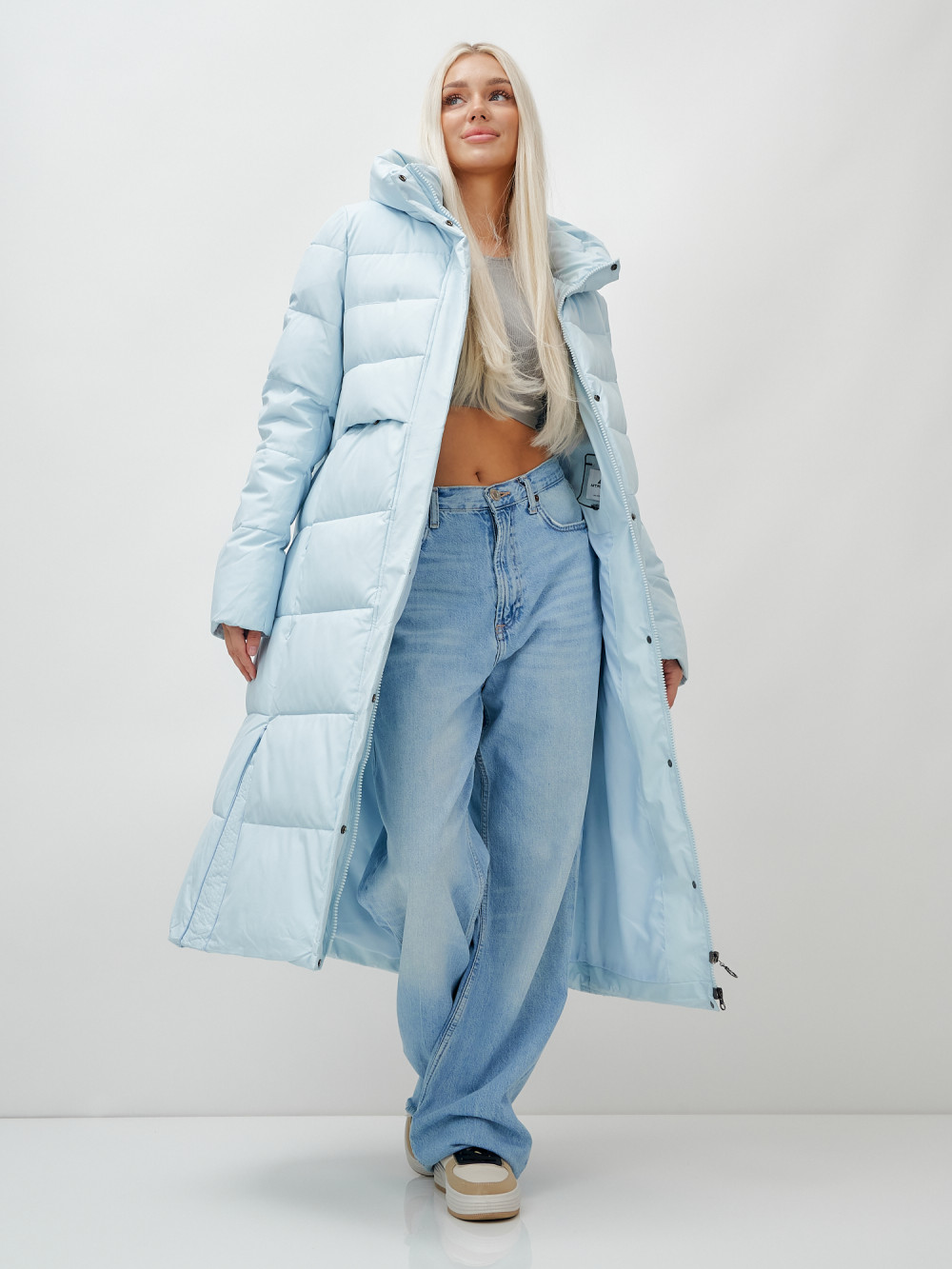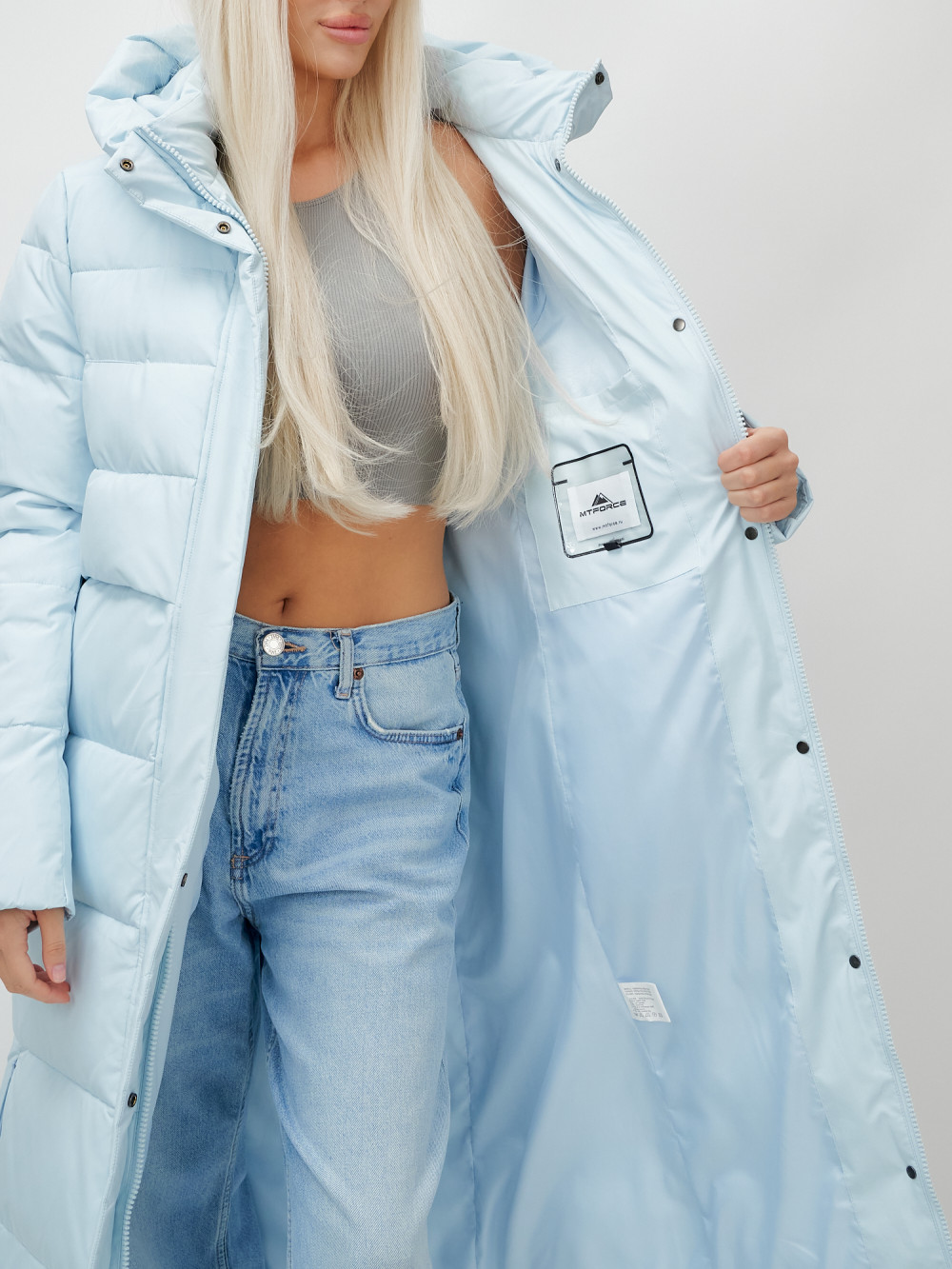 Пальто утепленное стеганное зимнее с капюшоном женское голубого цвета 9620Gl — MTFORCE