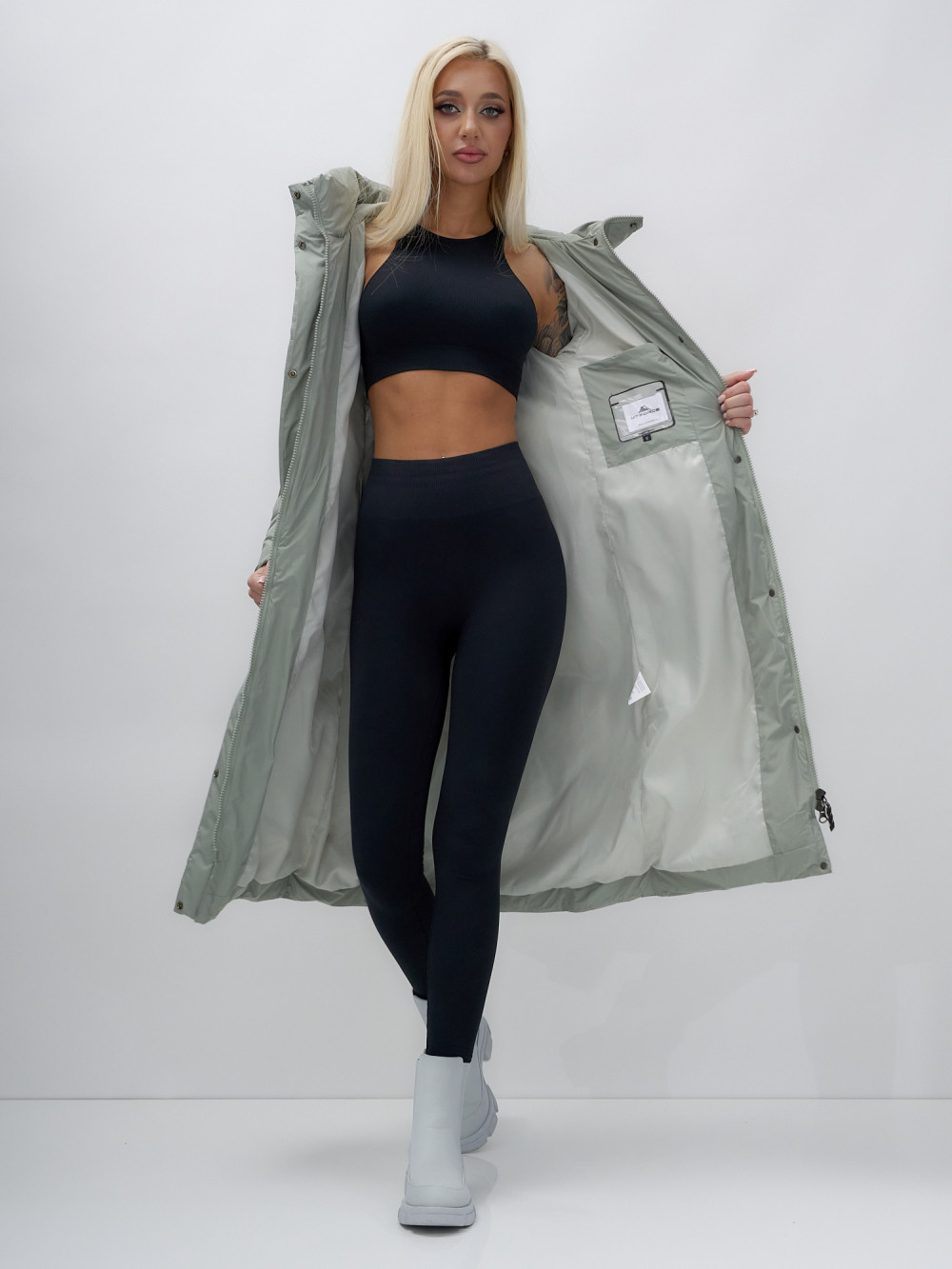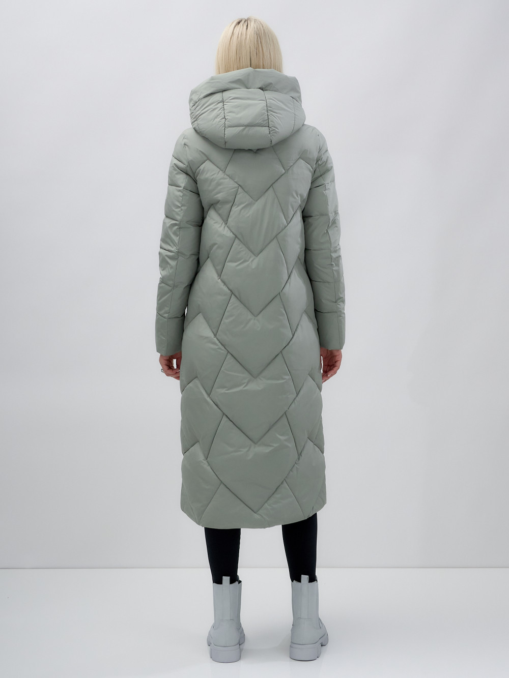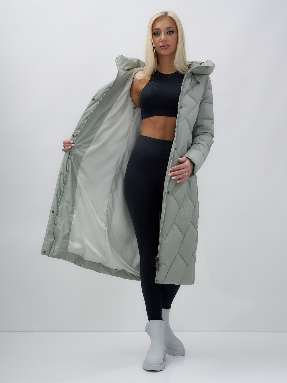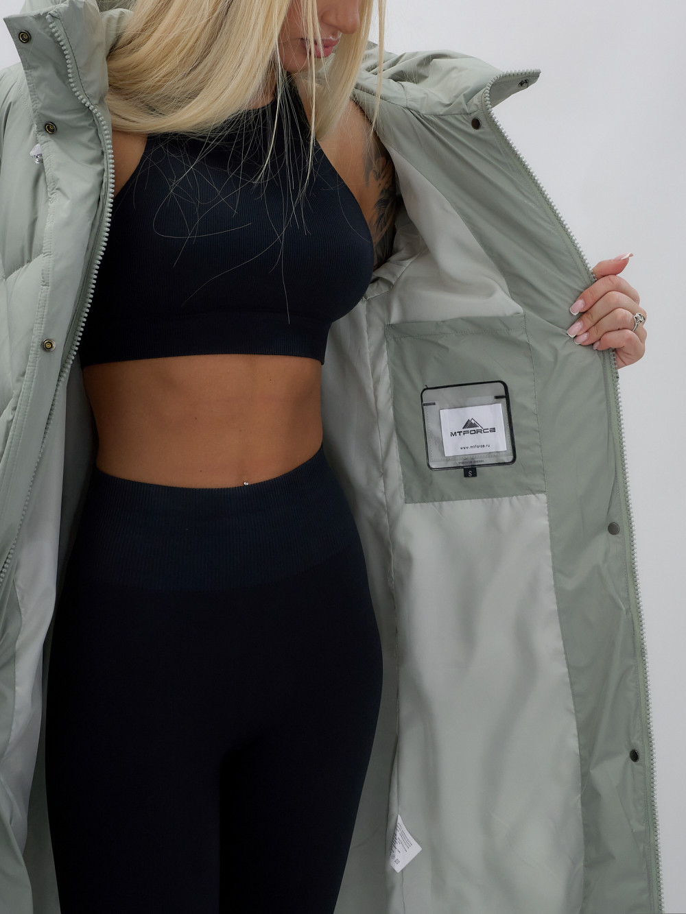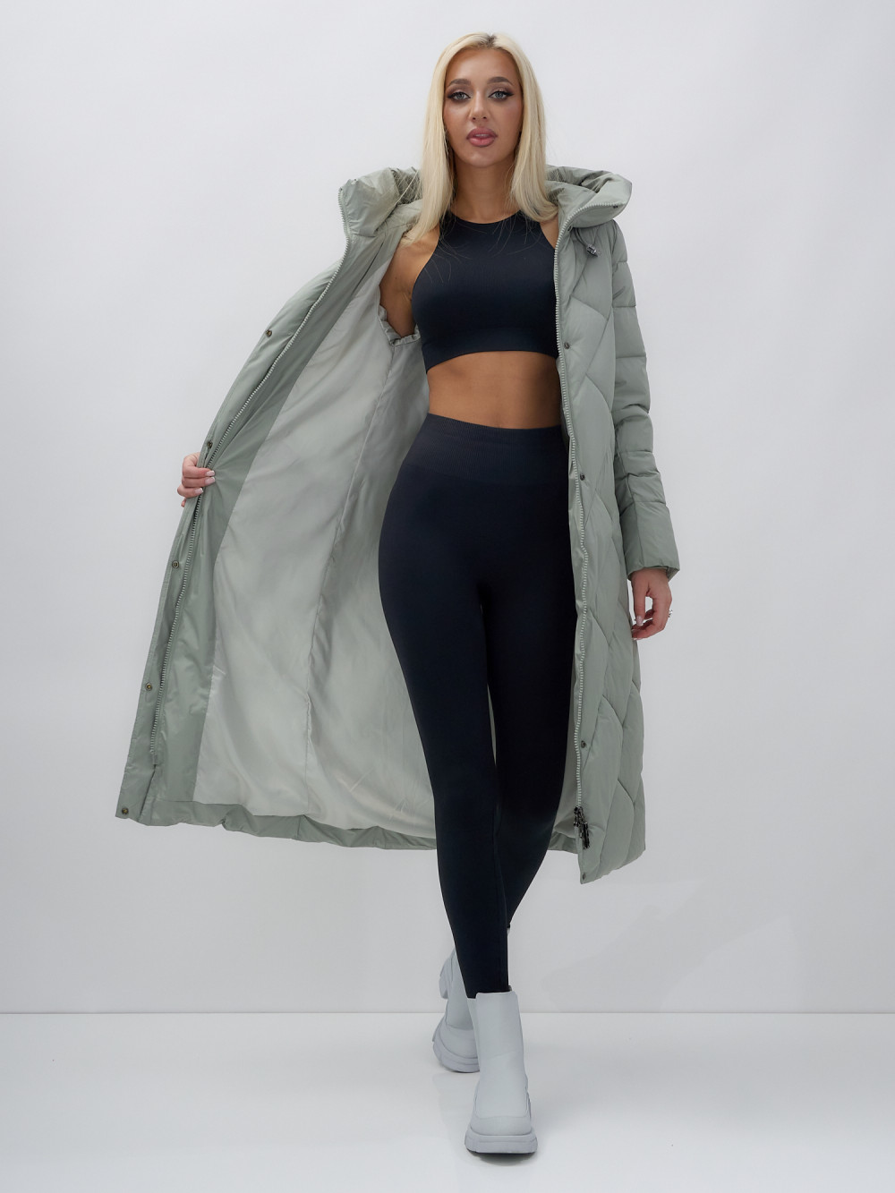 Пальто утепленное стеганное зимнее с капюшоном женское зеленого цвета 9612Z — MTFORCE
