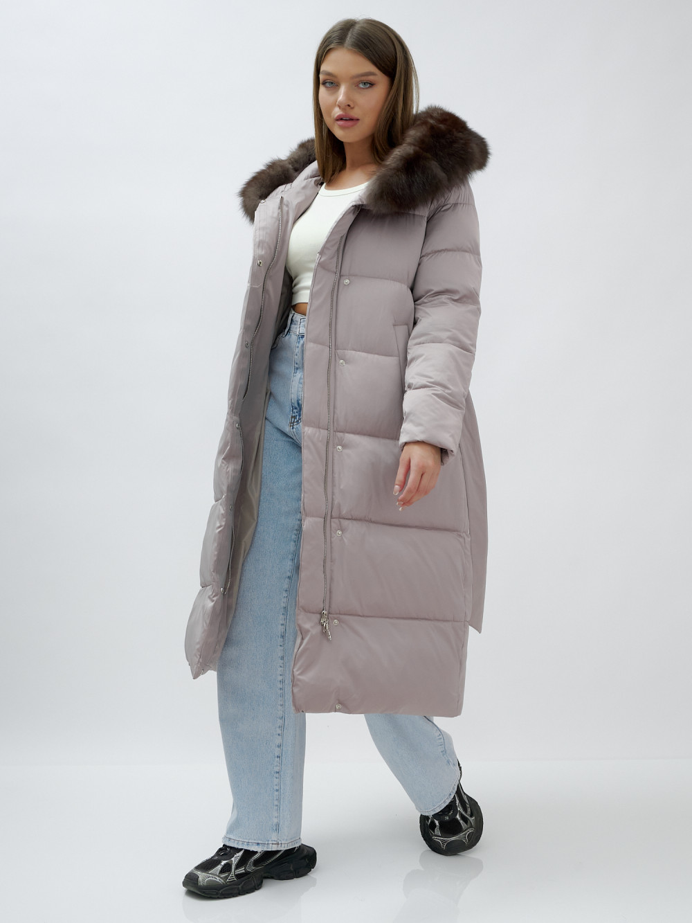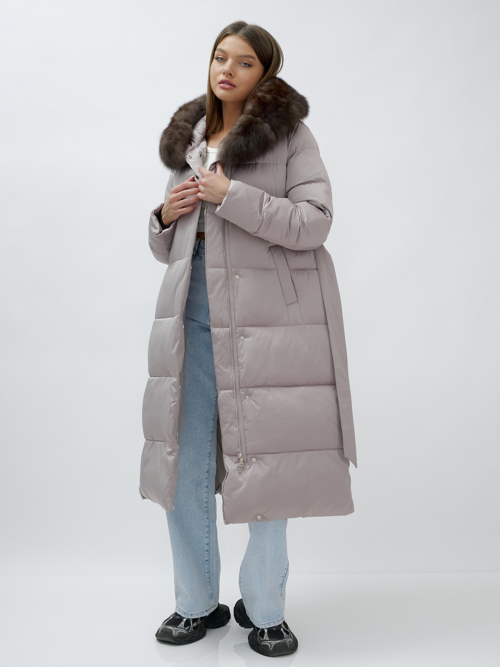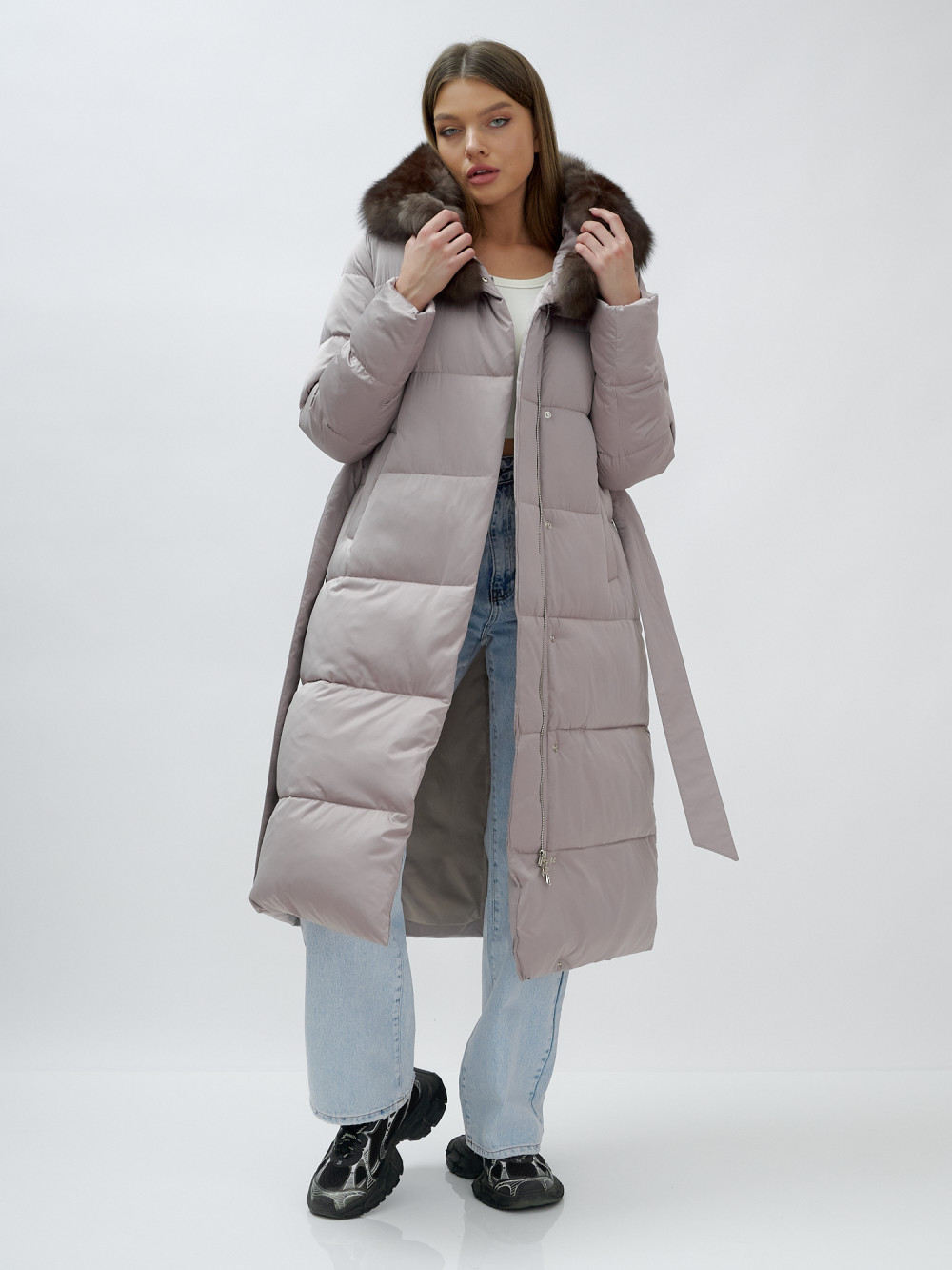 — Длина ниже колен: Защищает от зимних холодов, создавая стильный и утонченный силуэт.