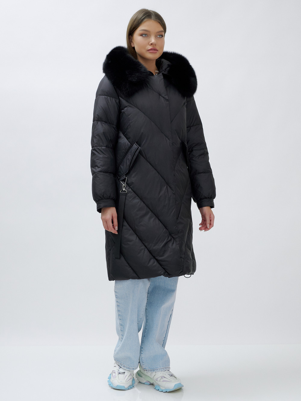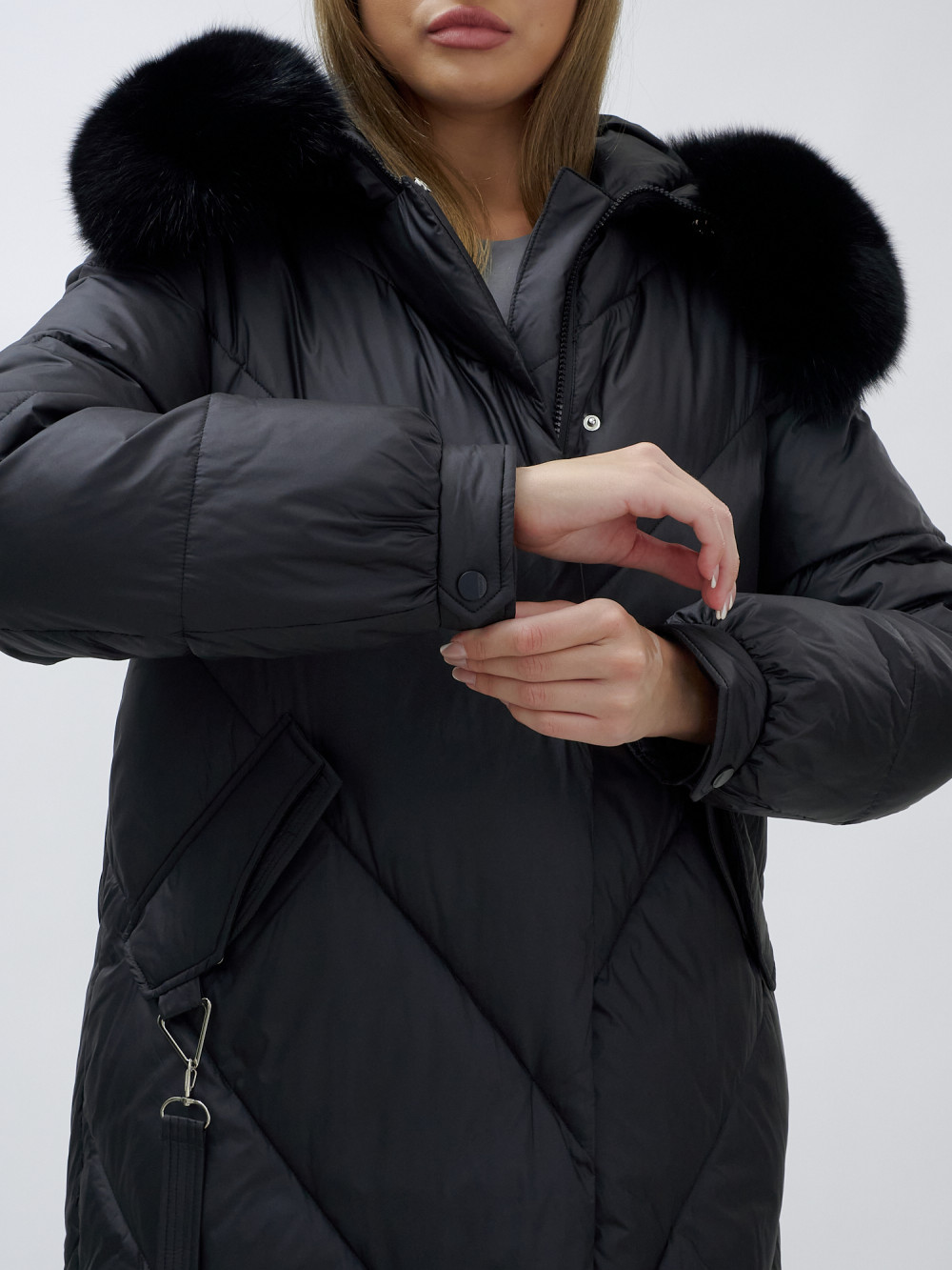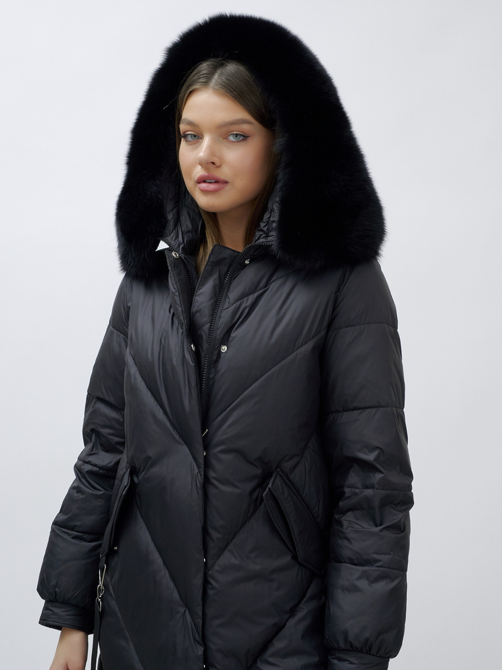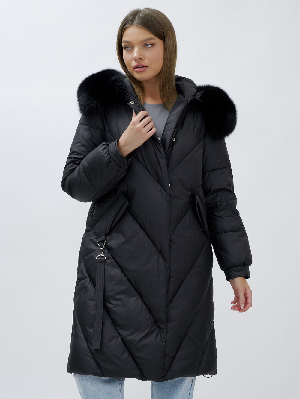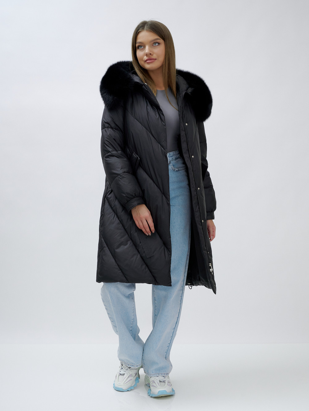 Пальто женское зимние с мехом песец люкс класса черного цвета 1316Ch — APNEEY