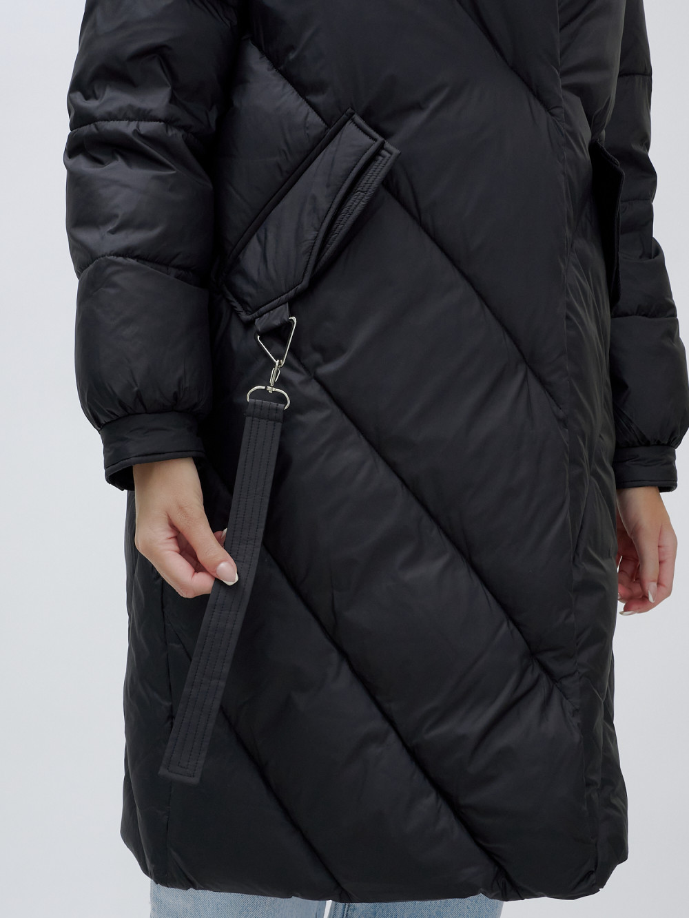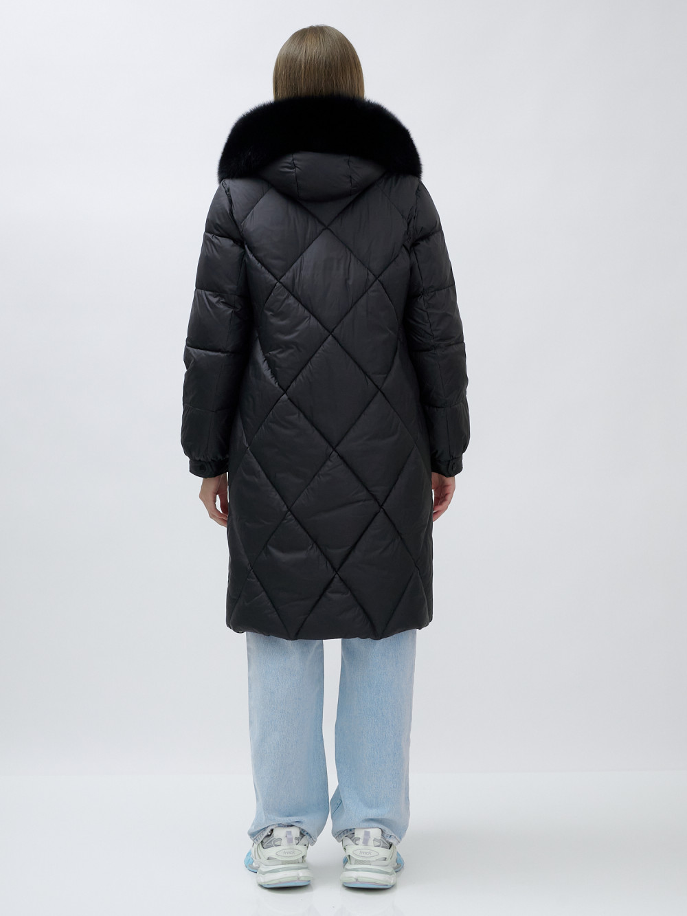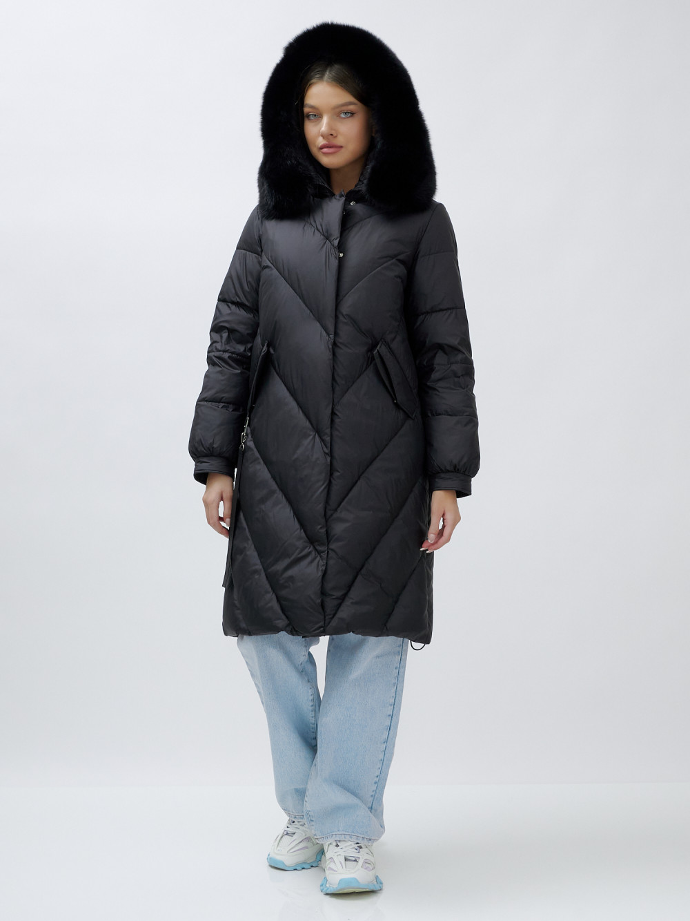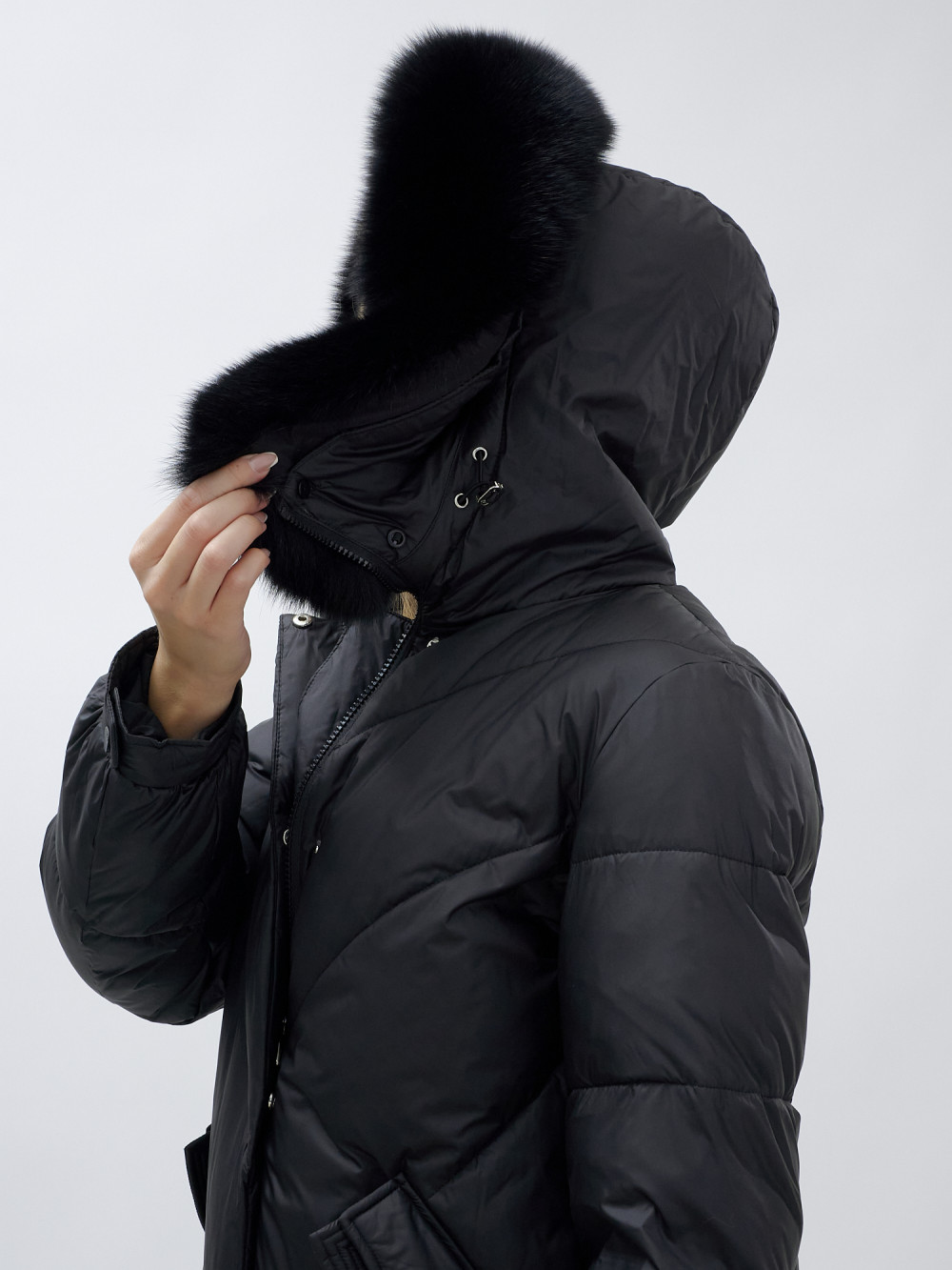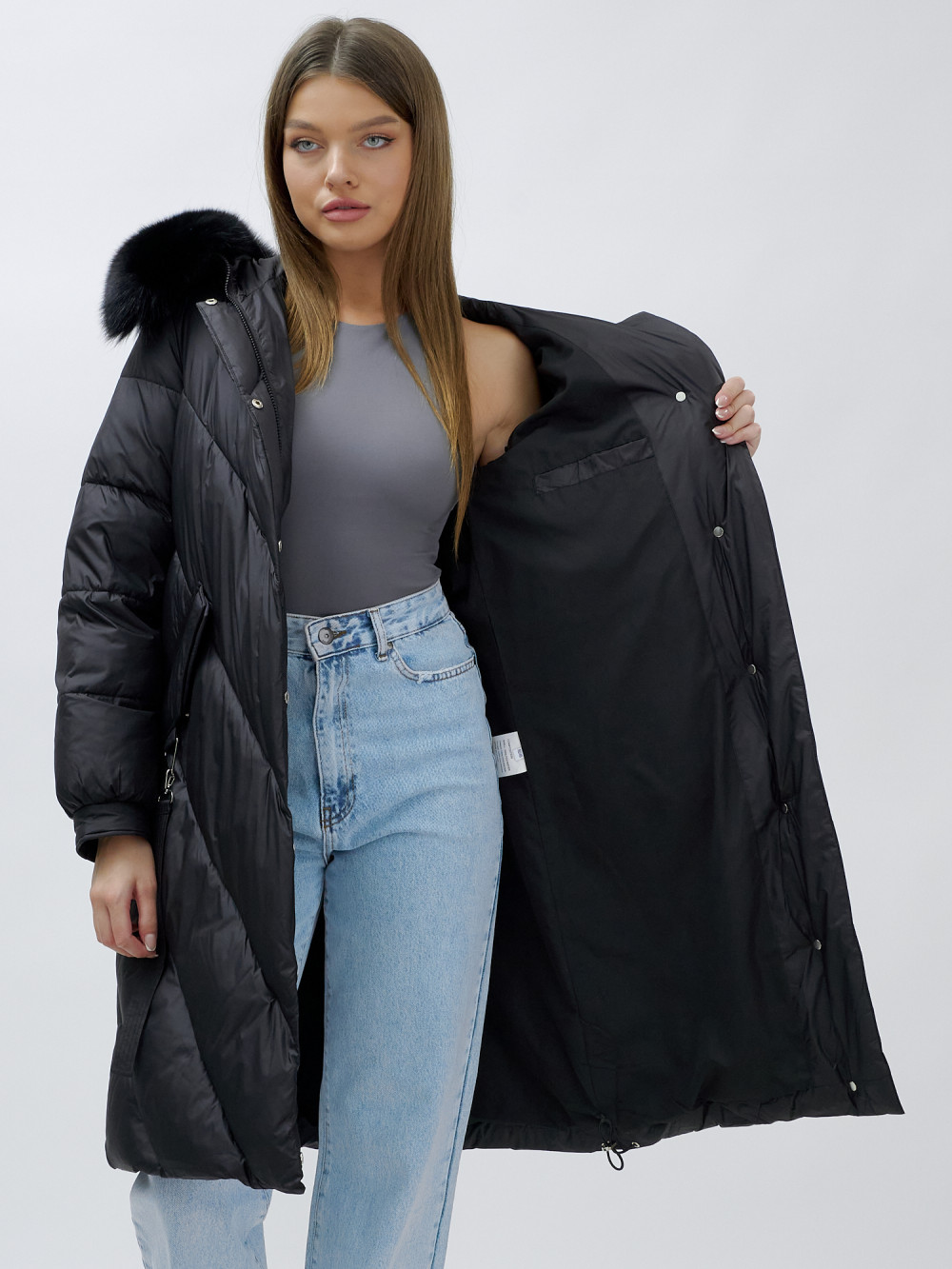 Пальто женское зимние с мехом песец люкс класса черного цвета 1316Ch — APNEEY