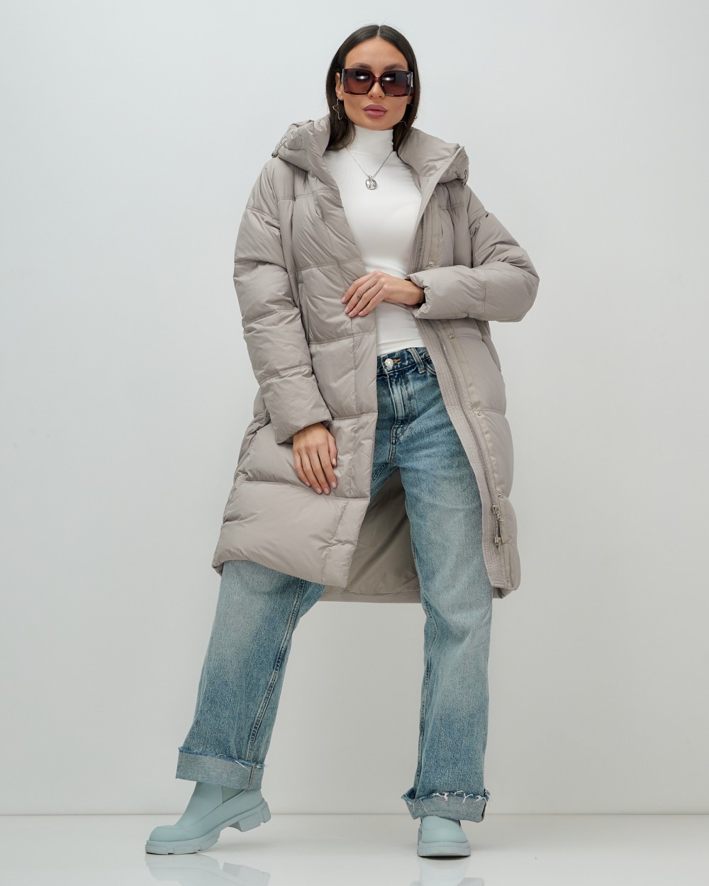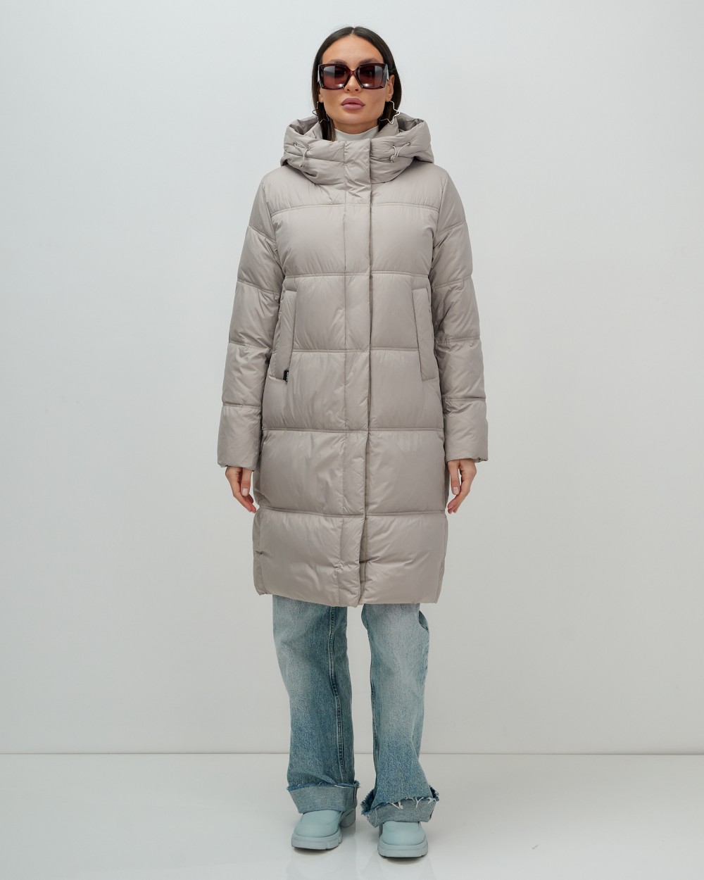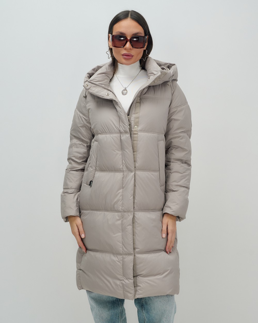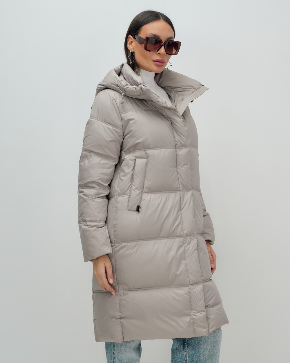 Пальто зимнее утепленное с капюшоном женское бежевого цвета 7618B — Visdeer