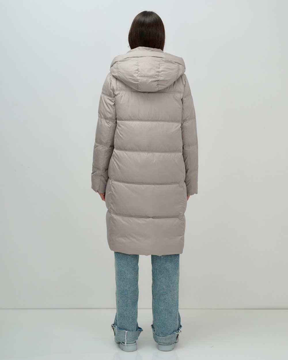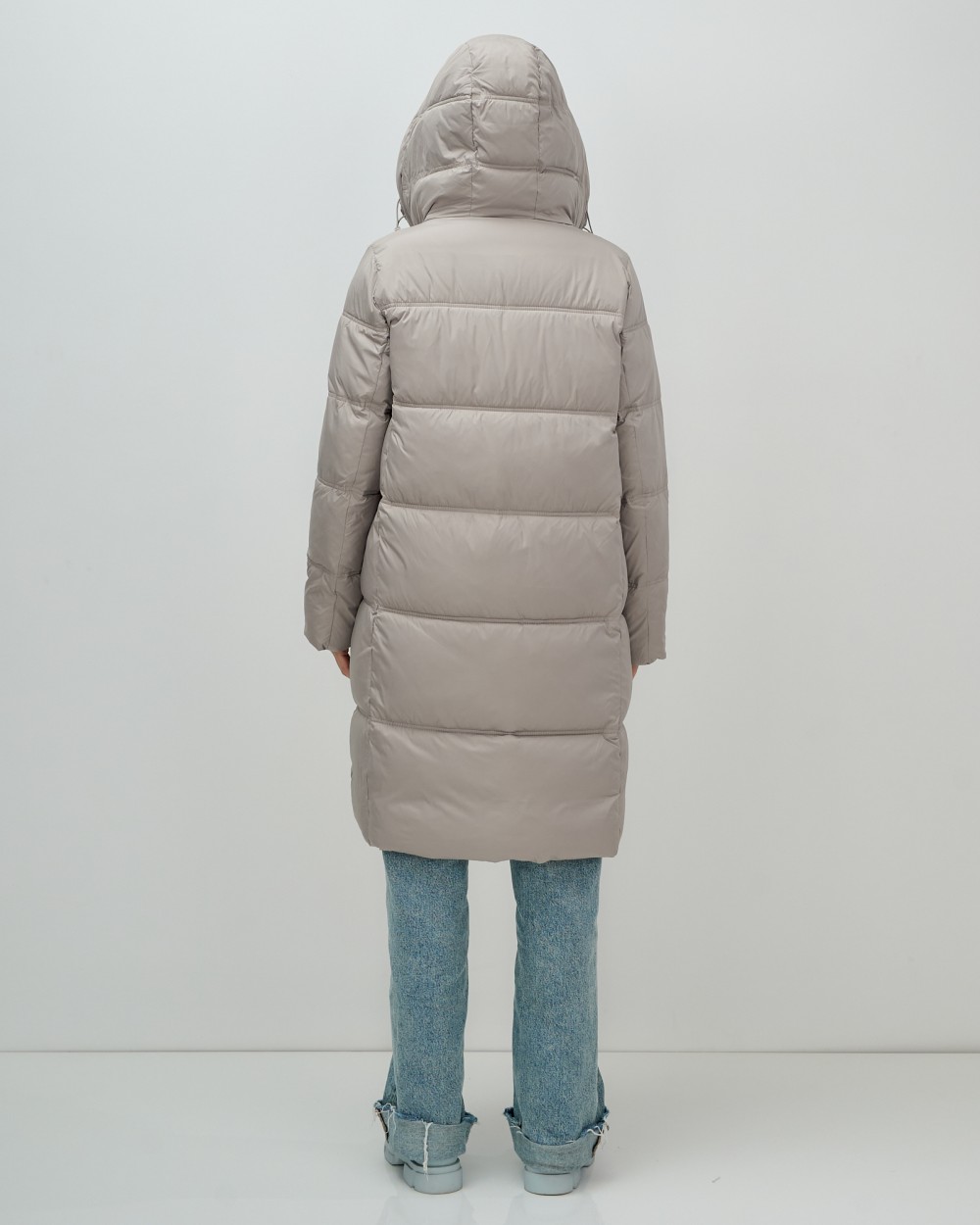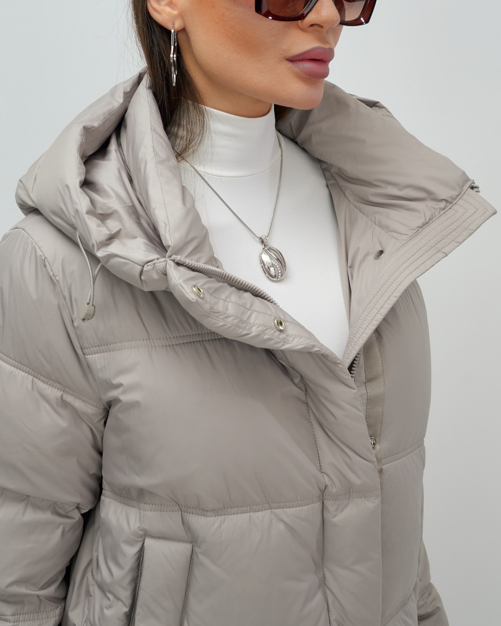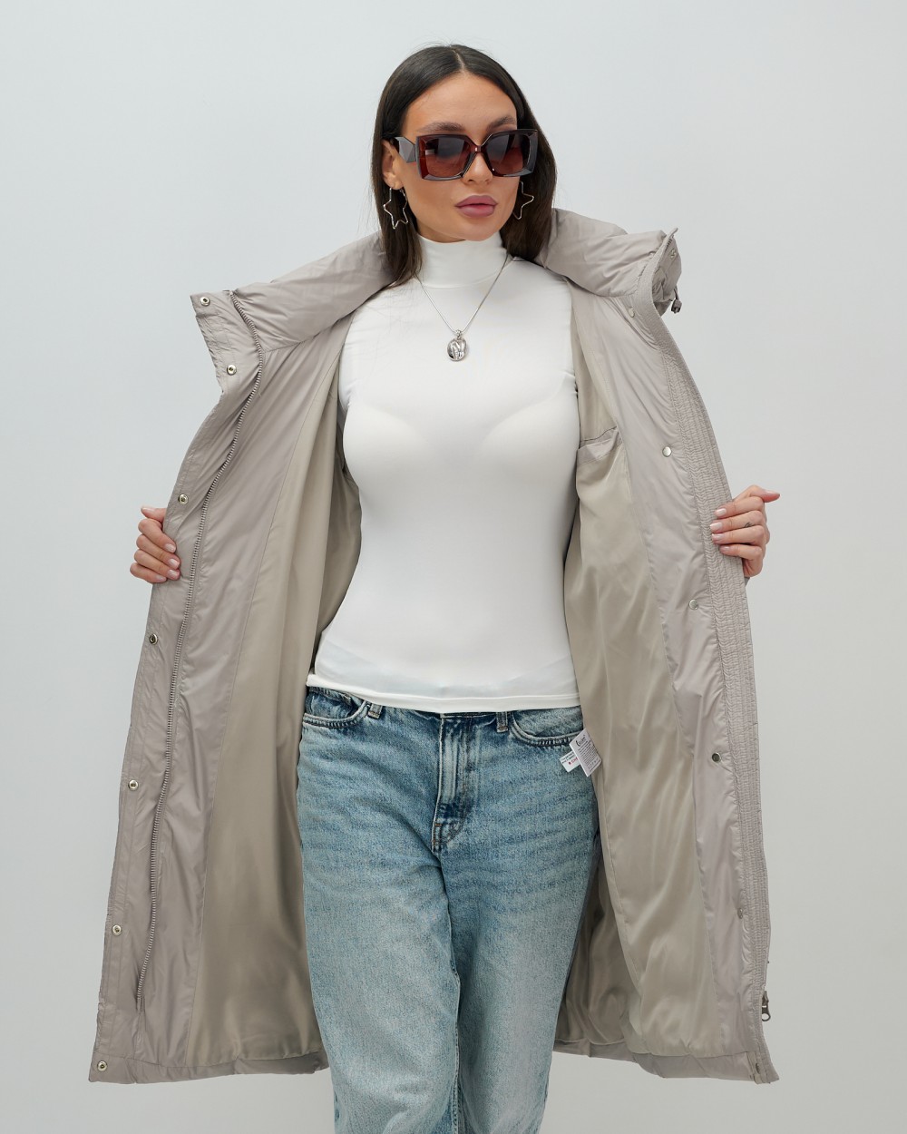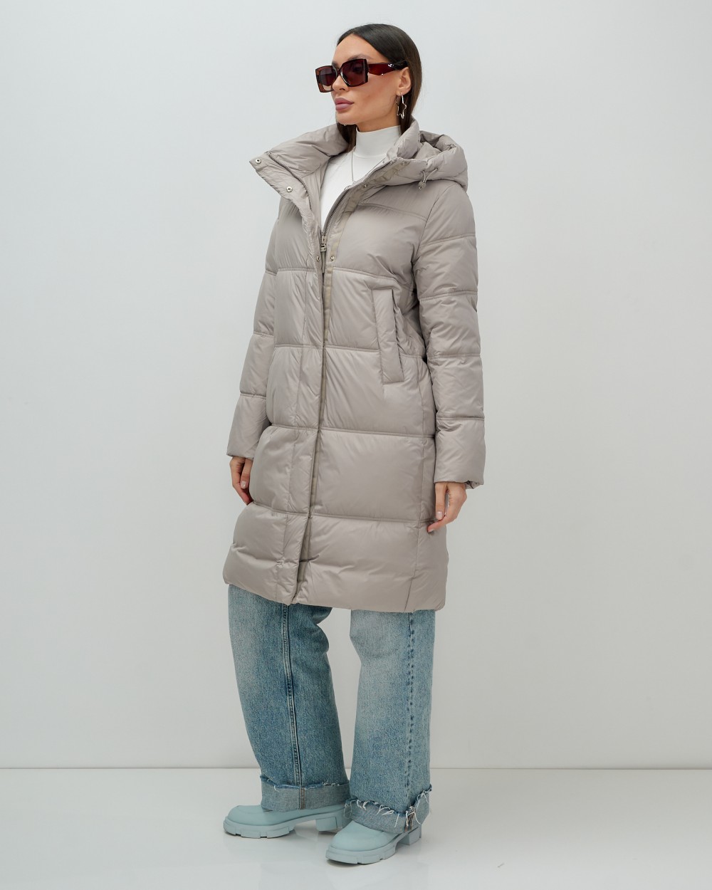 Пальто зимнее утепленное с капюшоном женское бежевого цвета 7618B — Visdeer
