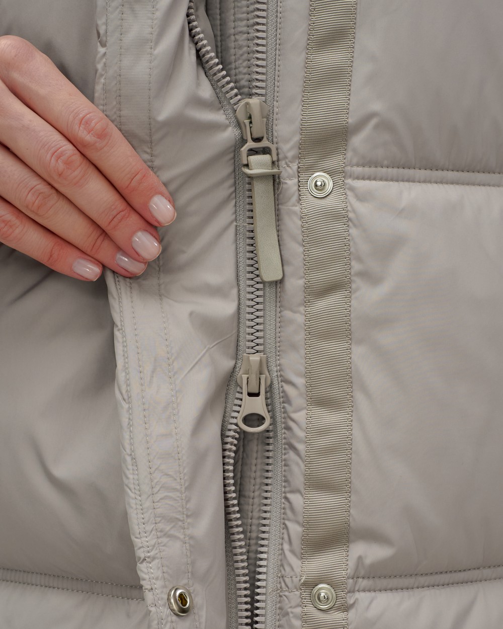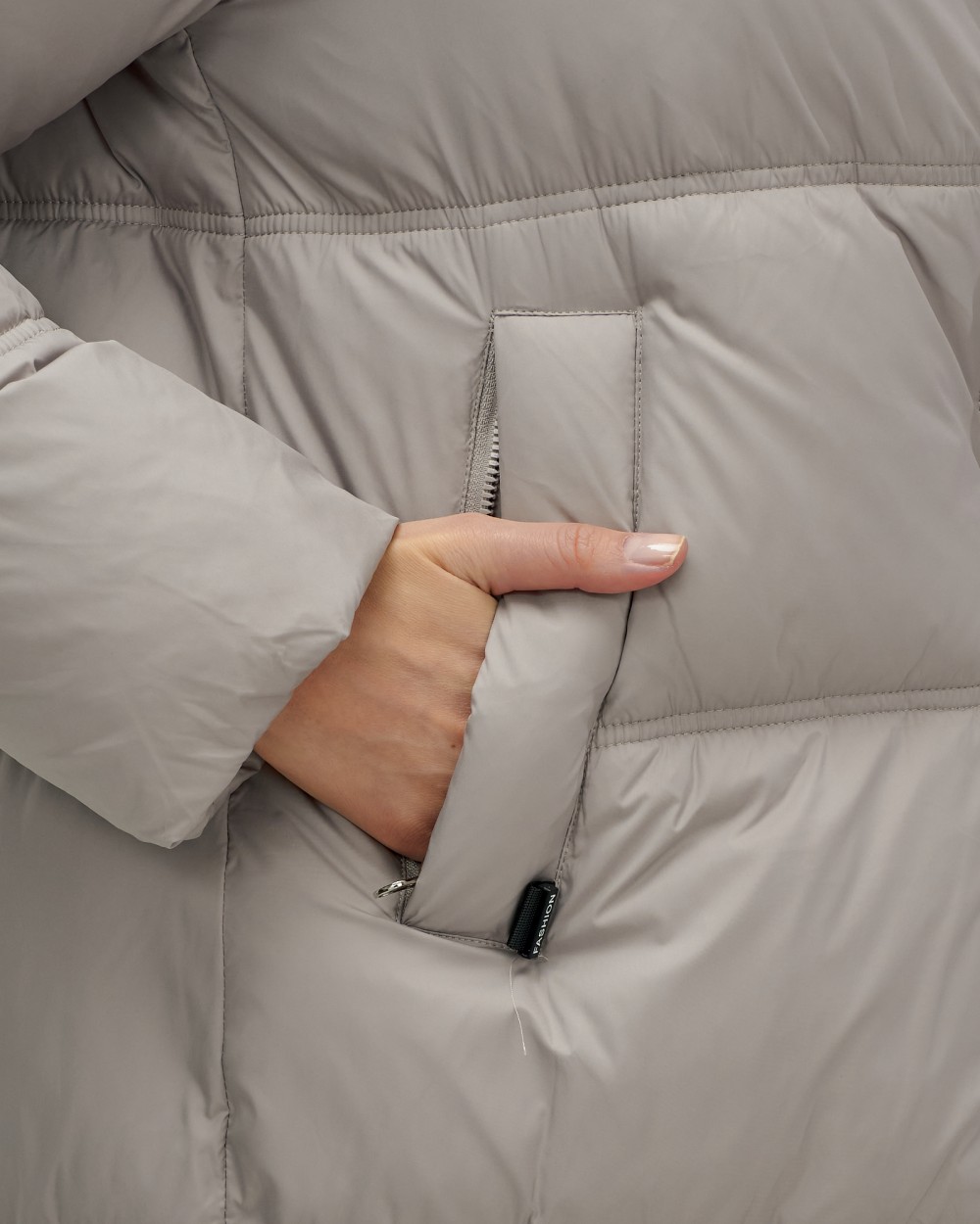 Элегантный покрой с удлиненной длиной до колена и стильным капюшоном с фиксатором придают этому пальто утонченный вид, что делает его идеальным вариантом как для офиса, так и для повседневной жизни. Внутренние карманы добавляют практичности, а двойная молния и кнопки с клапаном подчеркивают современный стиль.