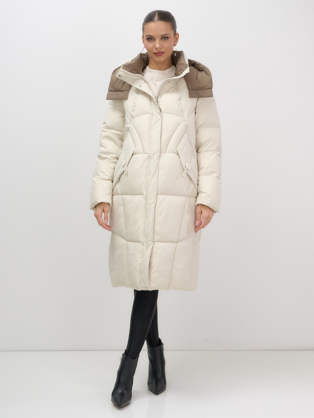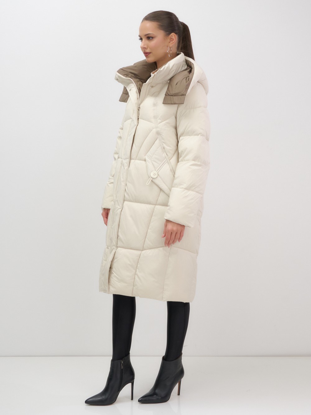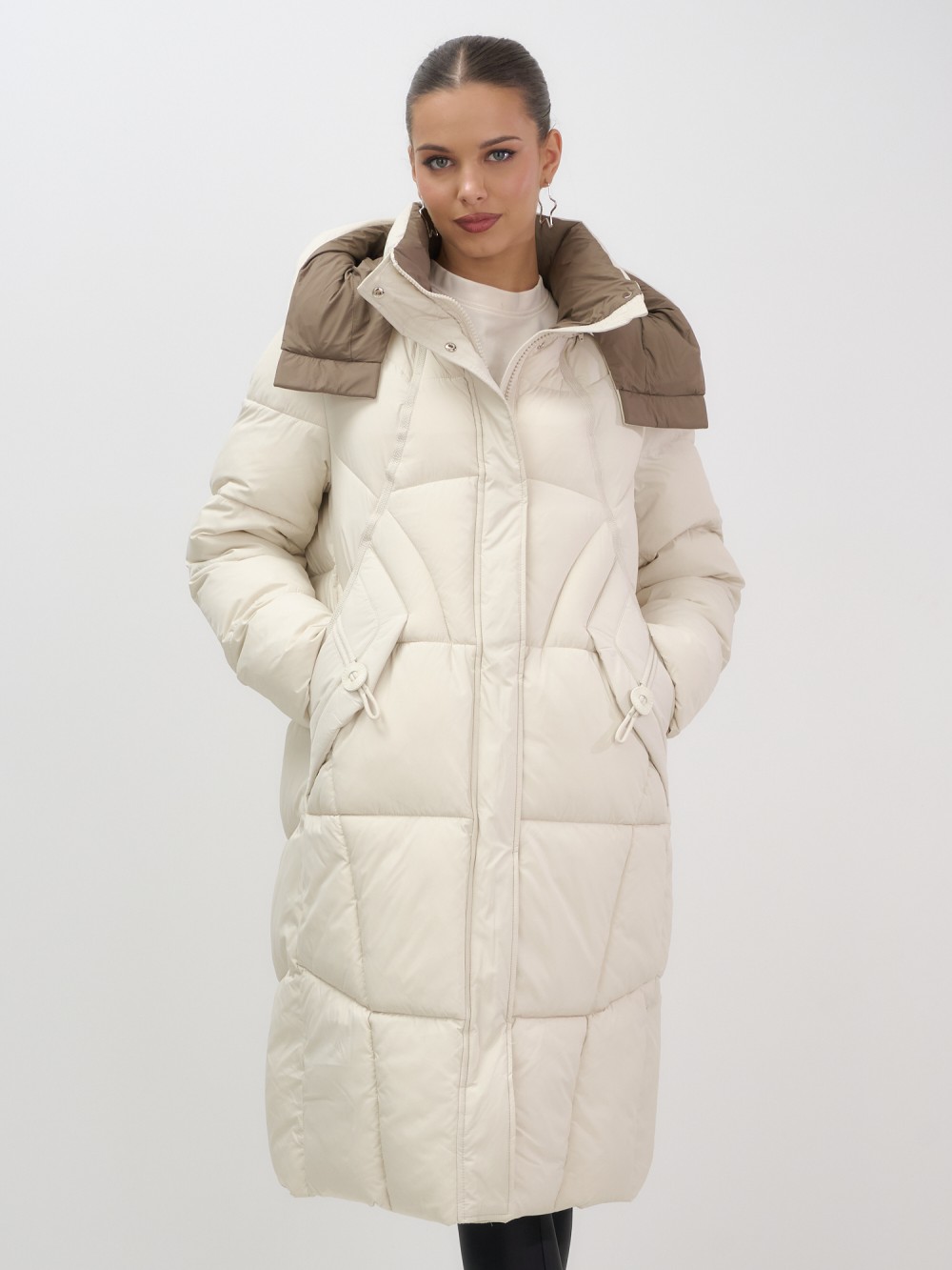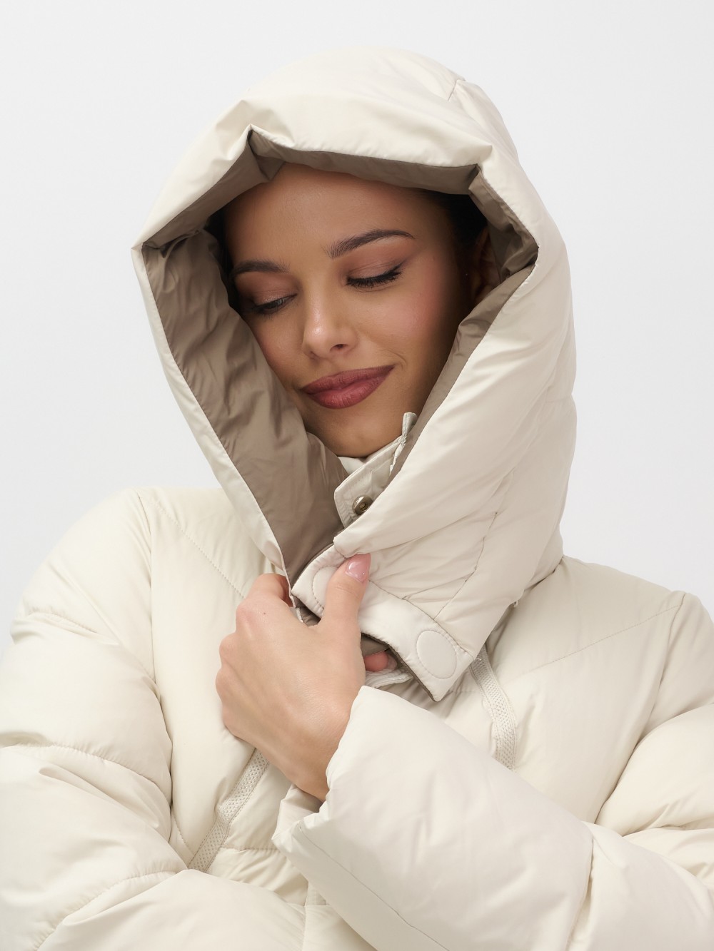 Пальто зимнее утепленное с капюшоном женское бежевого цвета 7709B — Visdeer
