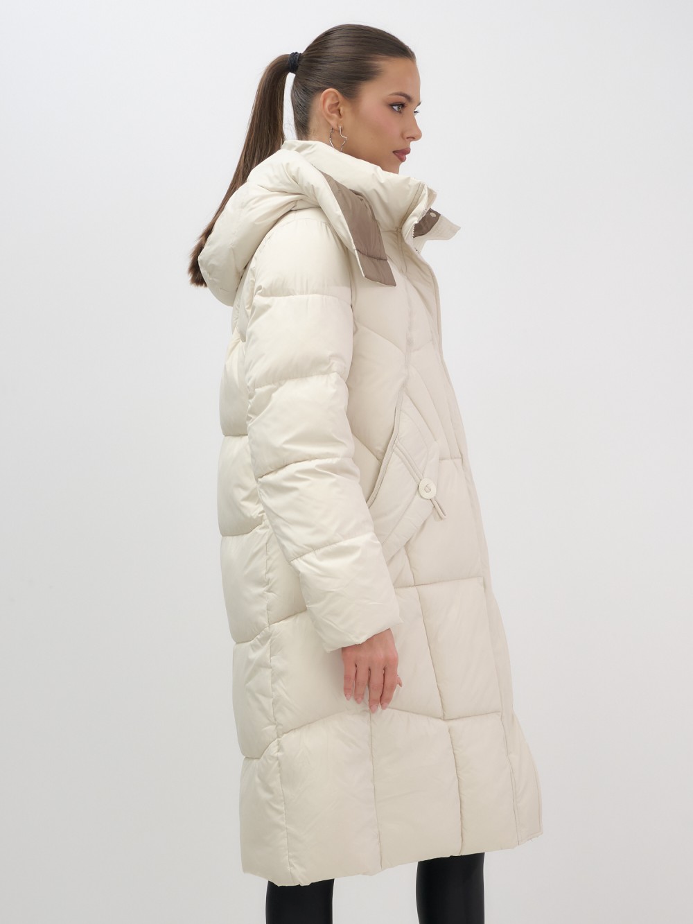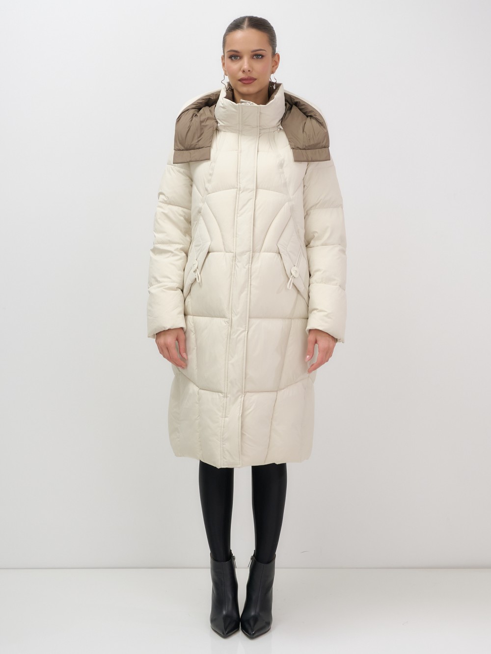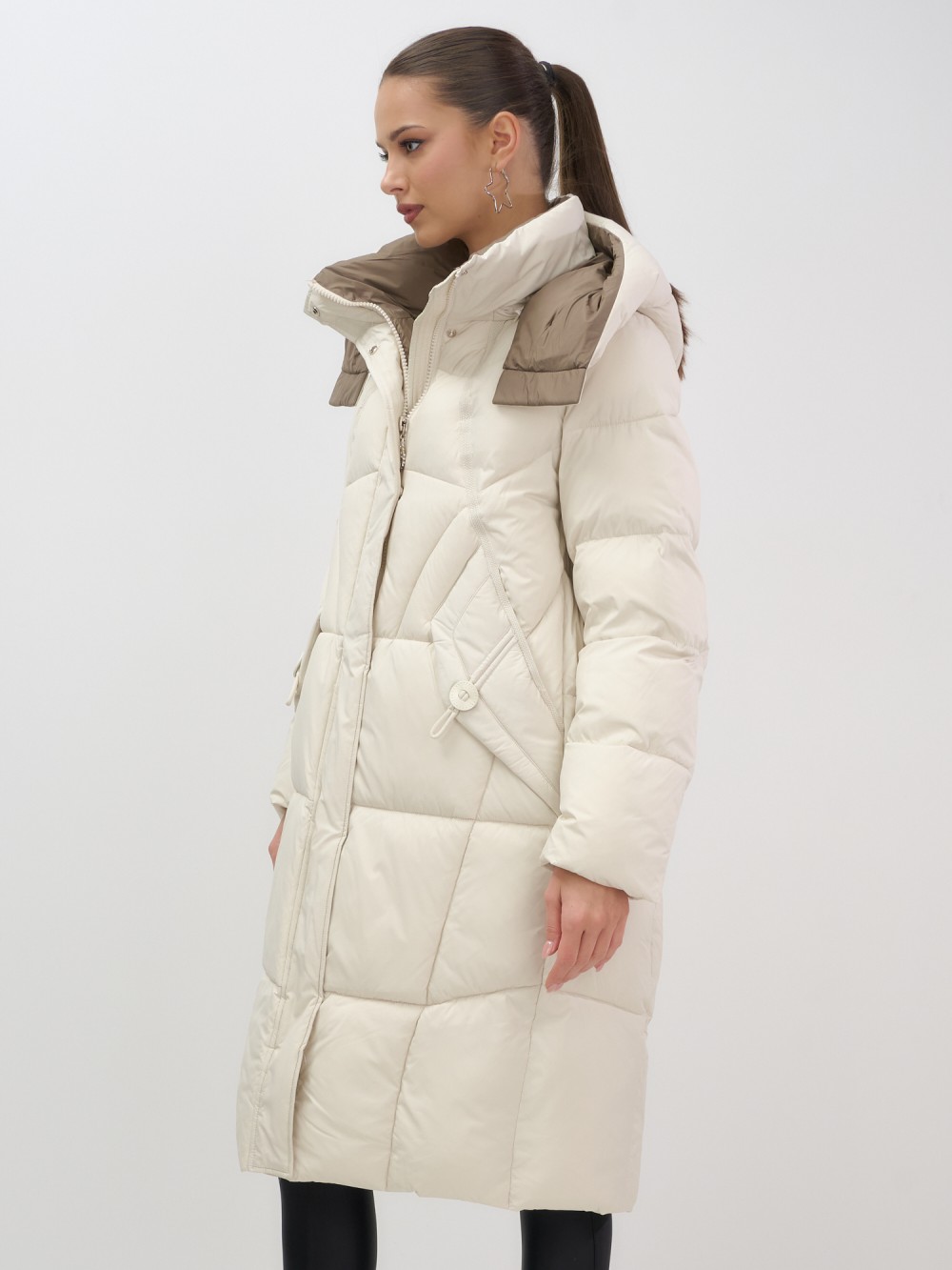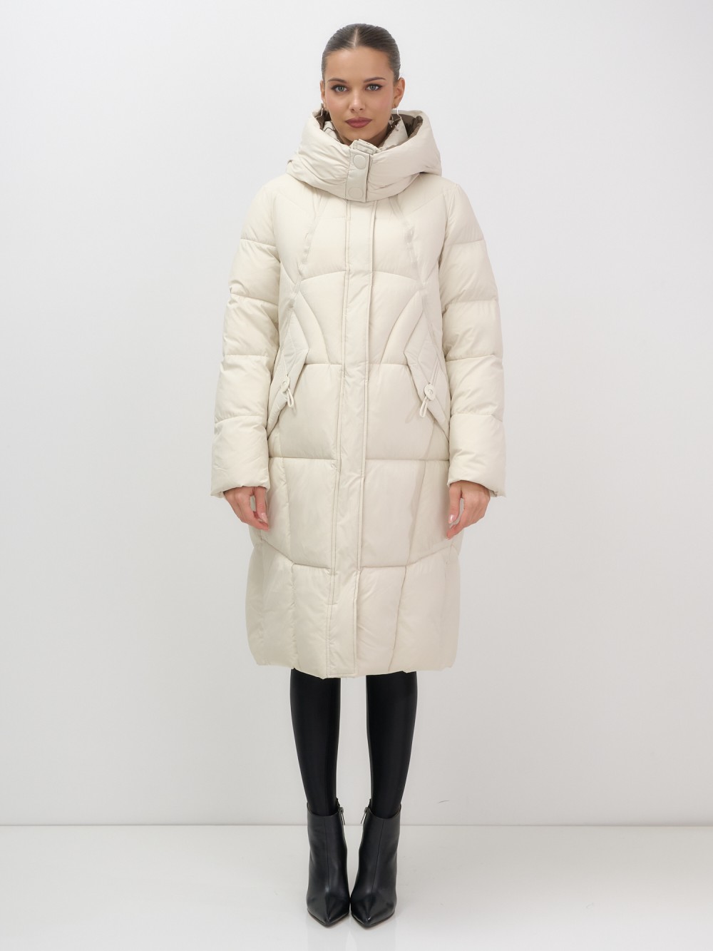 Пальто зимнее утепленное с капюшоном женское бежевого цвета 7709B — Visdeer