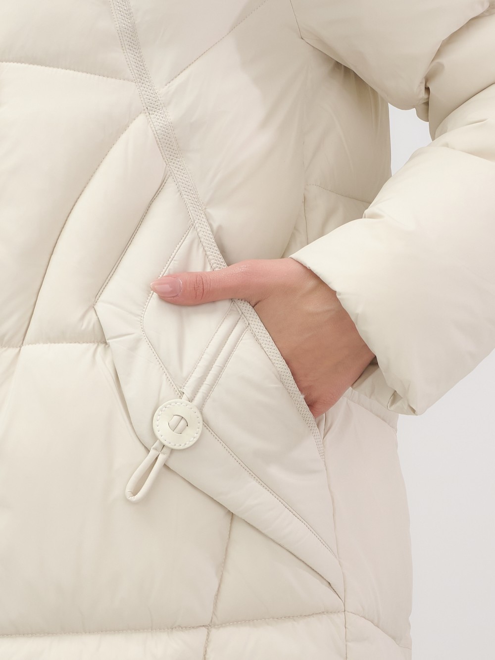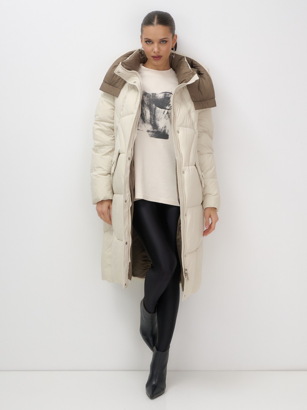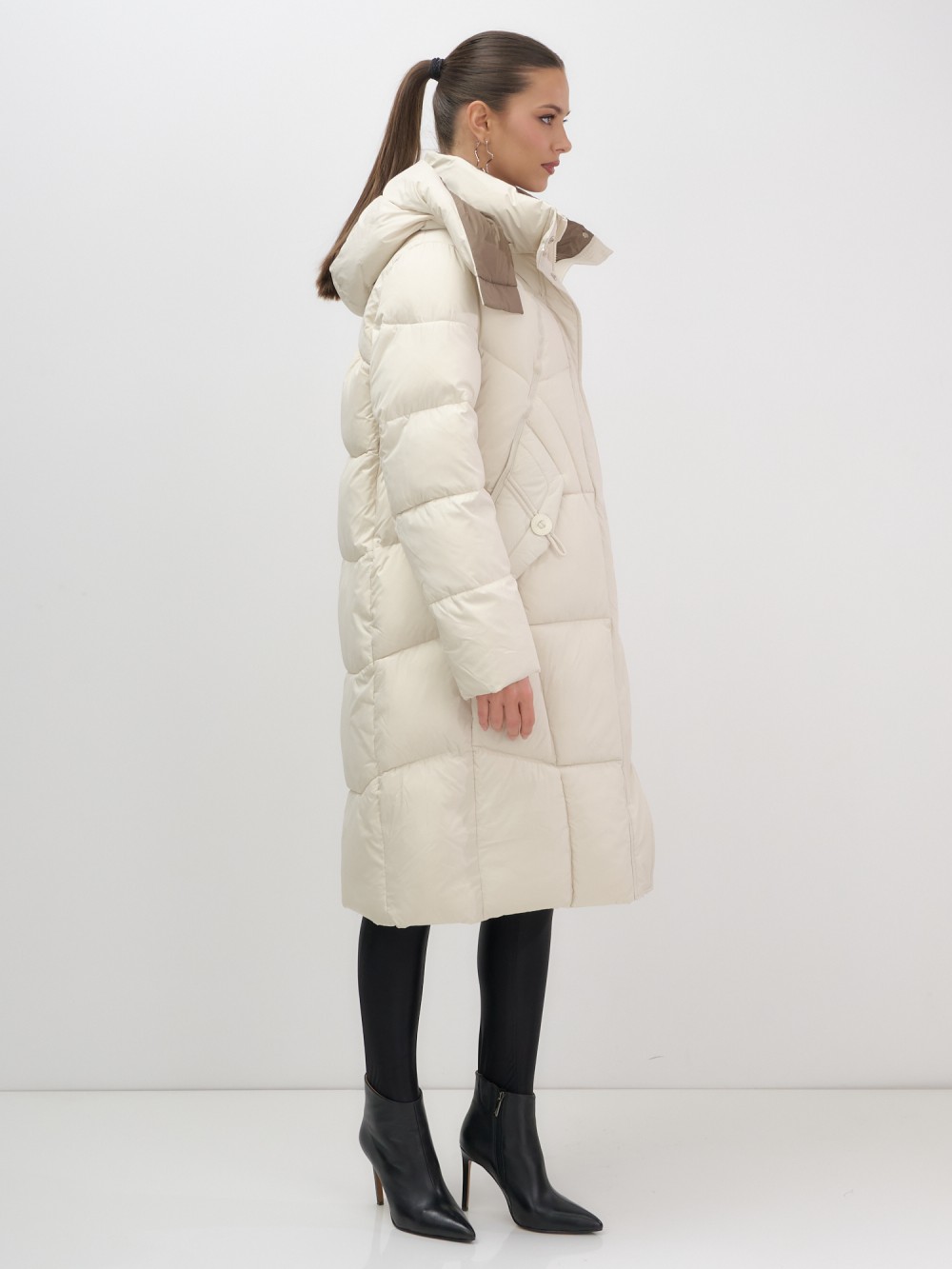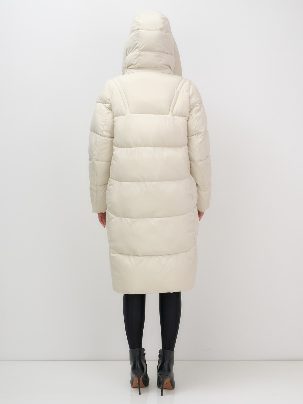 Пальто зимнее утепленное с капюшоном женское бежевого цвета 7709B — Visdeer