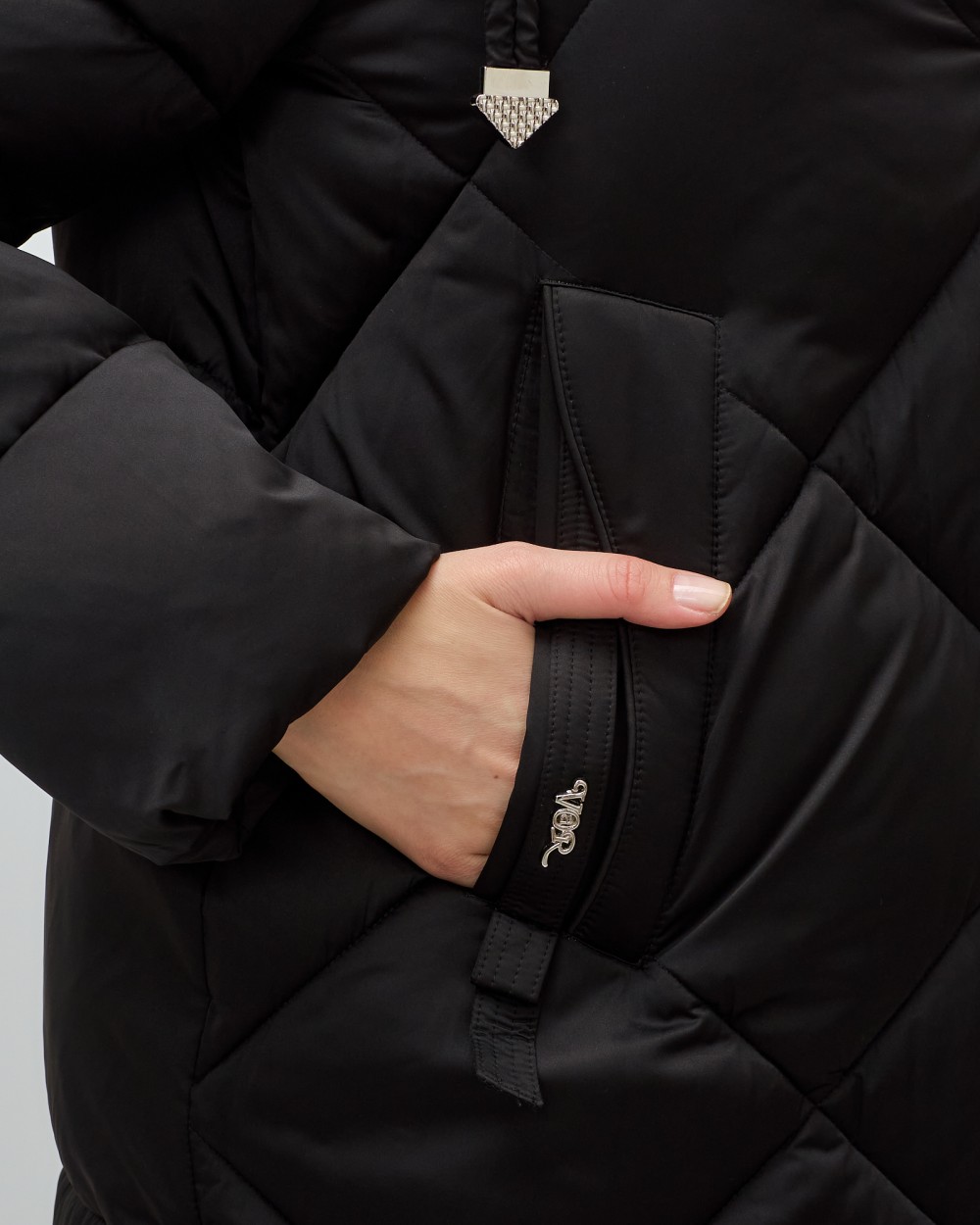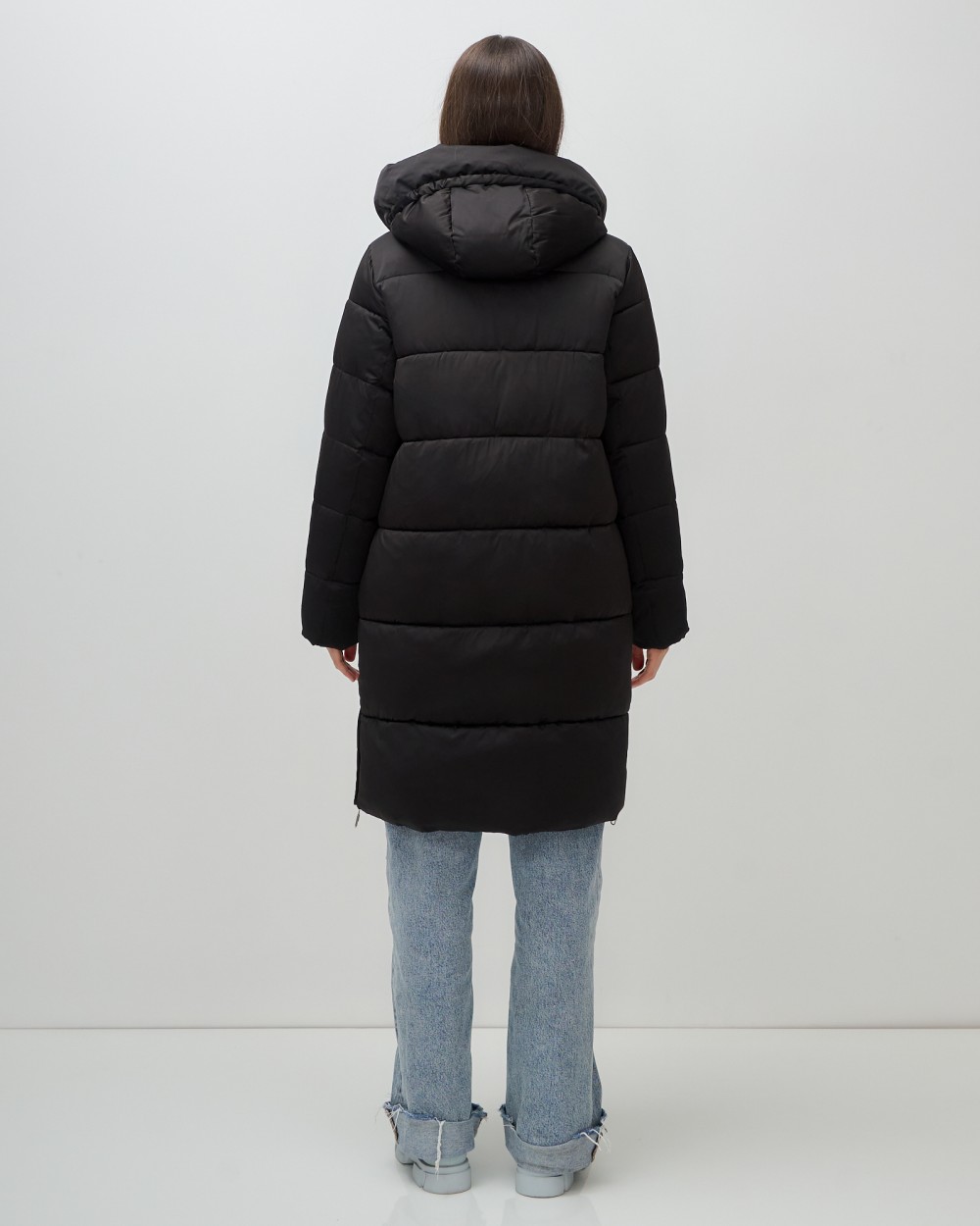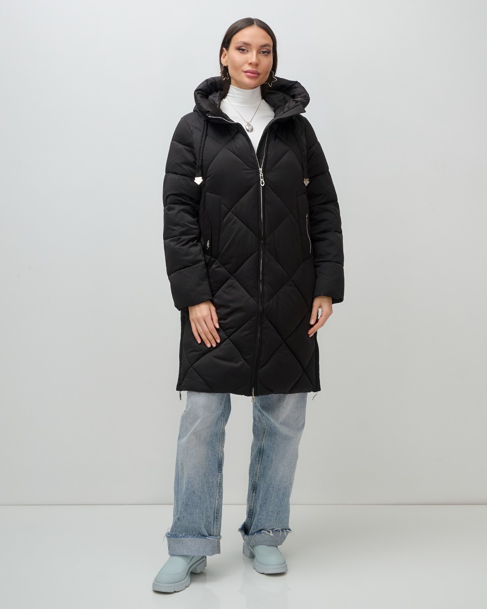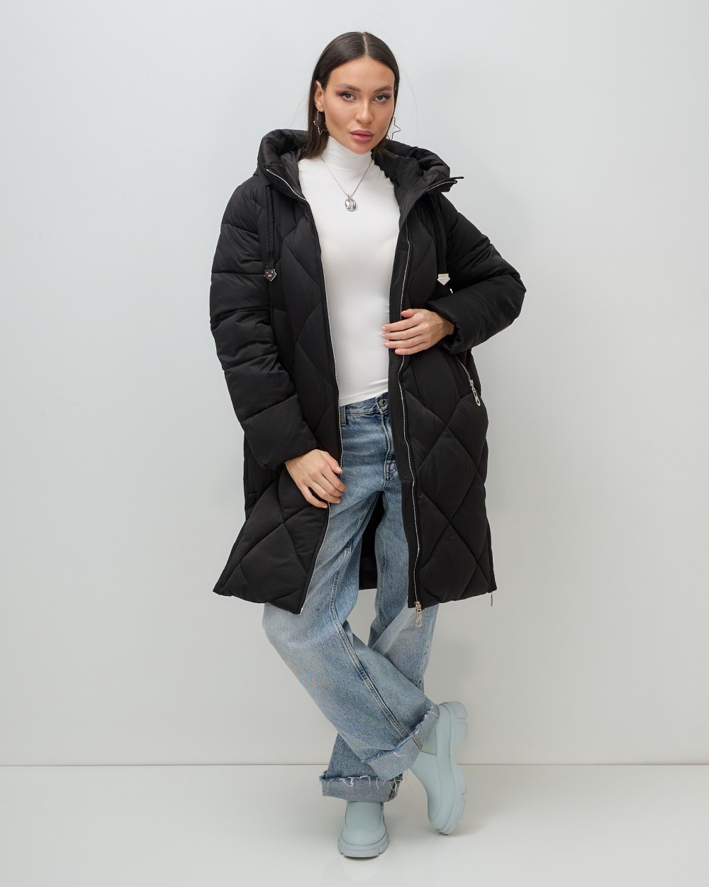 Пальто зимнее утепленное с капюшоном женское черного цвета 7637Ch — Visdeer