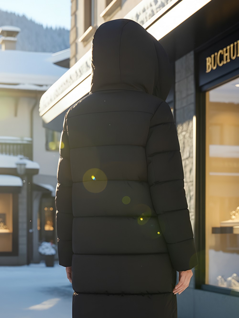 Длина до колена и удлиненный подол придают пальто элегантный и стильный вид, идеально подходя как для офисных будней, так и для повседневных прогулок. Удобный капюшон с фиксатором и внутренние карманы сделают использование пальто еще более комфортным. Двойная молния и прорезные карманы на кнопке добавляют функциональности и современного стиля.
