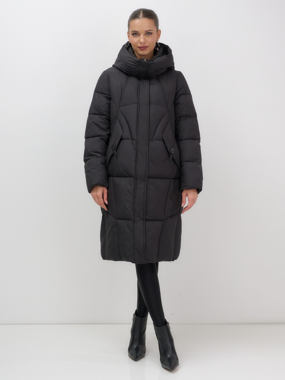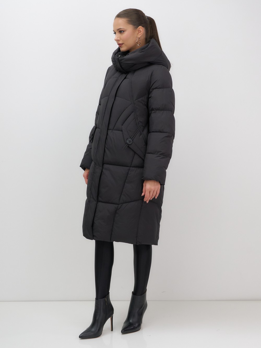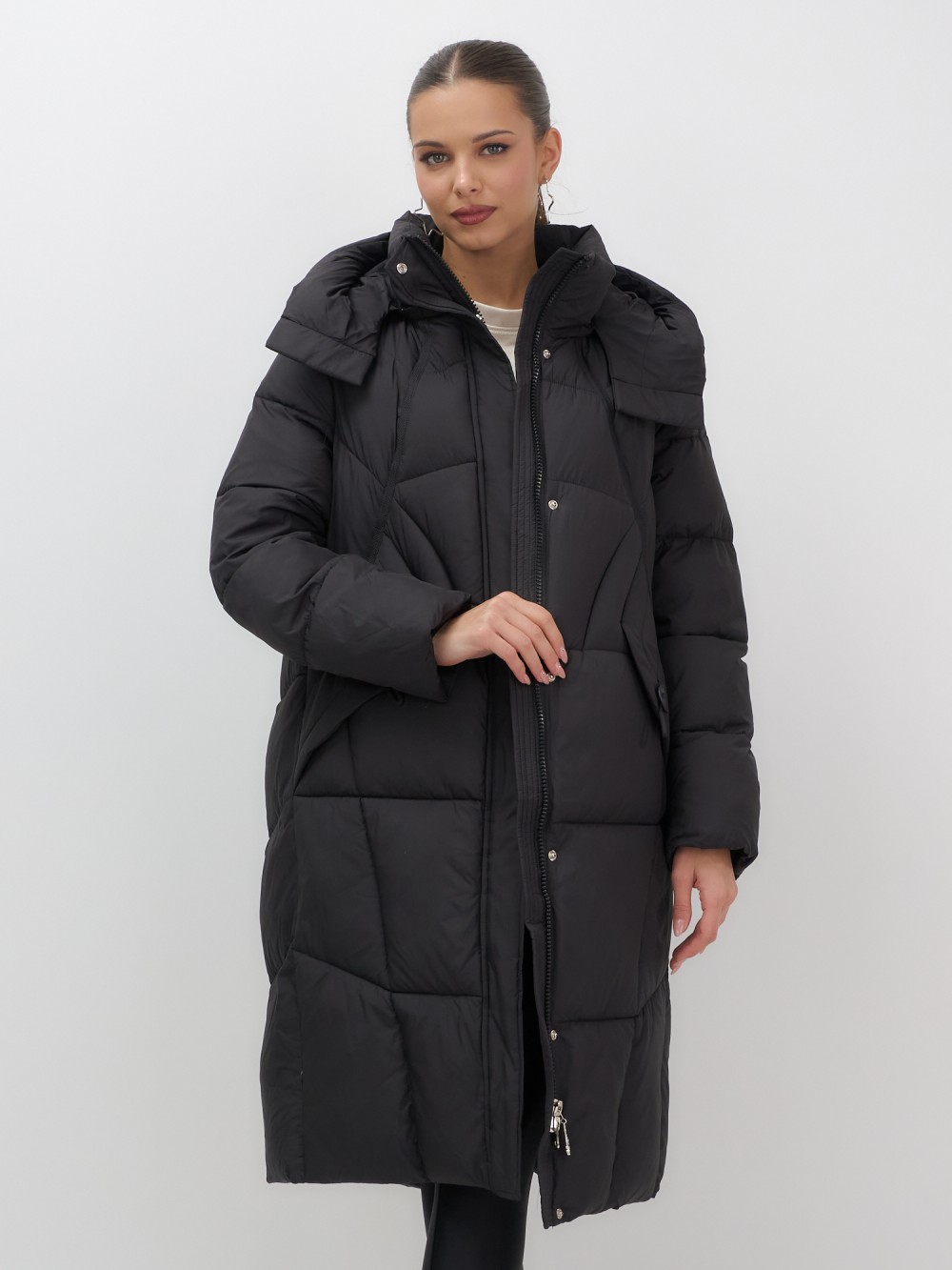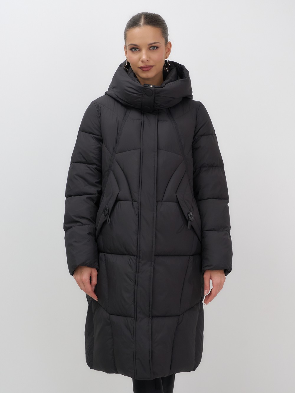Пальто зимнее утепленное с капюшоном женское черного цвета 7709Ch — Visdeer