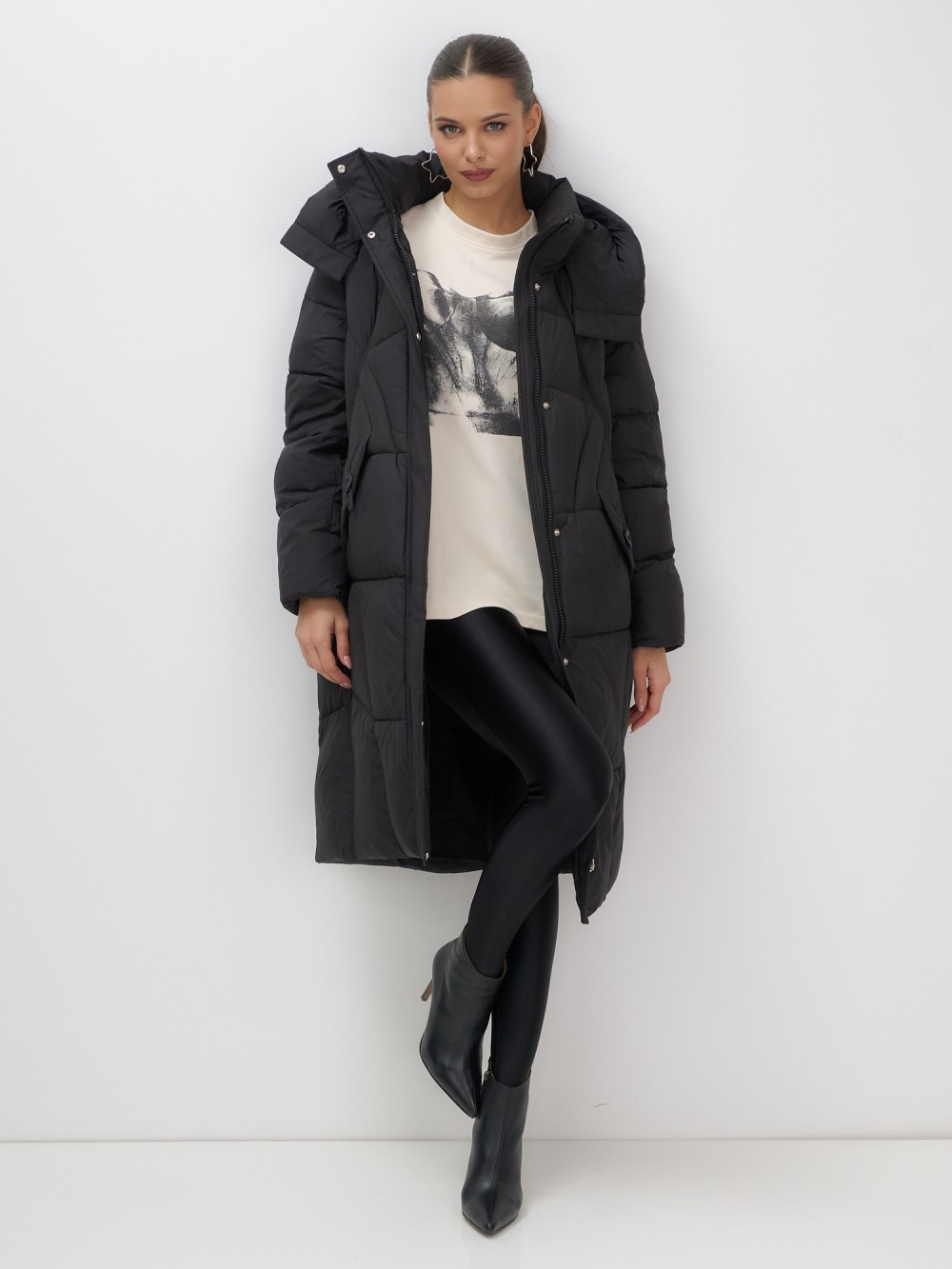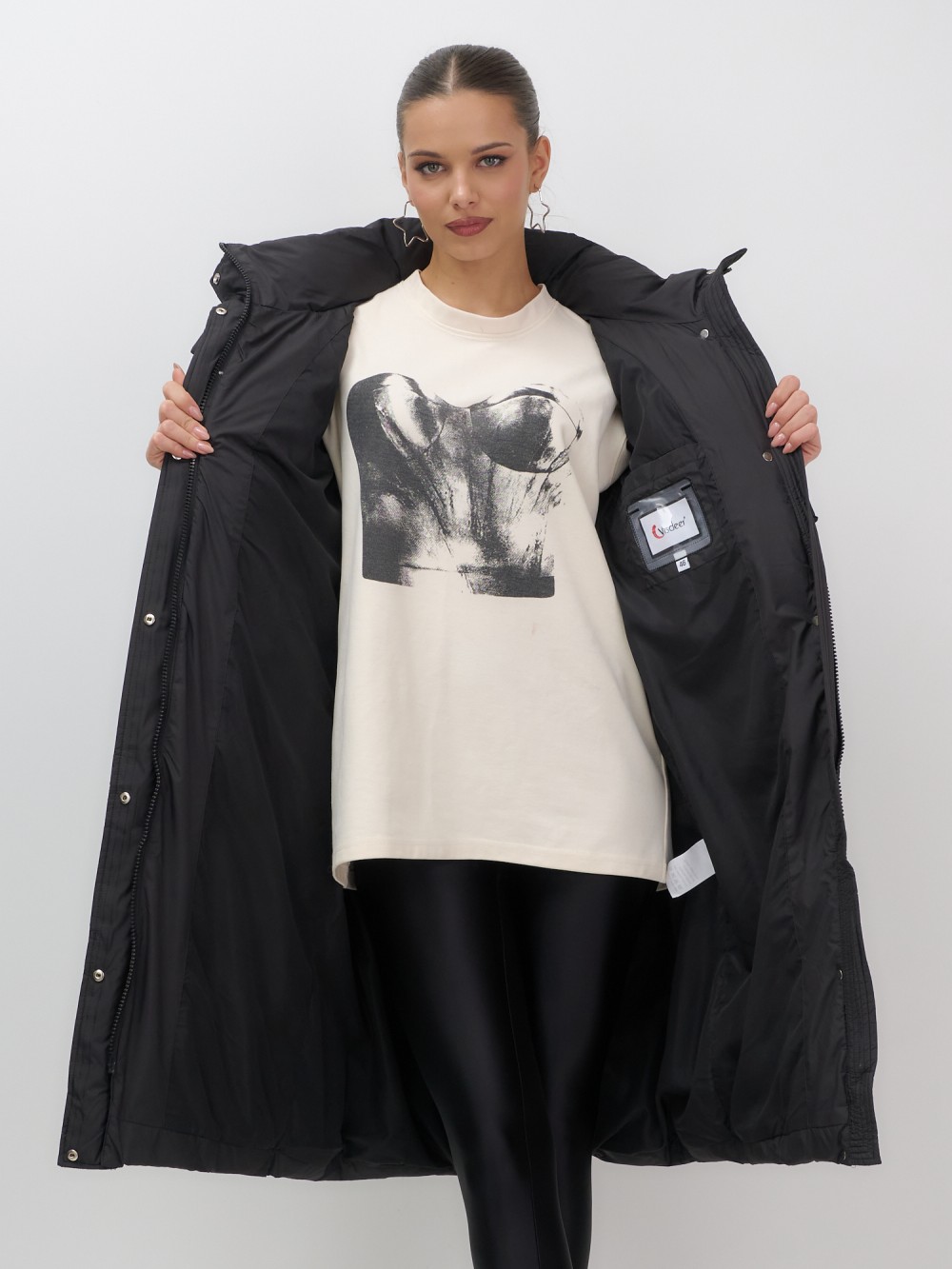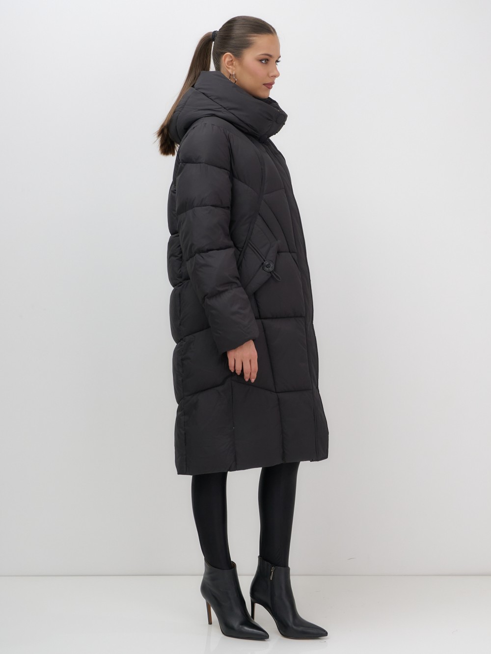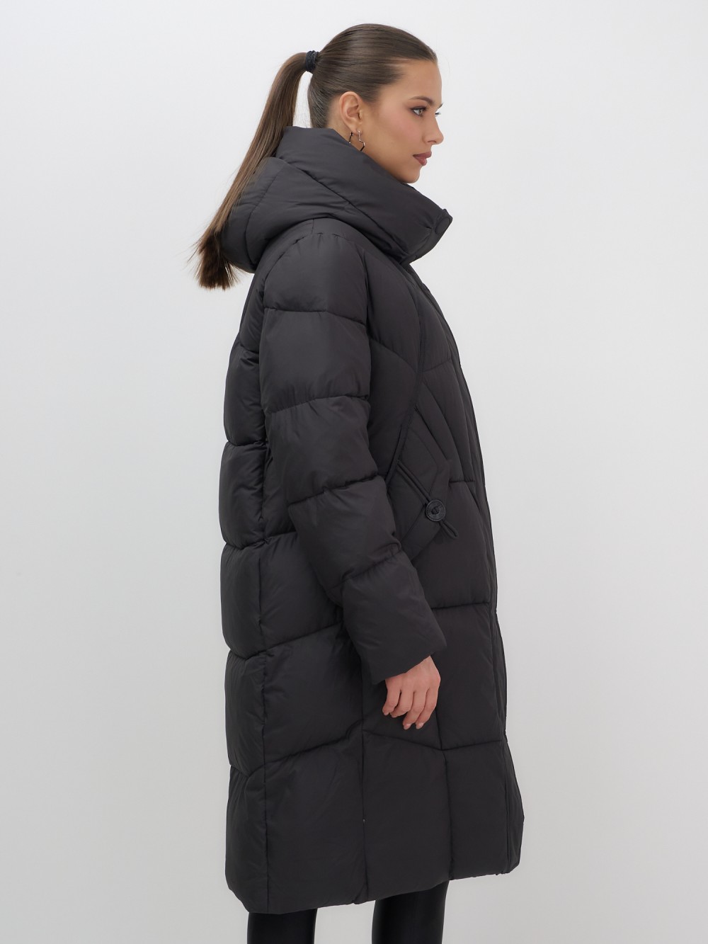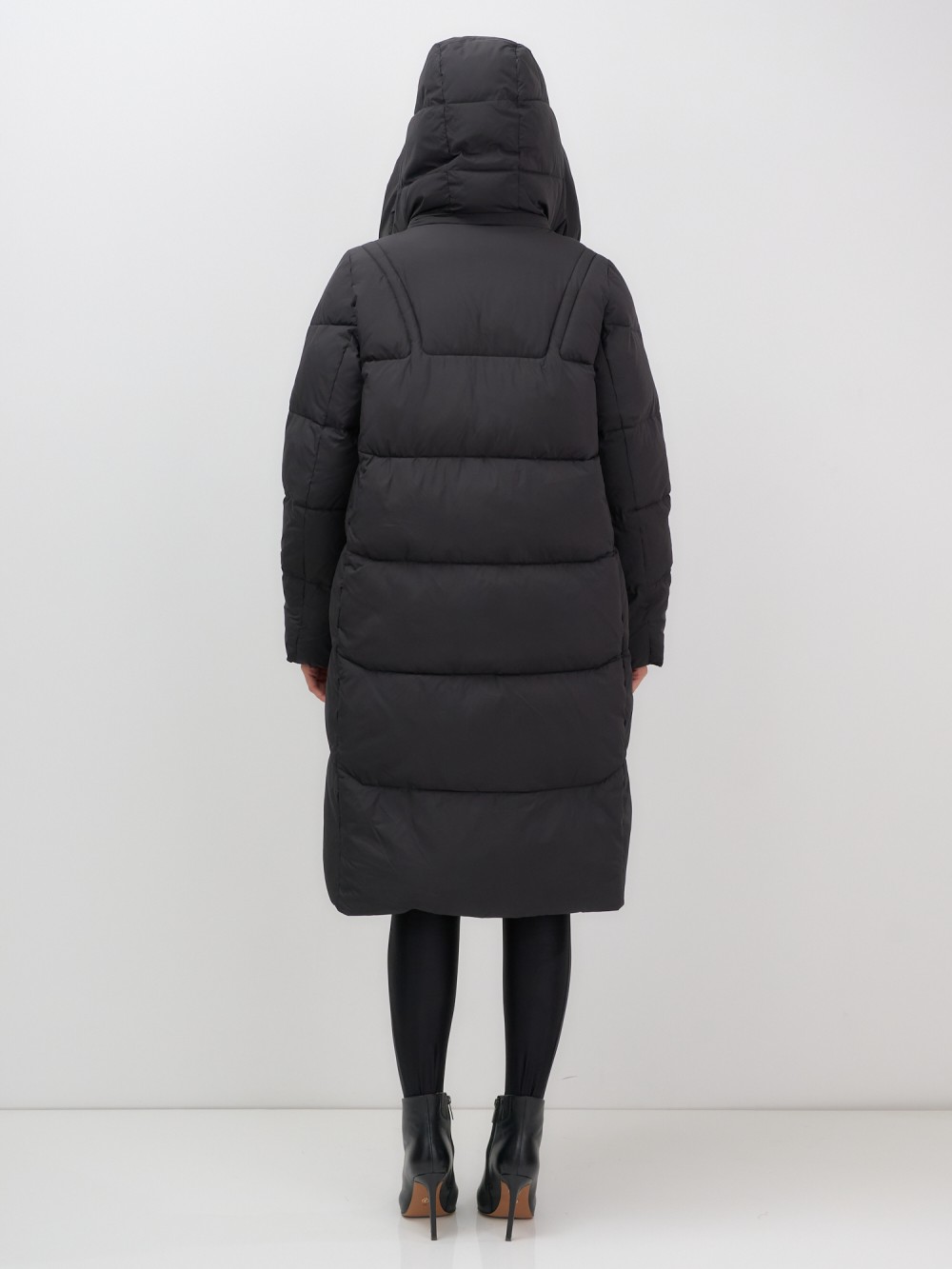 Пальто зимнее утепленное с капюшоном женское черного цвета 7709Ch — Visdeer