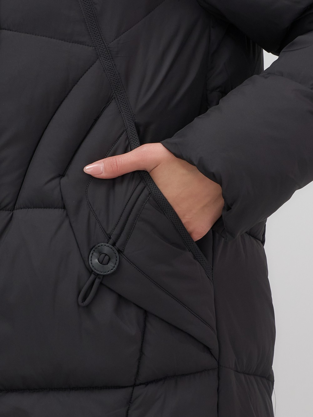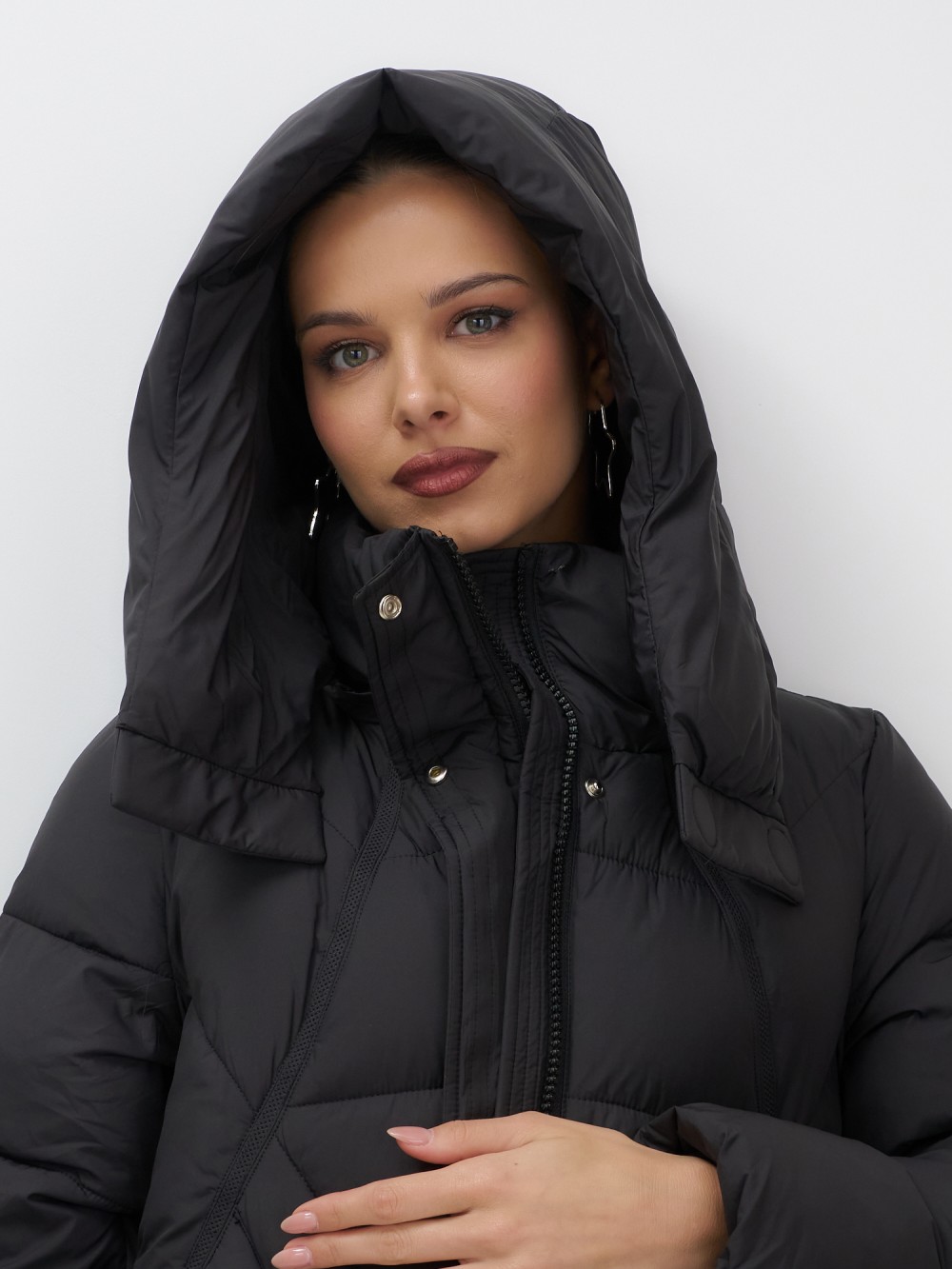 Пальто зимнее утепленное с капюшоном женское черного цвета 7709Ch