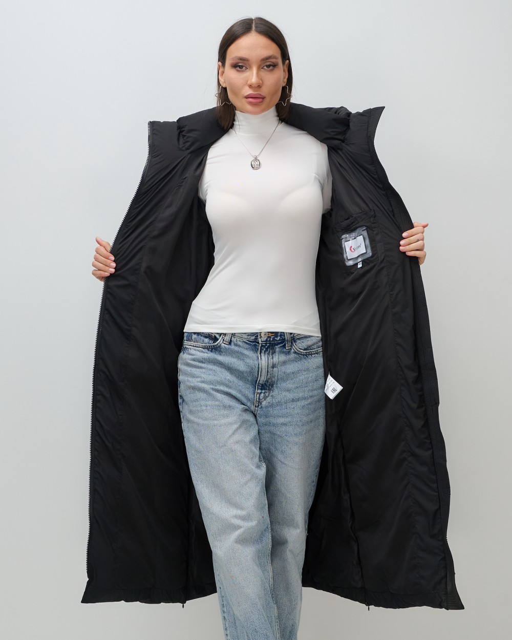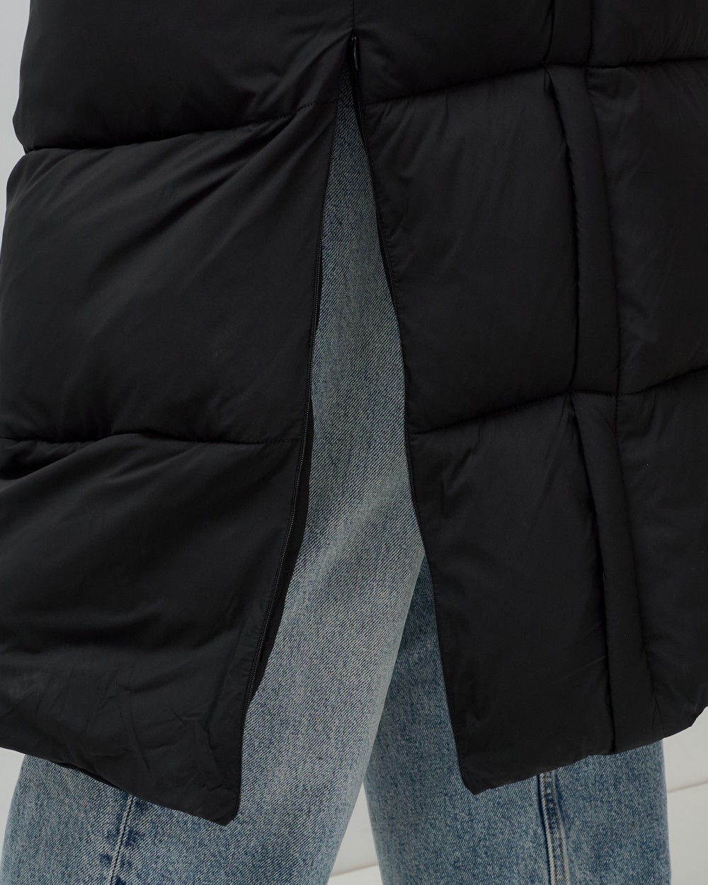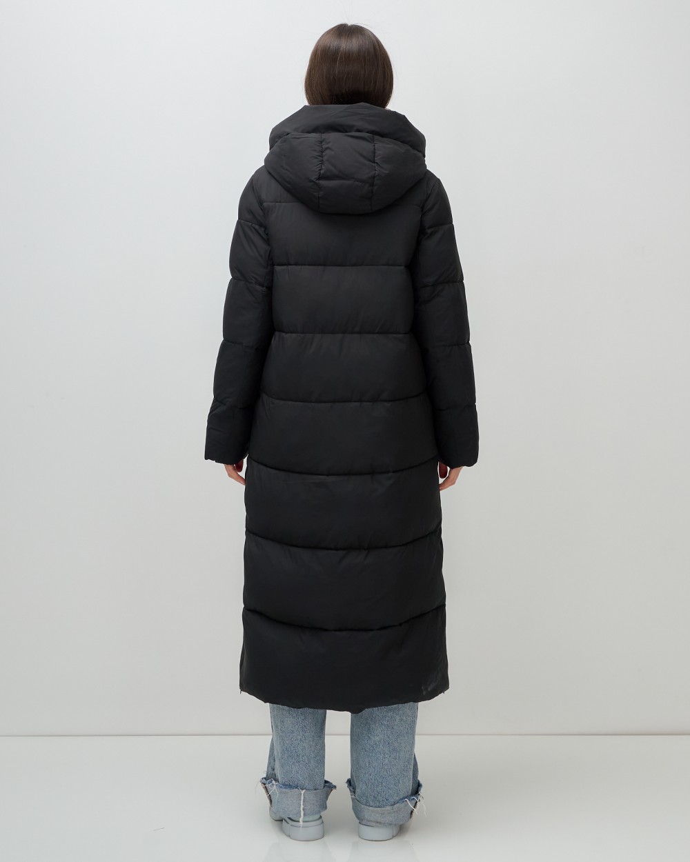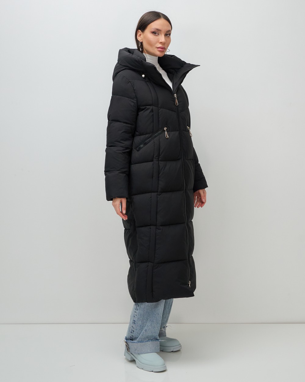 Пальто зимнее утепленное с капюшоном женское черного цвета 7729Ch — Visdeer